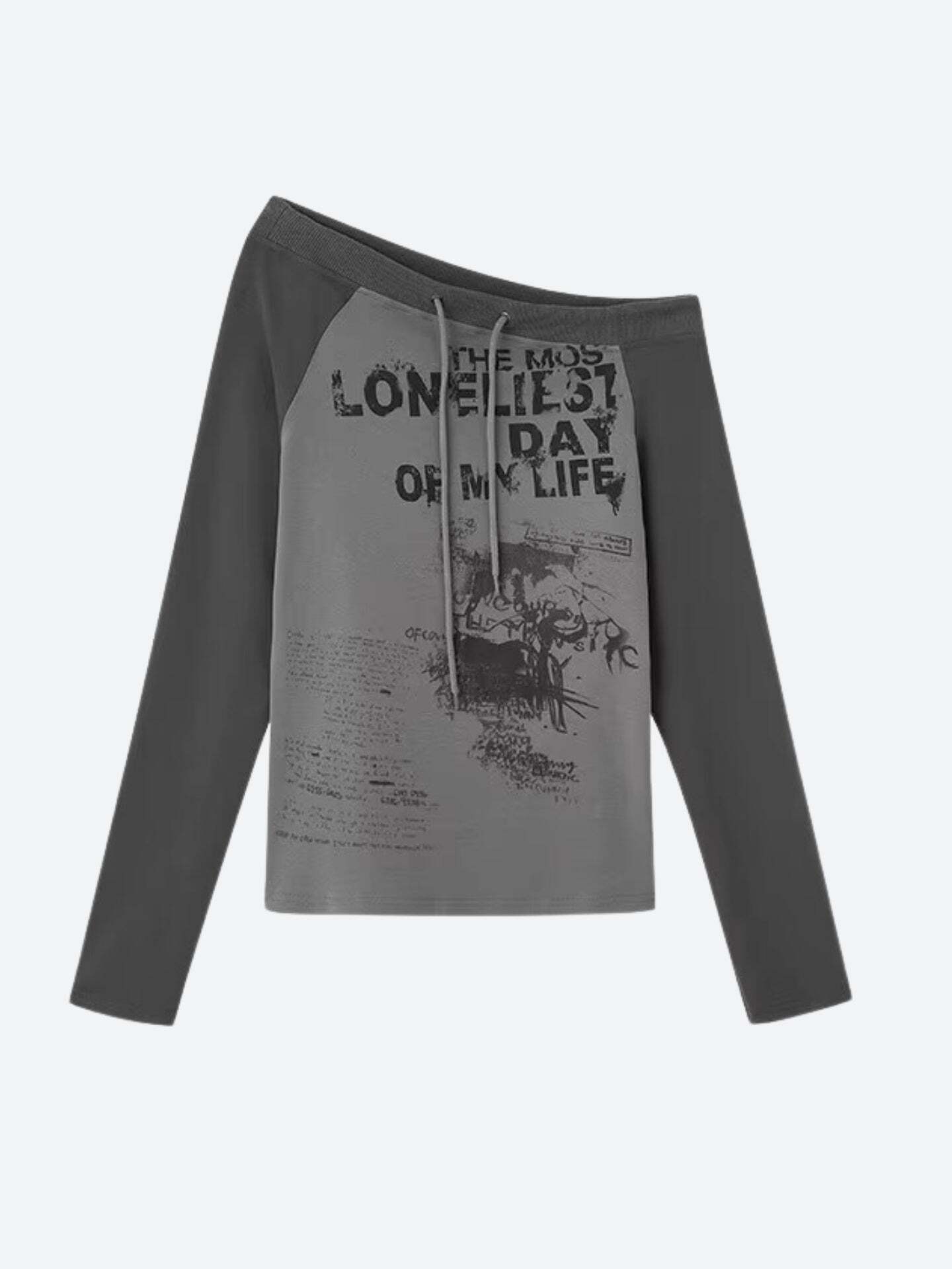 Add an edgy flair to your wardrobe with this one-shoulder drawstring top. Designed with a relaxed fit and bold graphic prints, it’s perfect for casual grunge-inspired looks. Pair it with shorts or distressed jeans for a statement outfit.