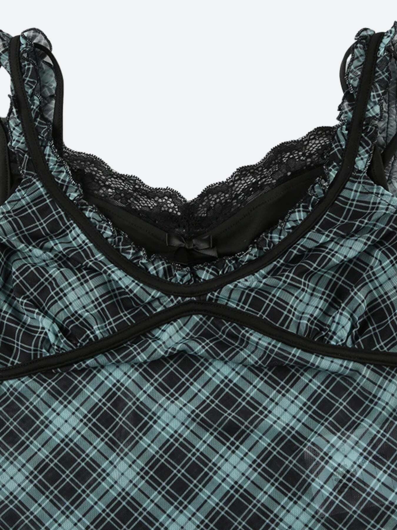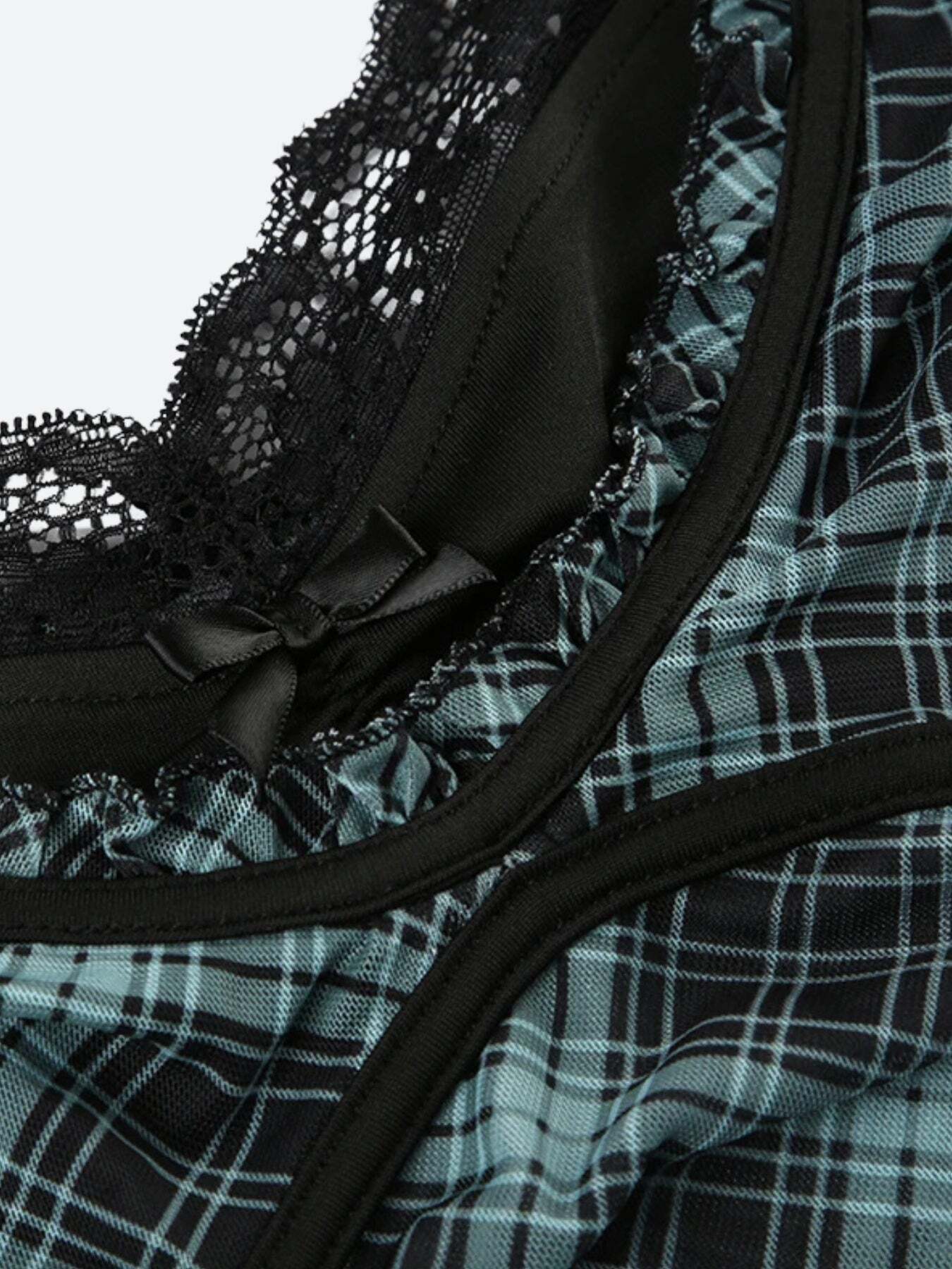 Grunge Plaid Lace Trim Top High-quality product featuring 90s fashion, fall fashion, apres ski style and more. Modern design that fits the latest trends. Premium materials ensure durability and comfort. Order now for special offers! Product designed with attention to every detail. Suitable for all occasions and personal styles.