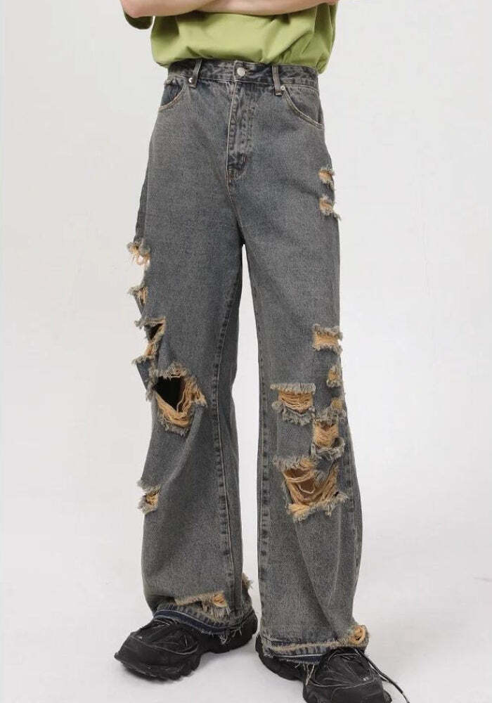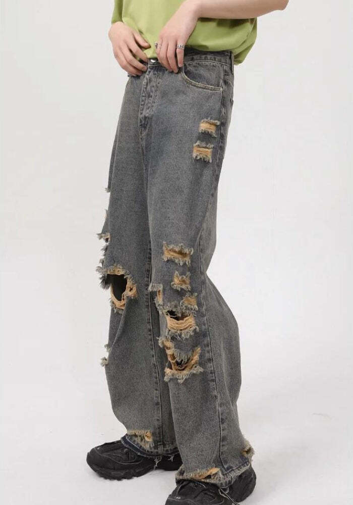 Grunge Ripped Straight Leg Jeans – Grunge Outfits