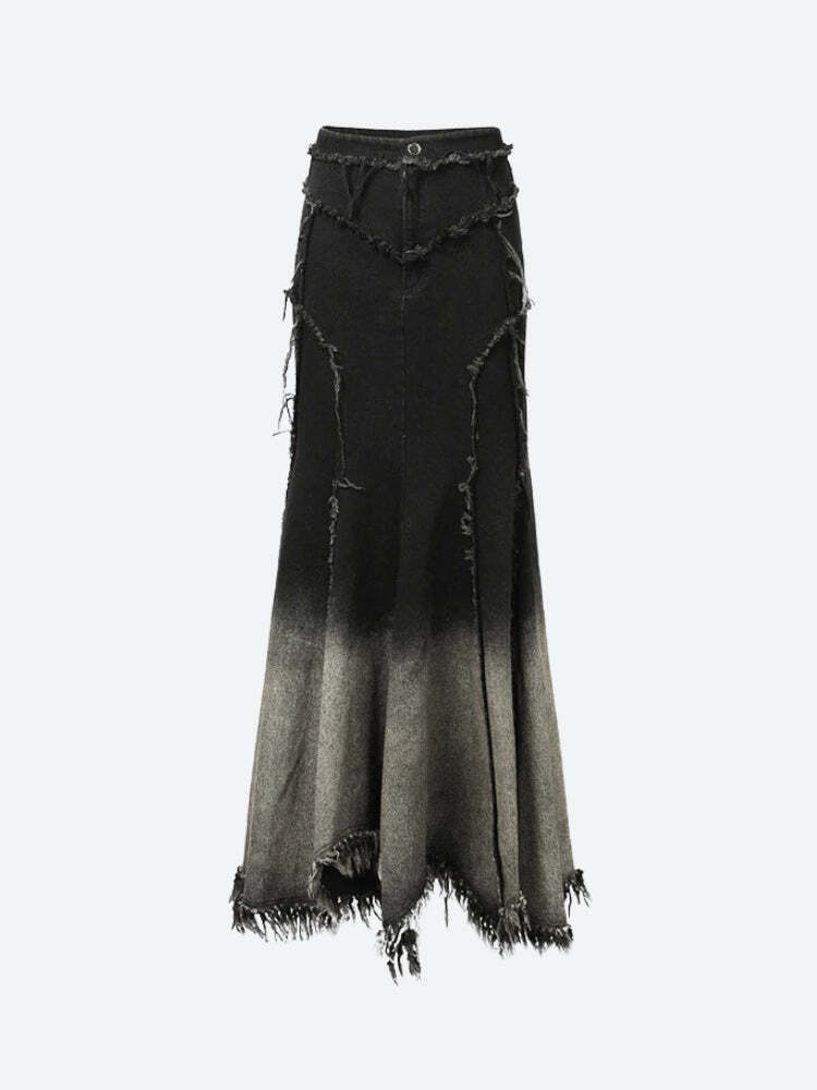 Grunge Outfits: Elevate Your Style with a Tasseled Patch Maxi Skirt