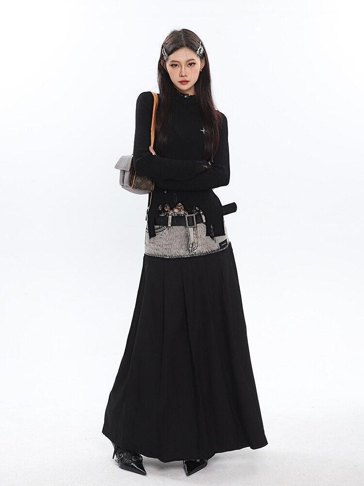Chic Grunge Outfits: Distressed Turtleneck Sweater for a Trendy Look