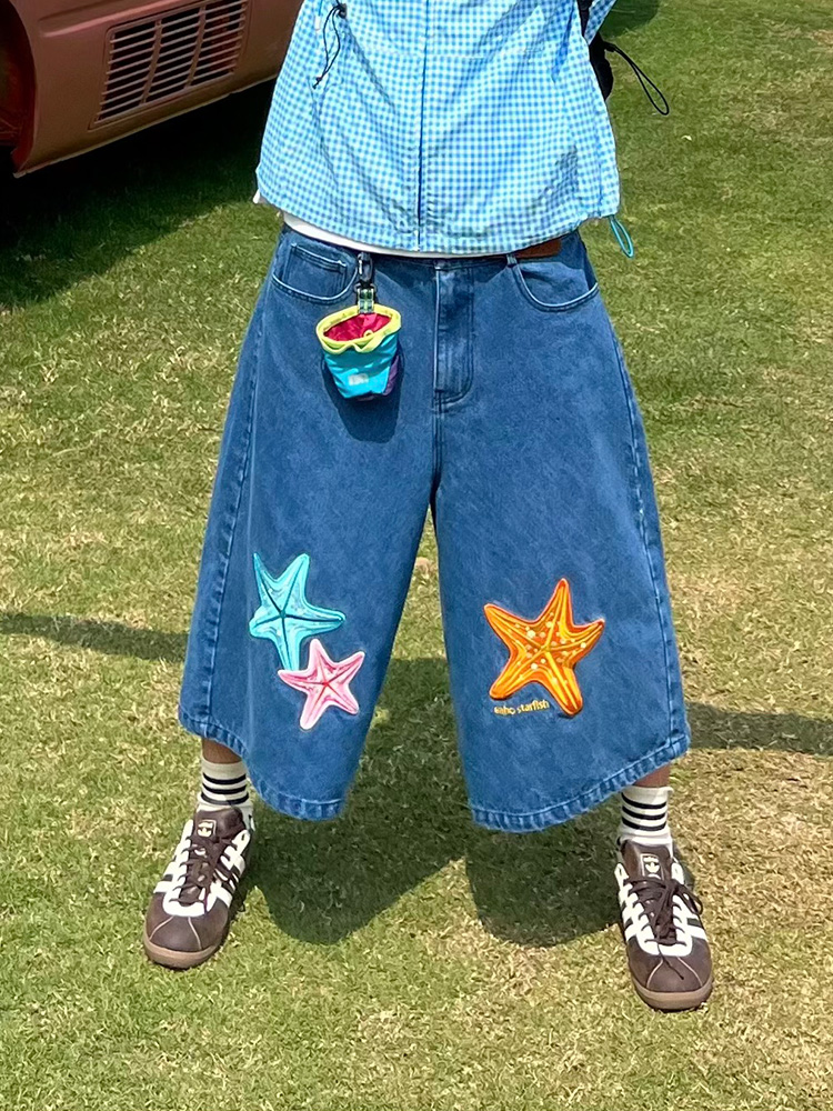 Retro Star Embroidery Denim Capris Summer Unisex Loose Straight Shorts a Vintage Look High-quality product featuring vacation outfits, spring outfit, outfit ideas and more. Modern design that fits the latest trends. Premium materials ensure durability and comfort. Order now for special offers! Product designed with attention to every detail. Suitable for all occasions and personal styles.