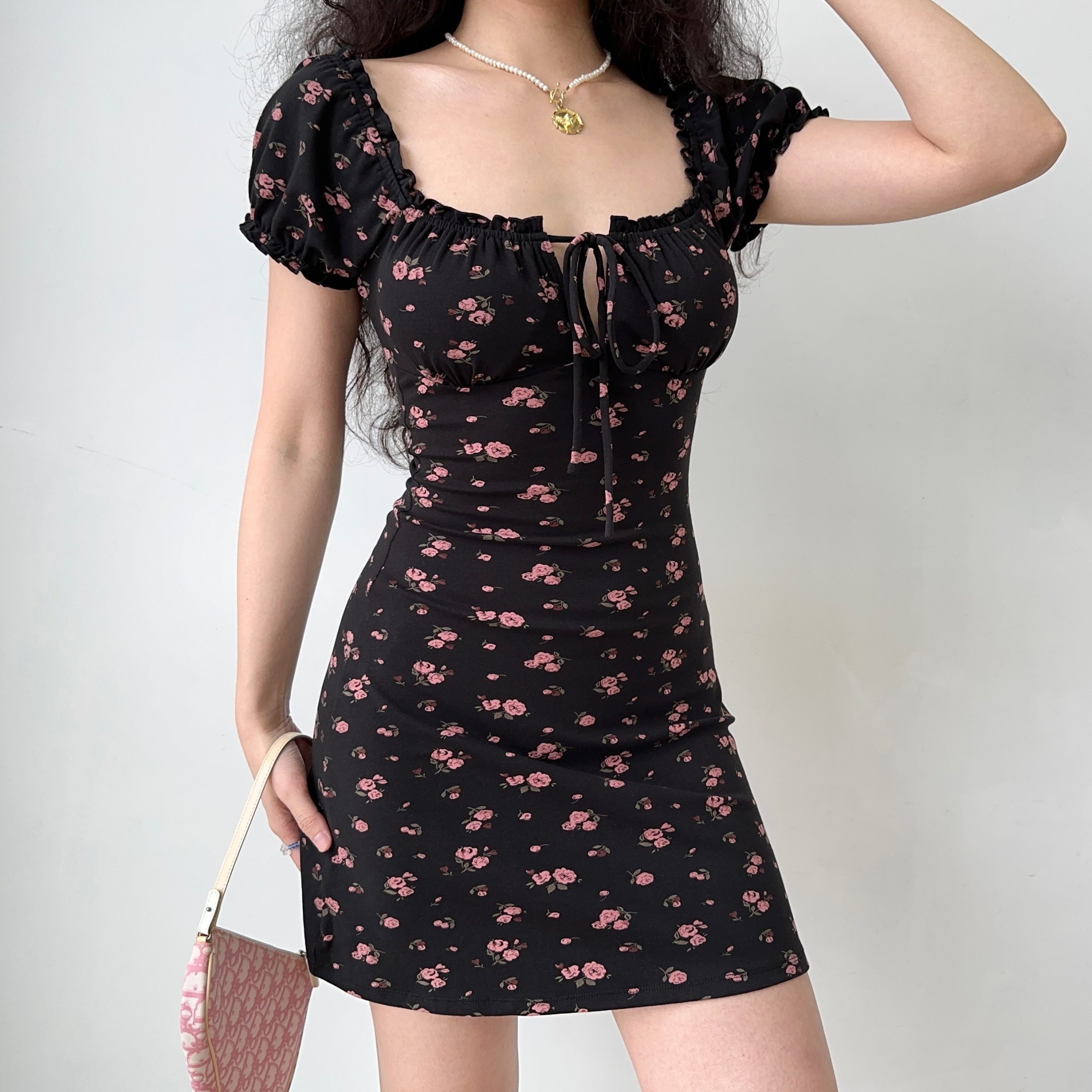 Vintage Floral Dress Women Hollow Out Tie Up Square Neck, Puff Sleeves, Short Skirt, Summer High-quality product featuring spring outfit, hoco dresses, coquette outfit and more. Modern design that fits the latest trends. Premium materials ensure durability and comfort. Order now for special offers! Product designed with attention to every detail. Suitable for all occasions and personal styles.