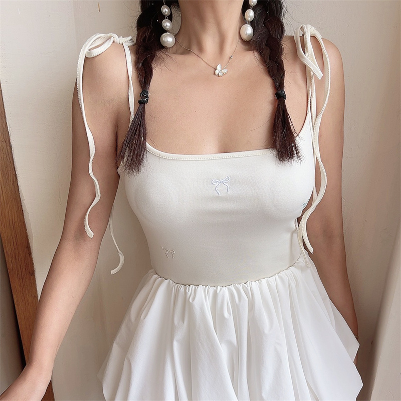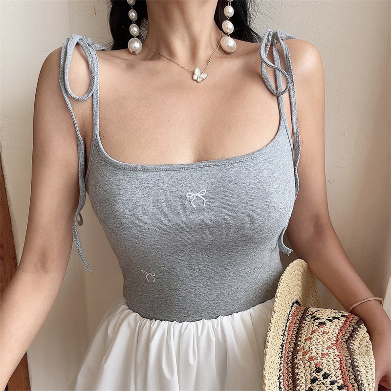 Retro Bow Embroidery Camisole Spring Summer Ballet Elastic Straps High-quality product featuring spring outfits, summer fits, vacation outfits and more. Modern design that fits the latest trends. Premium materials ensure durability and comfort. Order now for special offers! Product designed with attention to every detail. Suitable for all occasions and personal styles.