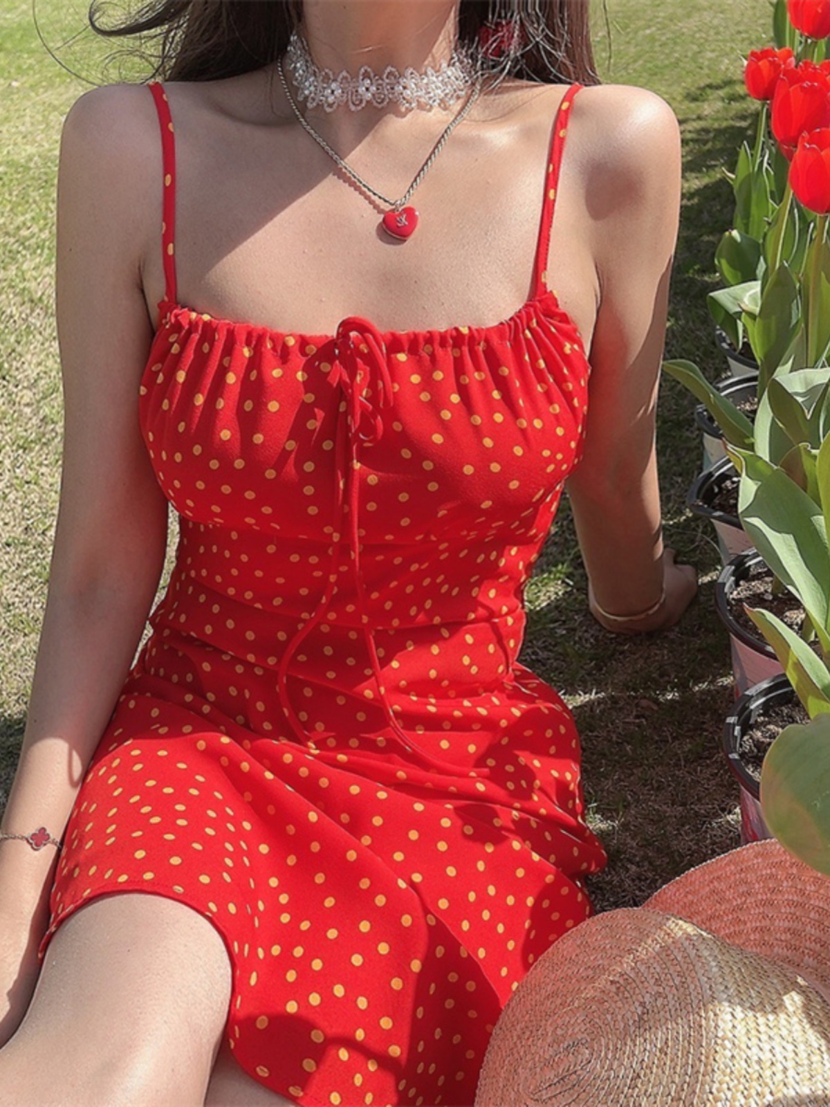 Vintage Polka Dot Little Red Dress Drawstring WaiWomen Camisole Dress High-quality product featuring coquette outfit, graduation dress, christmas dress and more. Modern design that fits the latest trends. Premium materials ensure durability and comfort. Order now for special offers! Product designed with attention to every detail. Suitable for all occasions and personal styles.