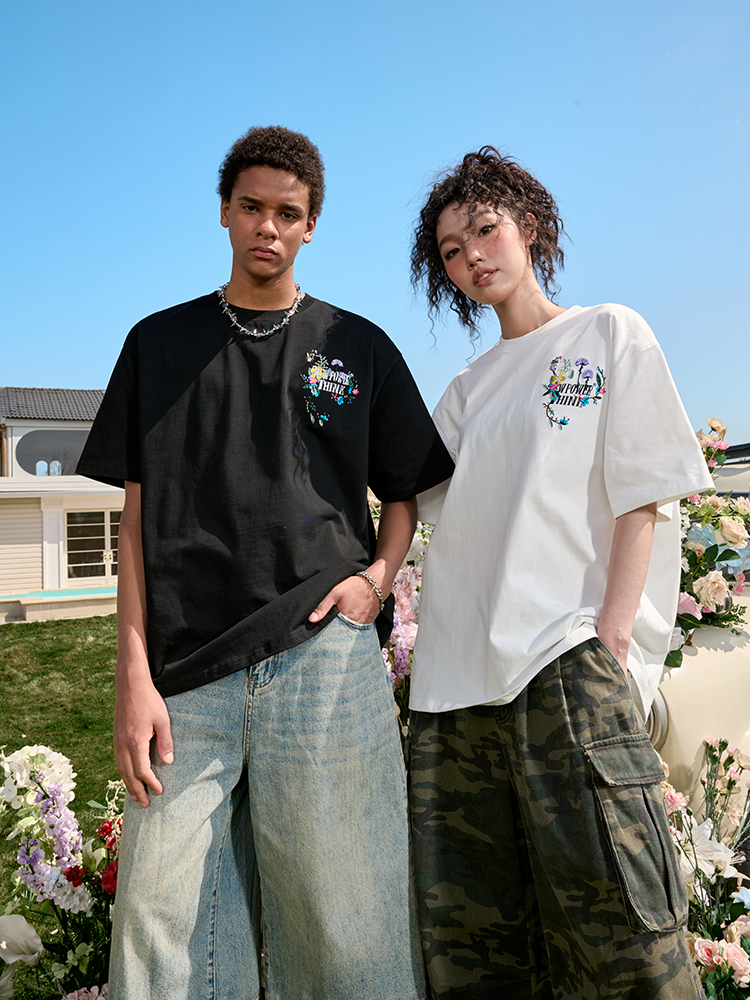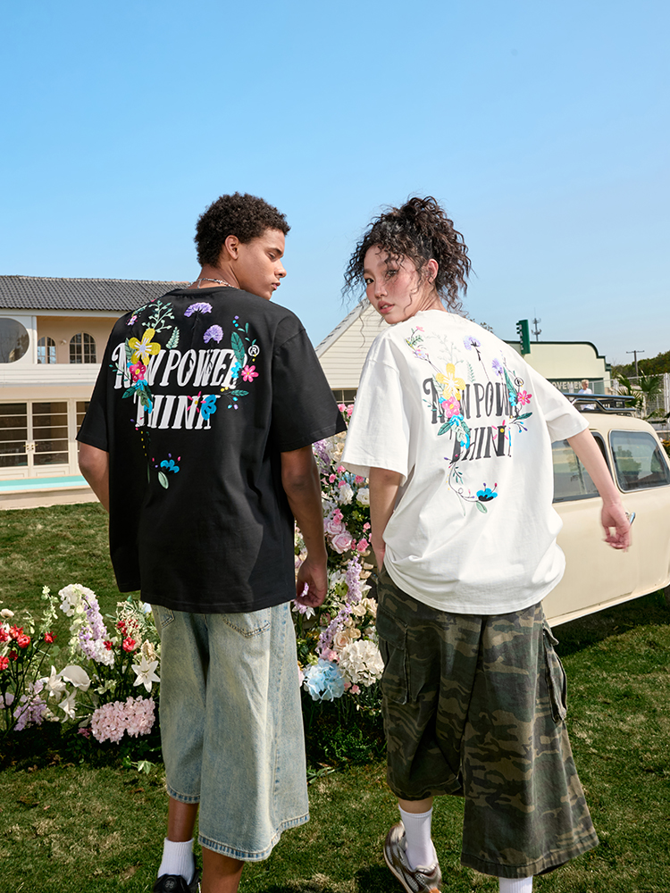 Heavyweight Floral Embroidery Men, Women, Vintage Streetwear, Short – Fashion Outfits
