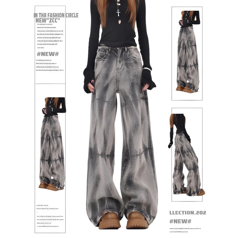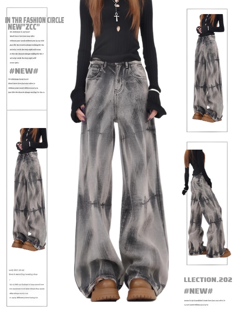 Retro Wastel Tie Dye Gray Wide Leg Jeans Women Loose High Waisted Slim St – Fall Fits