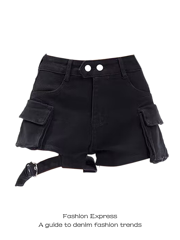 Elevate your wardrobe with our High-Waisted Black Denim Shorts for Women, designed in a retro workwear style that perfectly blends fashion and function. These slim-fit hot pants are crafted to accentuate your silhouette while offering comfort for both spring and autumn outings. With their versatile black hue and timeless design, these shorts are a must-have staple for any casual ensemble. Don’t miss out on the chance to make a stylish statement add to your cart today!