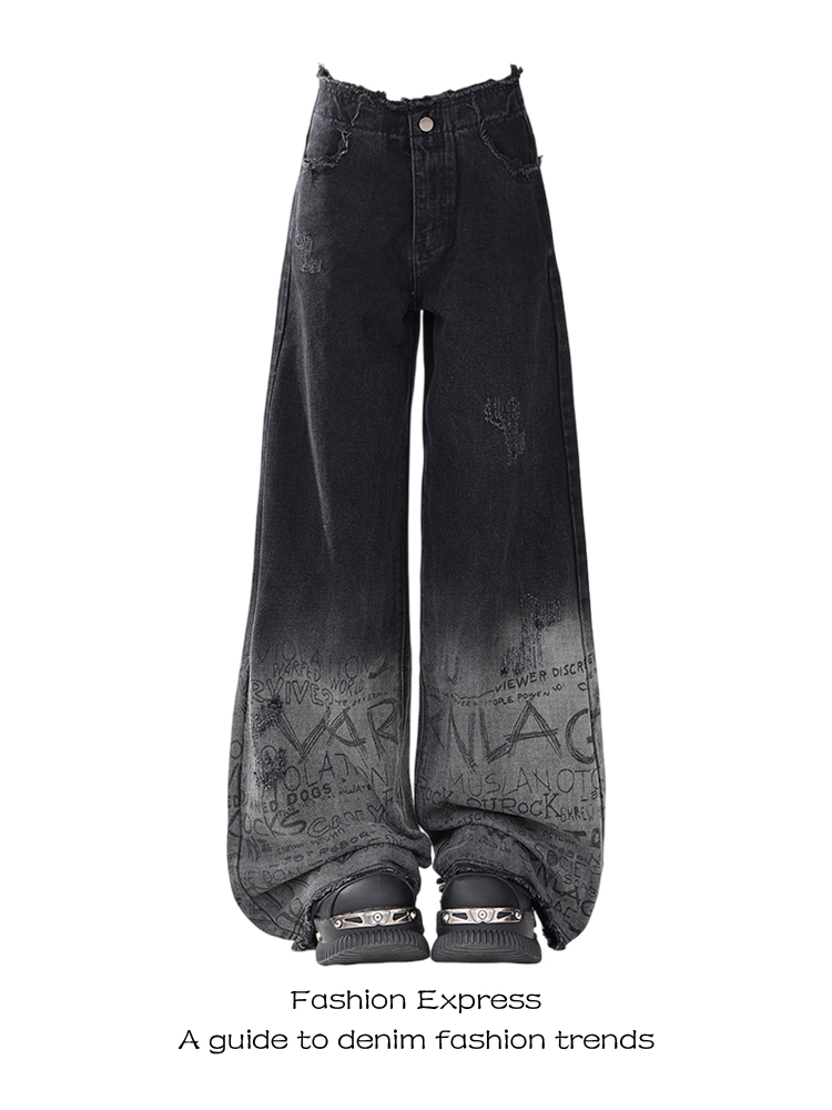 High Waisted Black Gradient Graffiti Jeans Women Wide Leg Floor Length Pants Autumn/Winter High-quality product featuring fall fashion, fall fits, outfit inspo fall and more. Modern design that fits the latest trends. Premium materials ensure durability and comfort. Order now for special offers! Product designed with attention to every detail. Suitable for all occasions and personal styles.