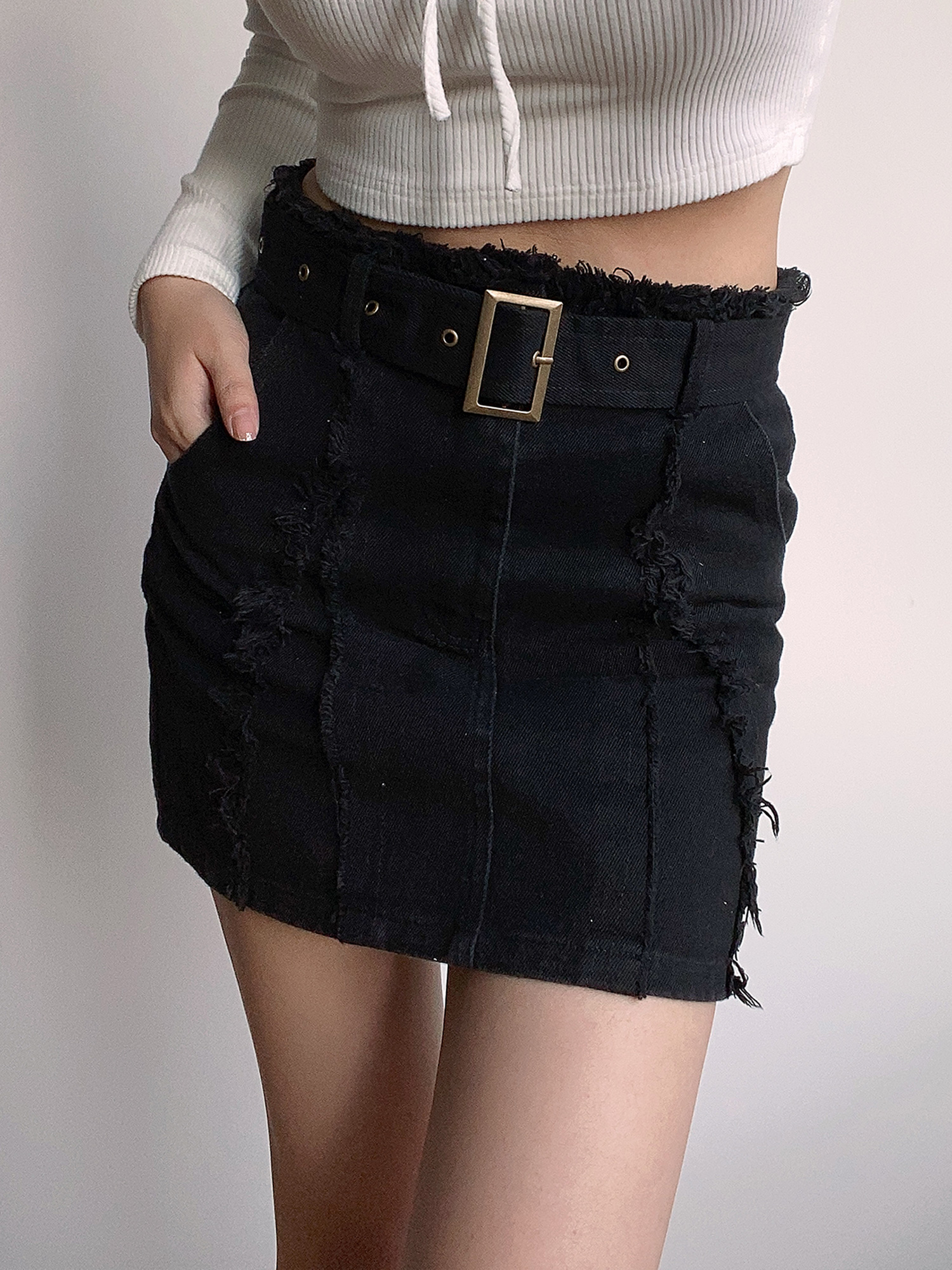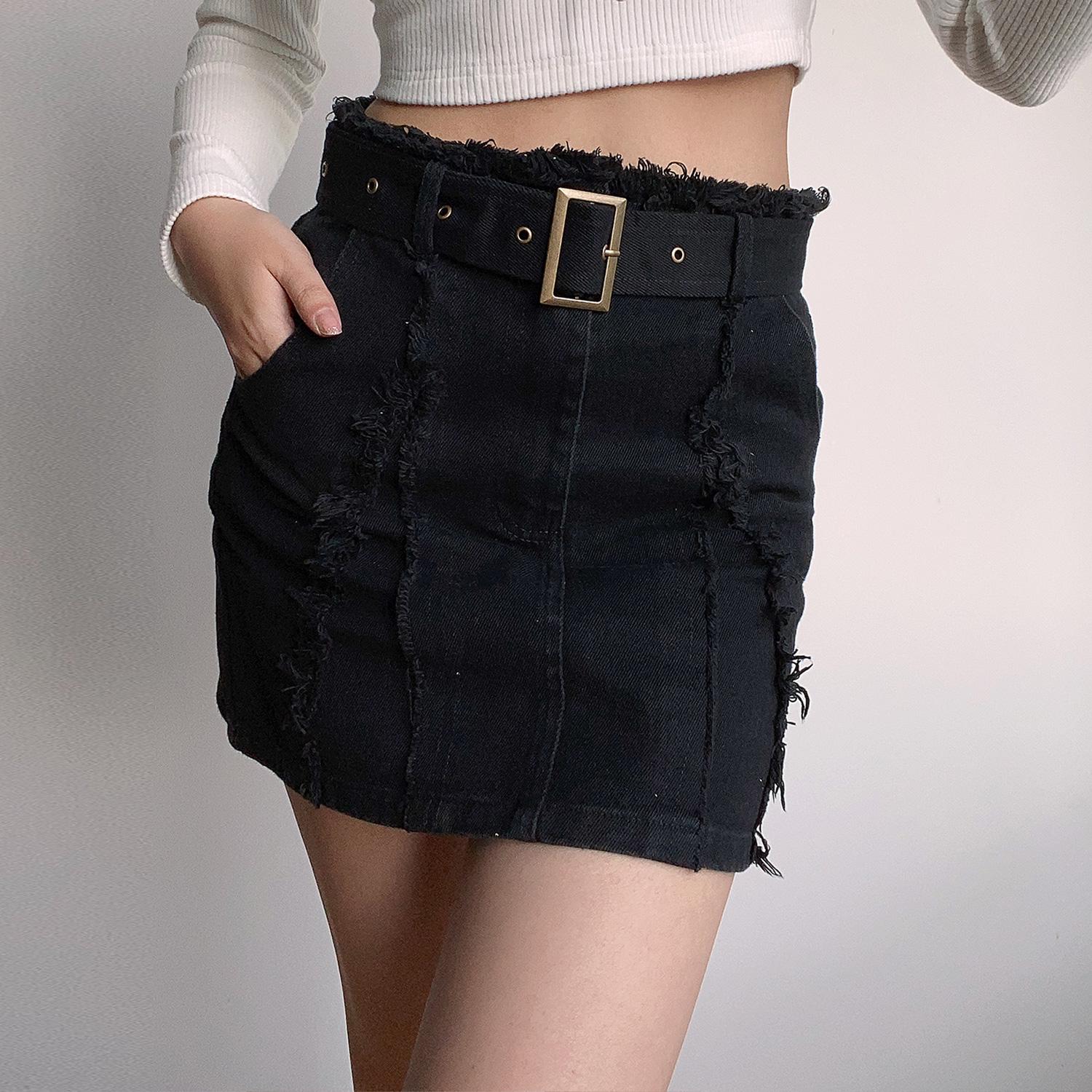 High Waisted Vintage Frayed Denim Skirt Pockets a Line Mini Skirt Y2k, – Y2k Outfits