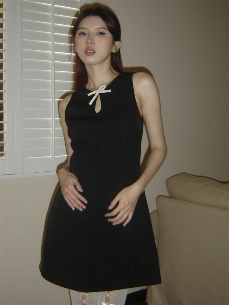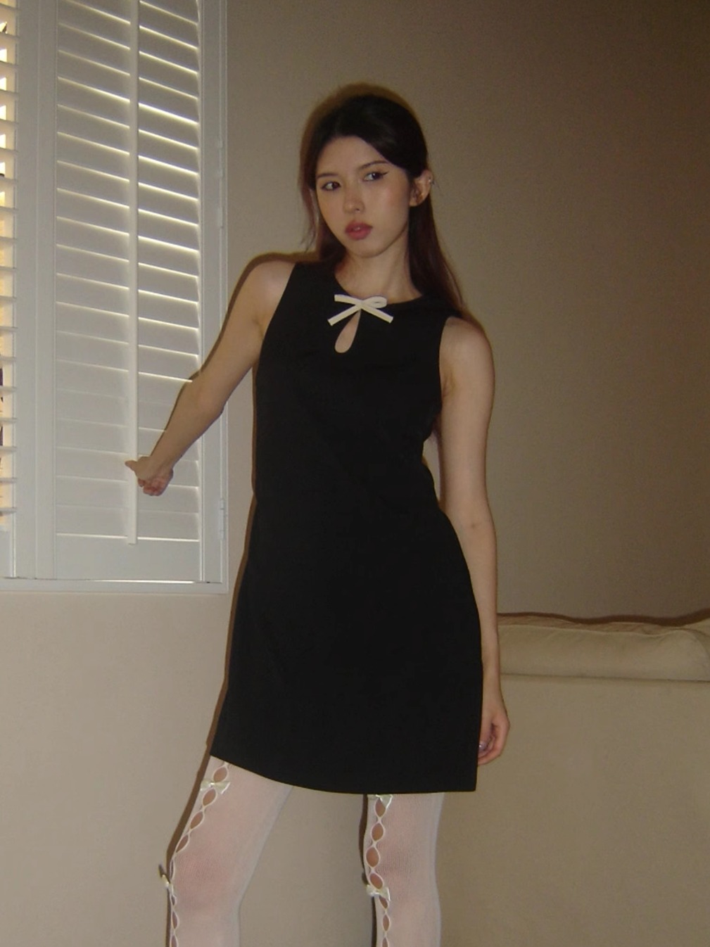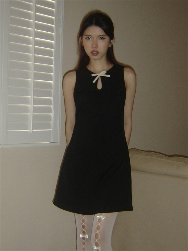 Hollow Bow Slim Fit a Line Short Dress Spring/summer Thous Gold, Y2k Pi – Y2k Outfits