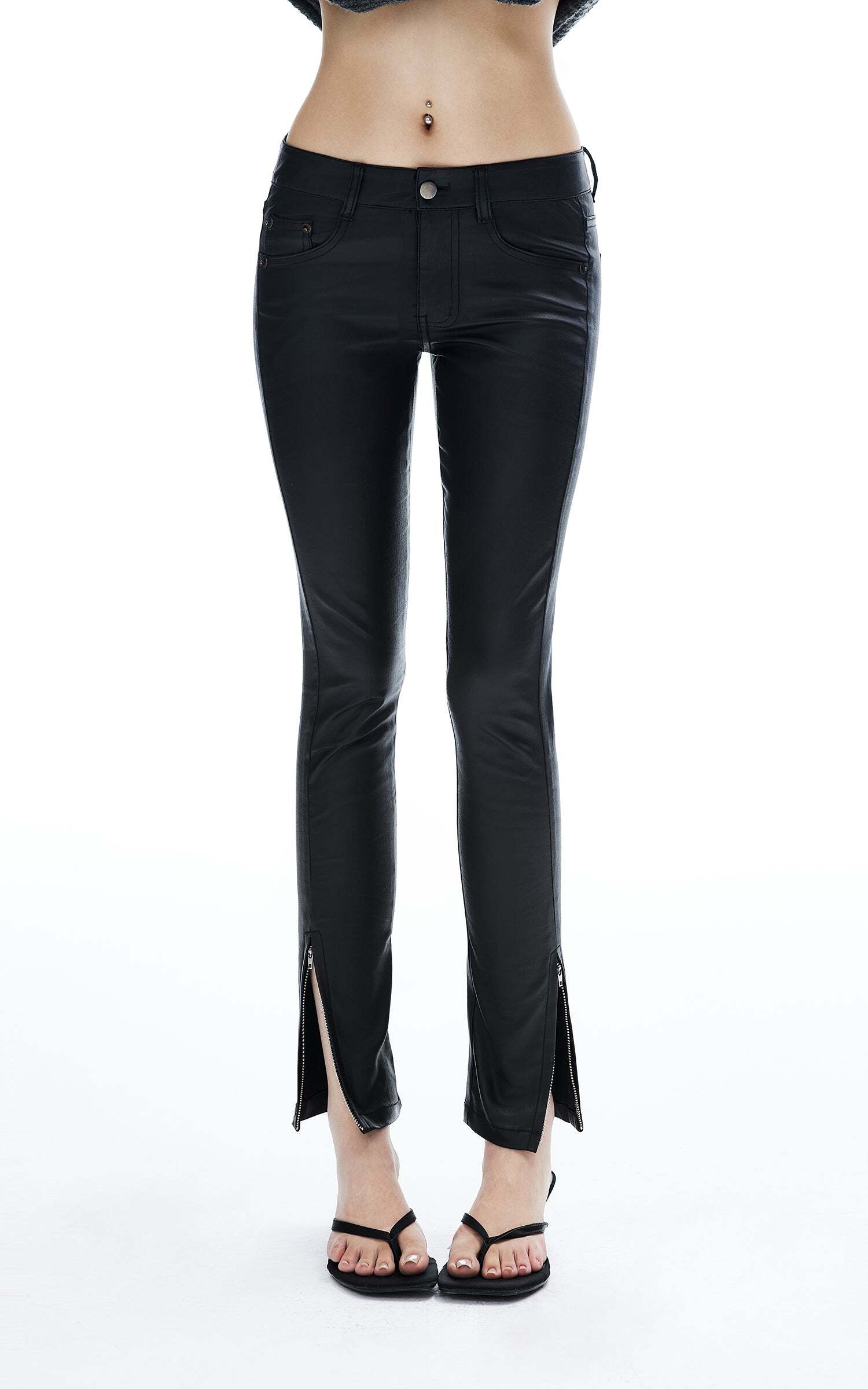Coated Skinny Leather Pants High Shine Slim Fit Trouser – Leather Pants Outfit Winter