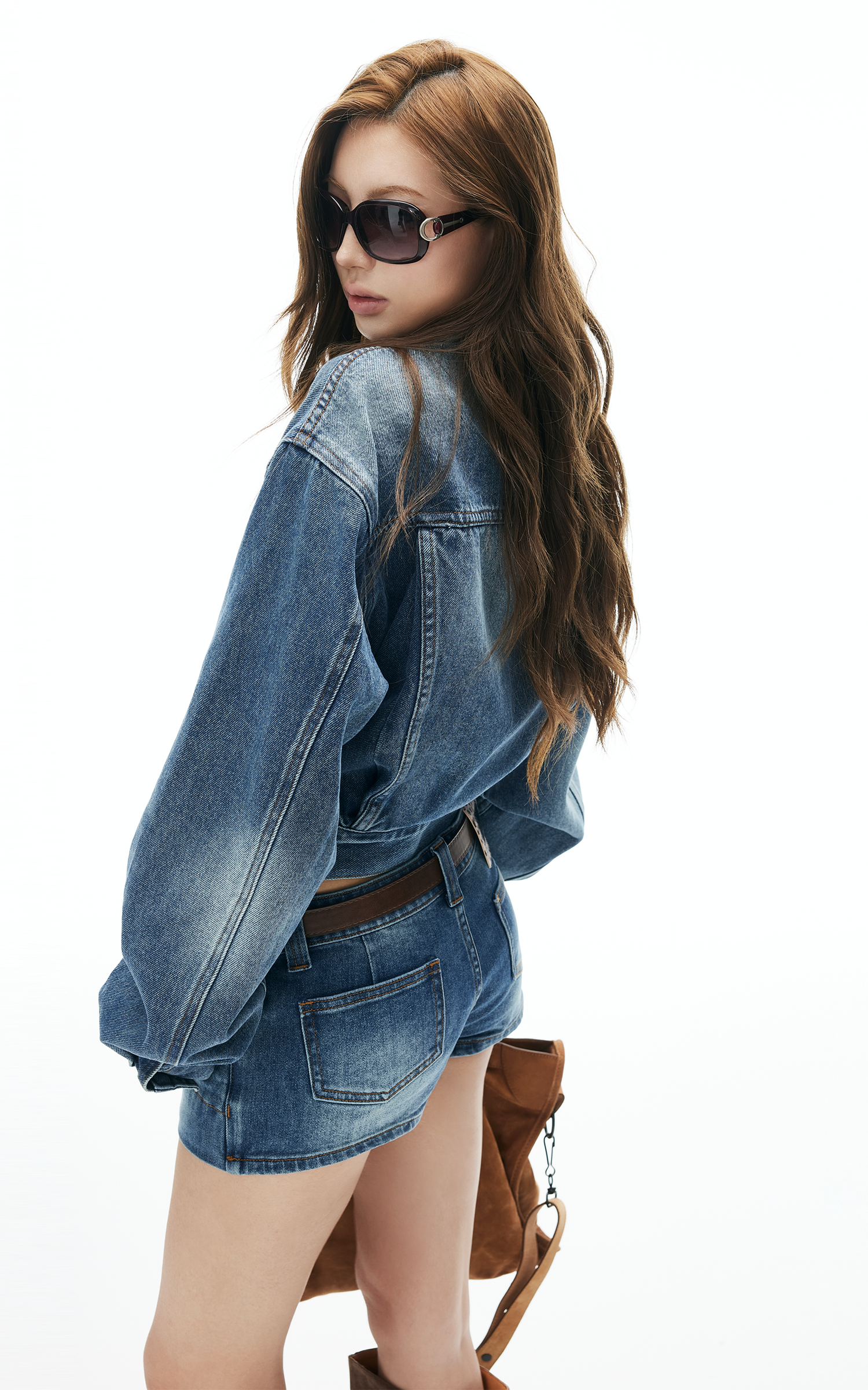 The ultimate denim duo—this set comes with a cropped washed denim jacket and a matching mini skirt. The jacket features a boxy fit with classic button-down details and adjustable waist tabs, while the mini skirt keeps it flirty with a low-rise cut and raw edge finish. Wear them together for a bold head-to-toe denim look, or style separately for endless mix-and-match vibes.