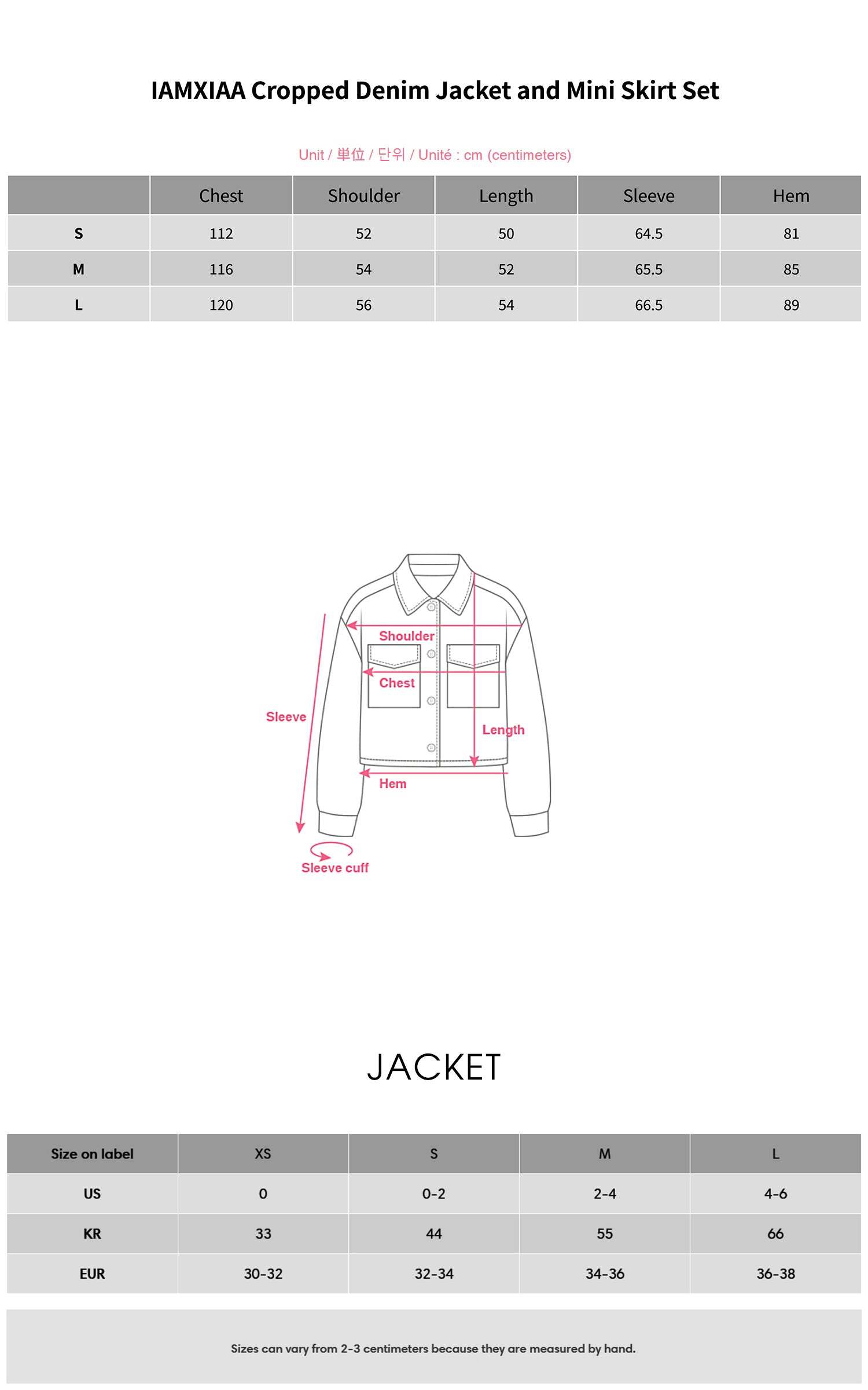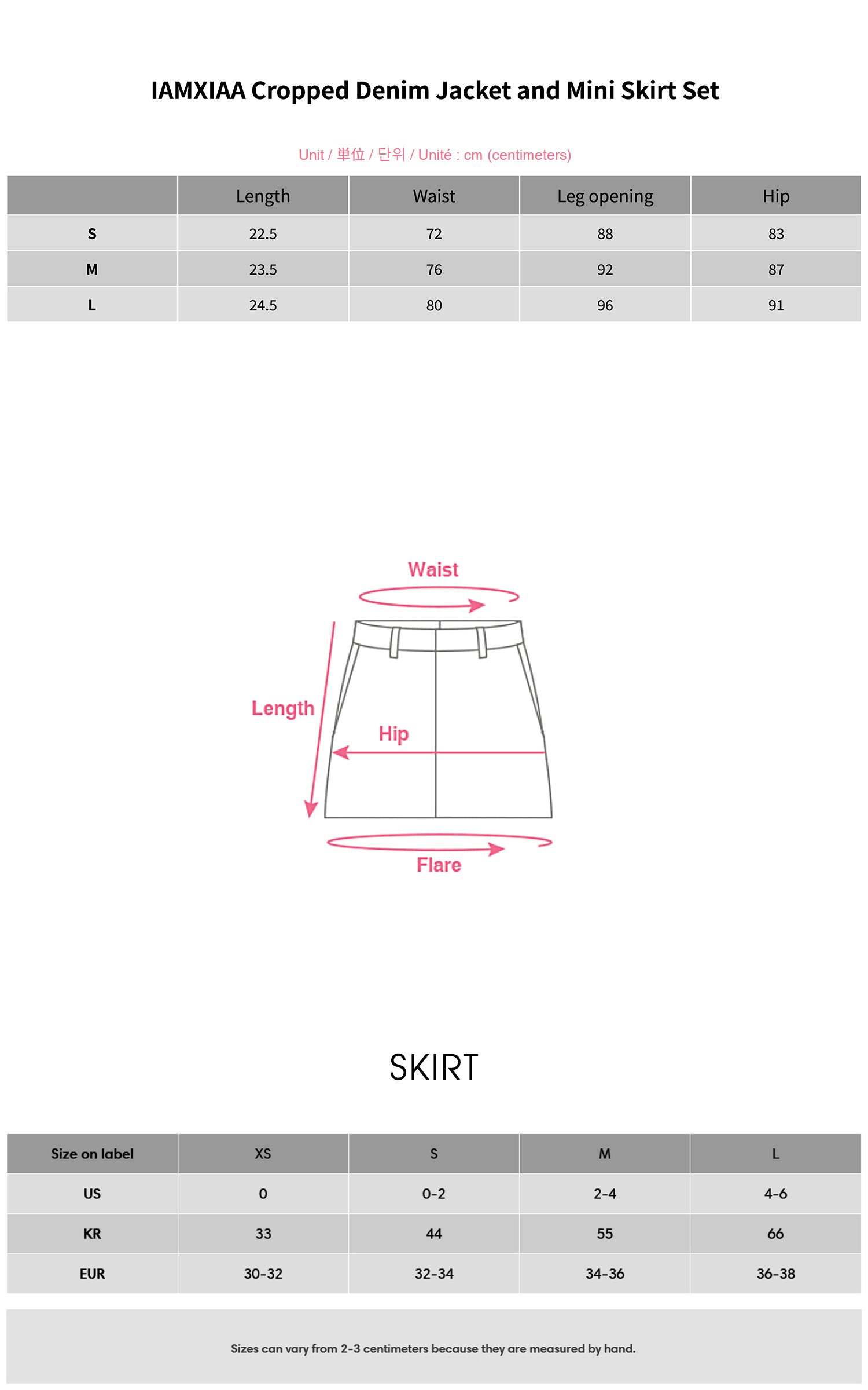 - Model is wearing size S for the Jacket and size S for the Skirt.