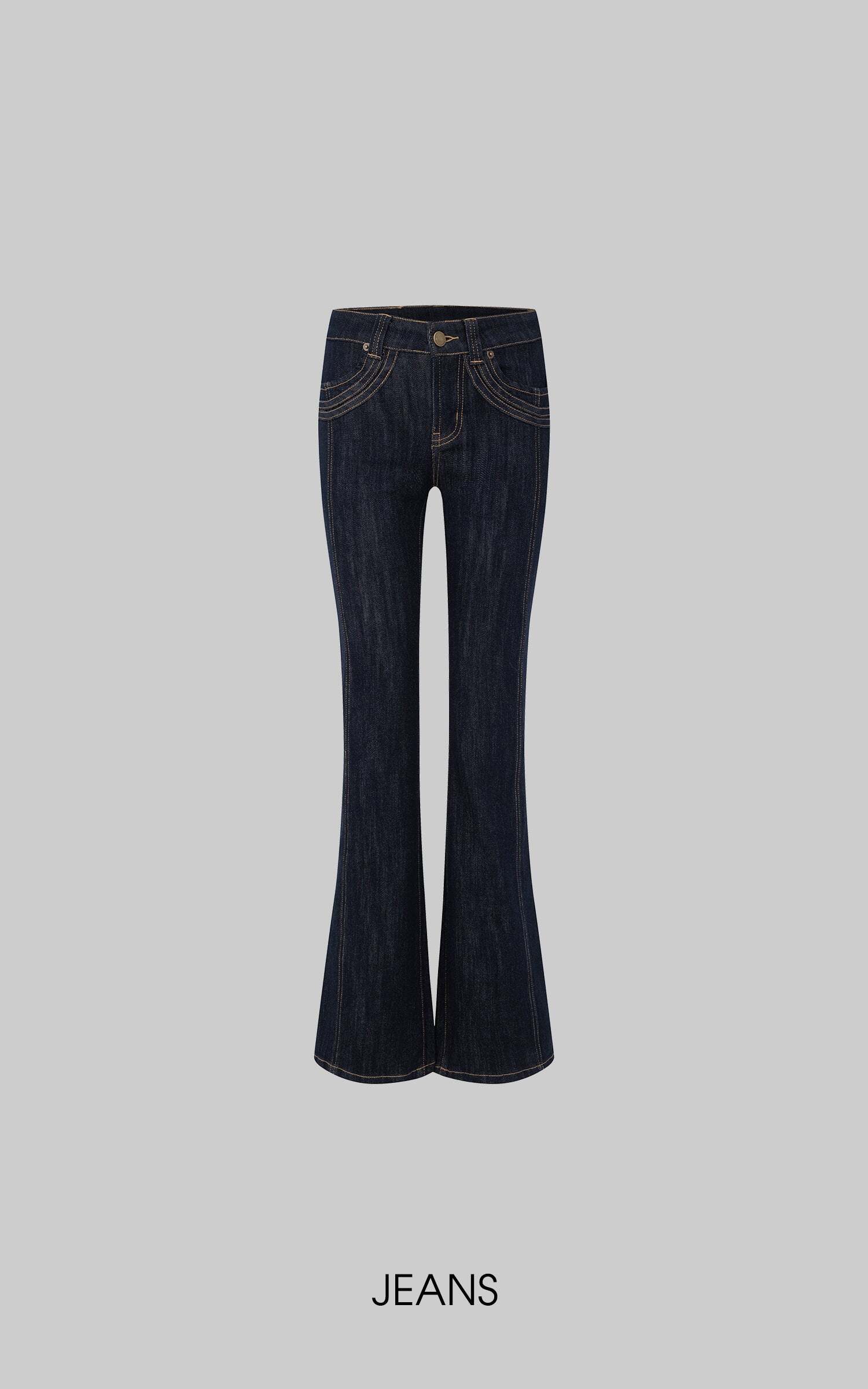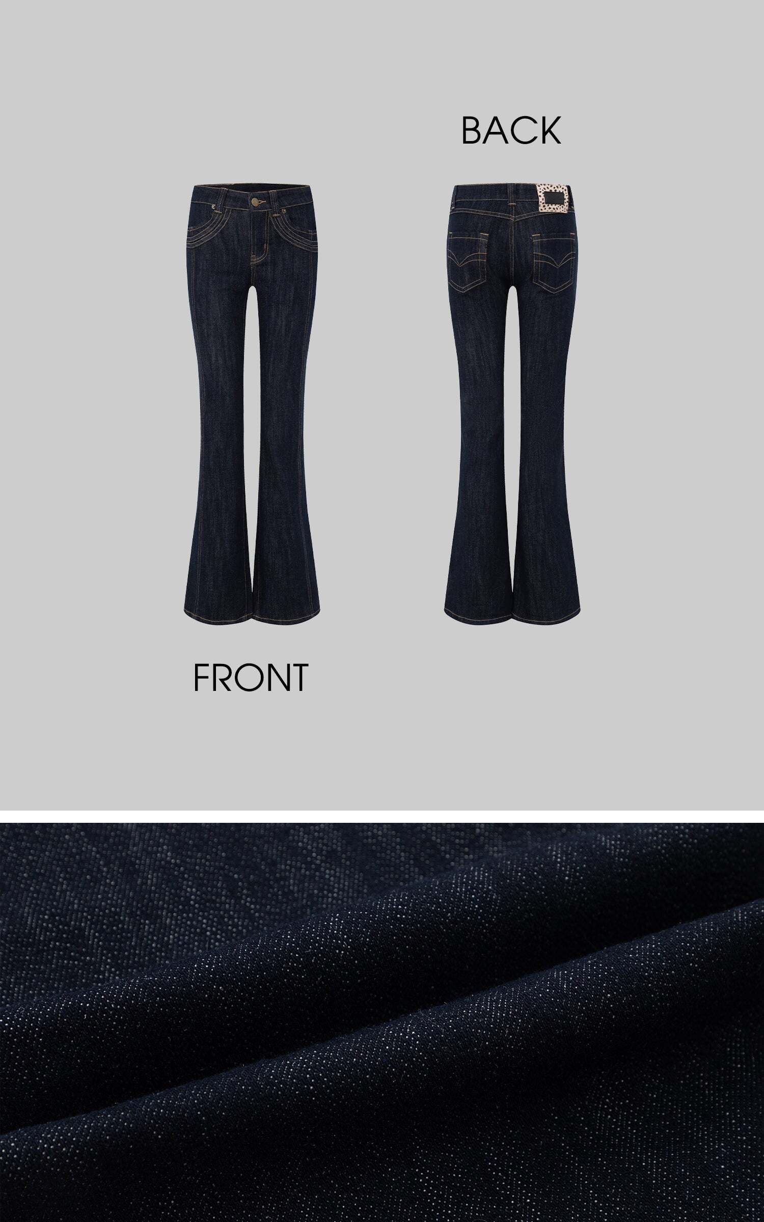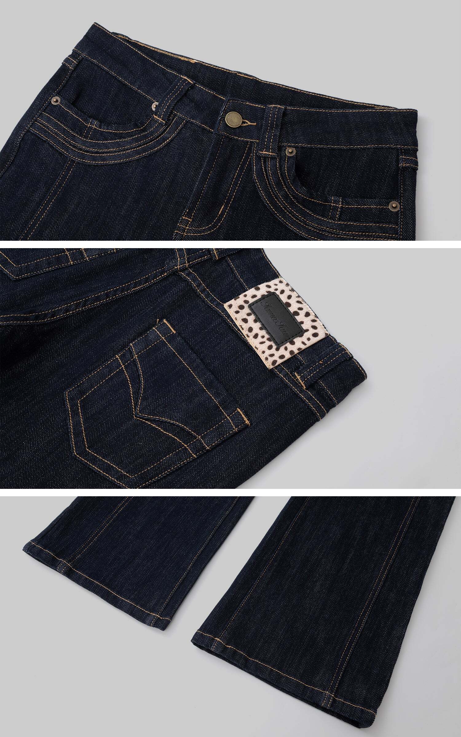 Dark-wash denim with a retro edge—this matching set pairs a cropped jacket with structured seams and gold-tone buttons with flared jeans that hug the hips before falling loose at the hem. A playful patch detail at the back adds attitude, while the tailored fit keeps the look polished. Wear it together for a statement double-denim moment or mix and match with your everyday staples.