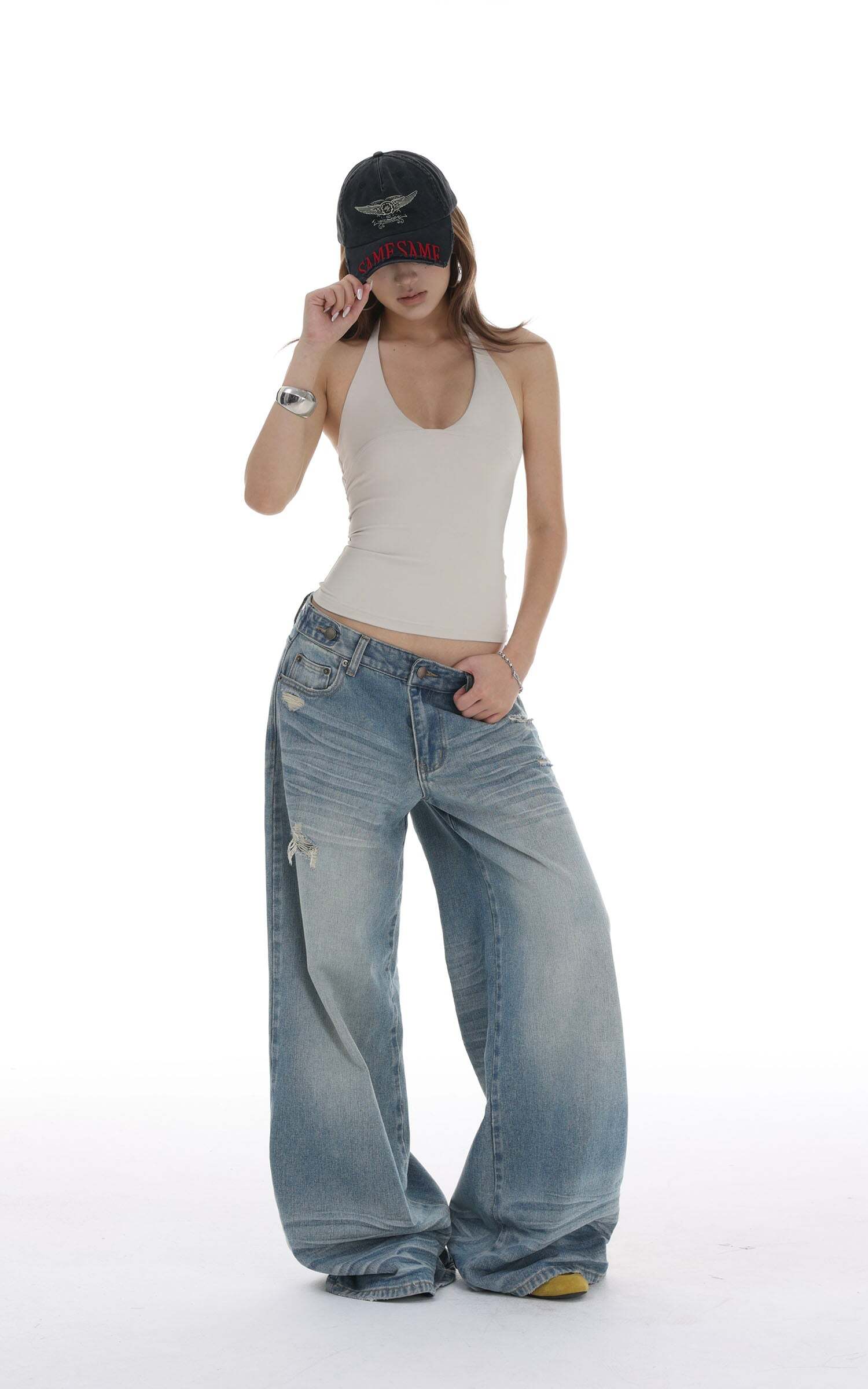 Distressed Baggy Denim Jeans Low Waist Wide Leg Street Style Vintage W – Outfit Inspo