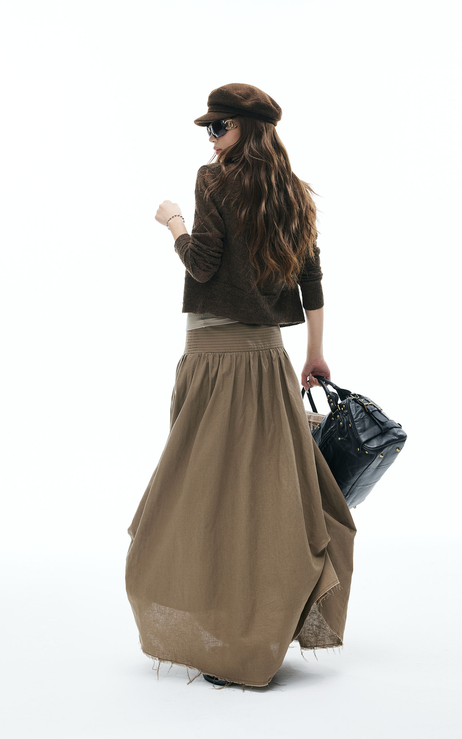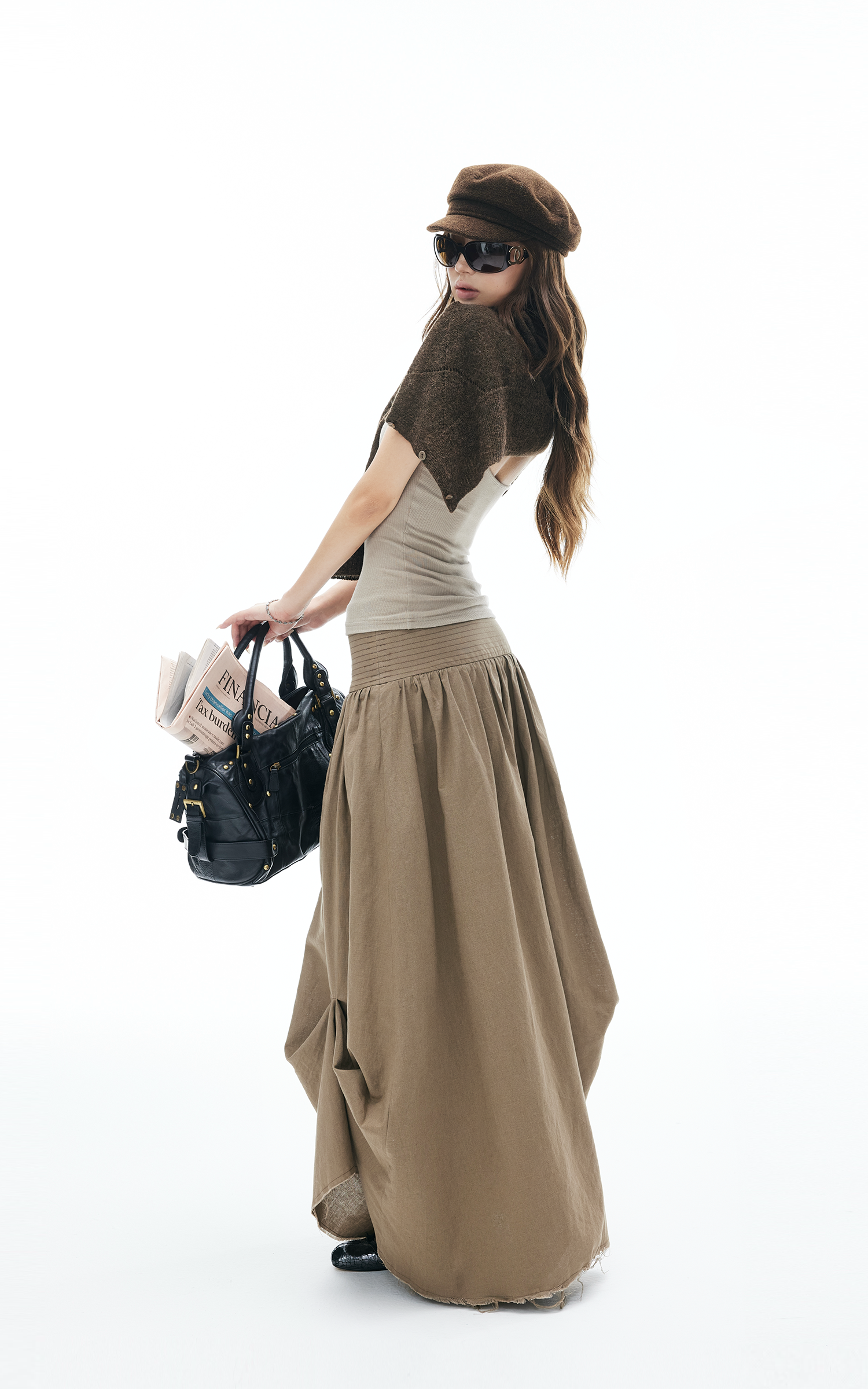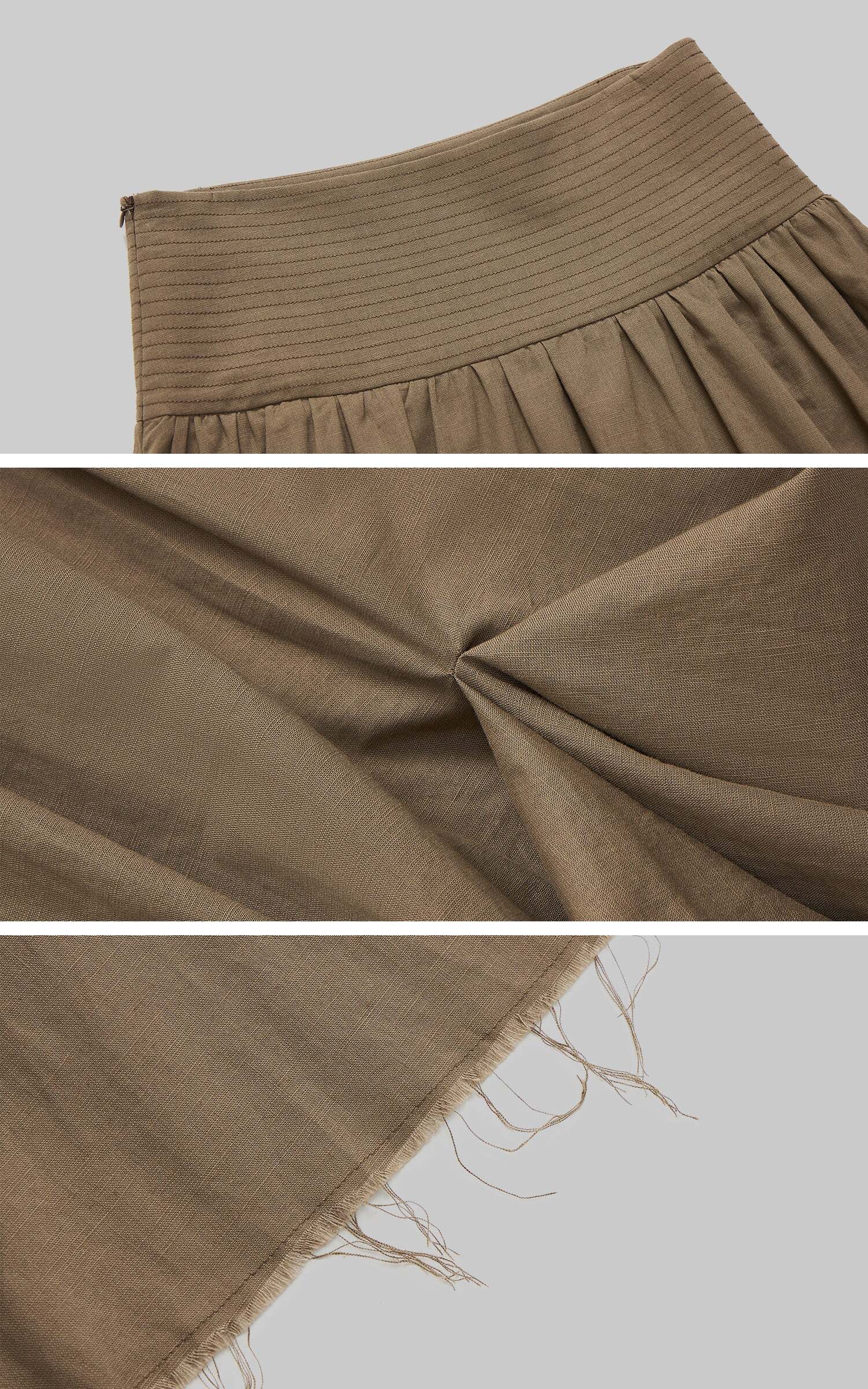 This maxi skirt blends effortless flow with deconstructed details. Designed with a wide ruched waistband, asymmetric draping, and raw-cut hem, it moves with an undone yet polished energy. Lightweight fabric makes it easy to wear from daytime strolls to late-night layering. Pair with knits or tanks for a street-ready look that mixes edge and ease.