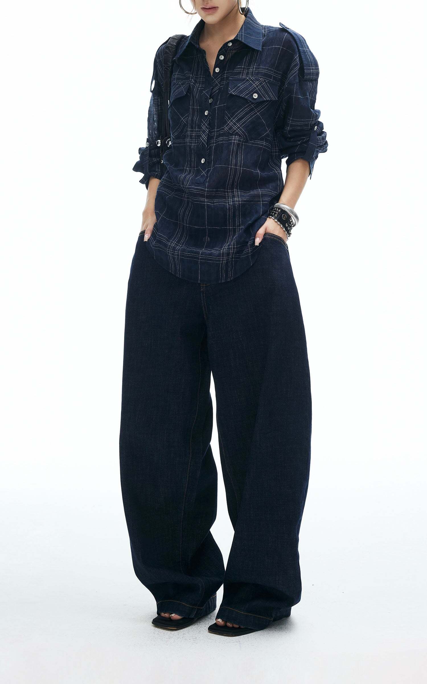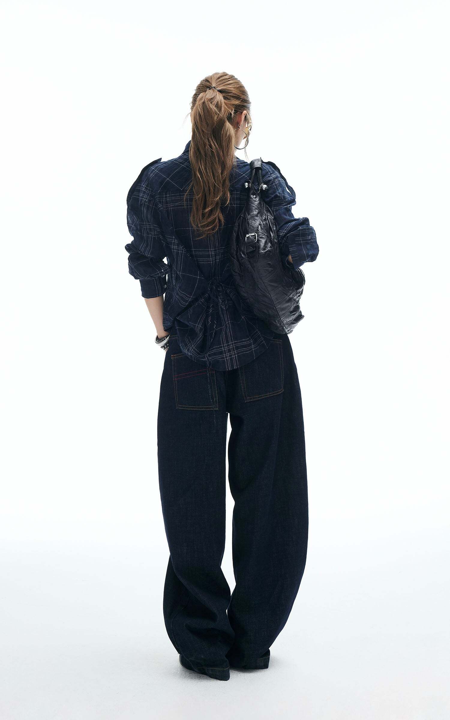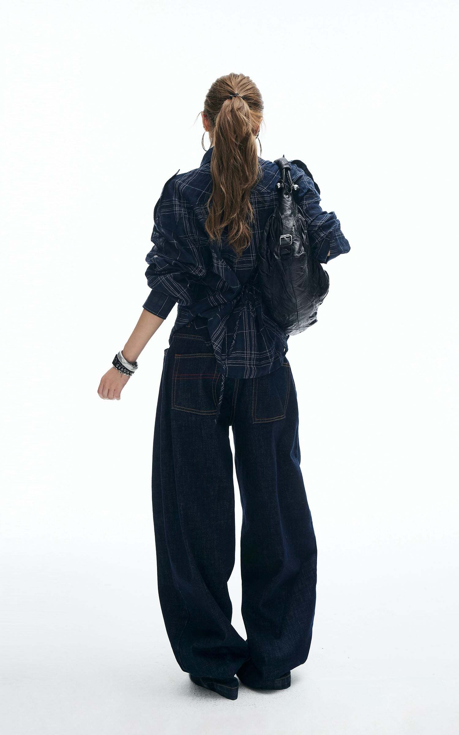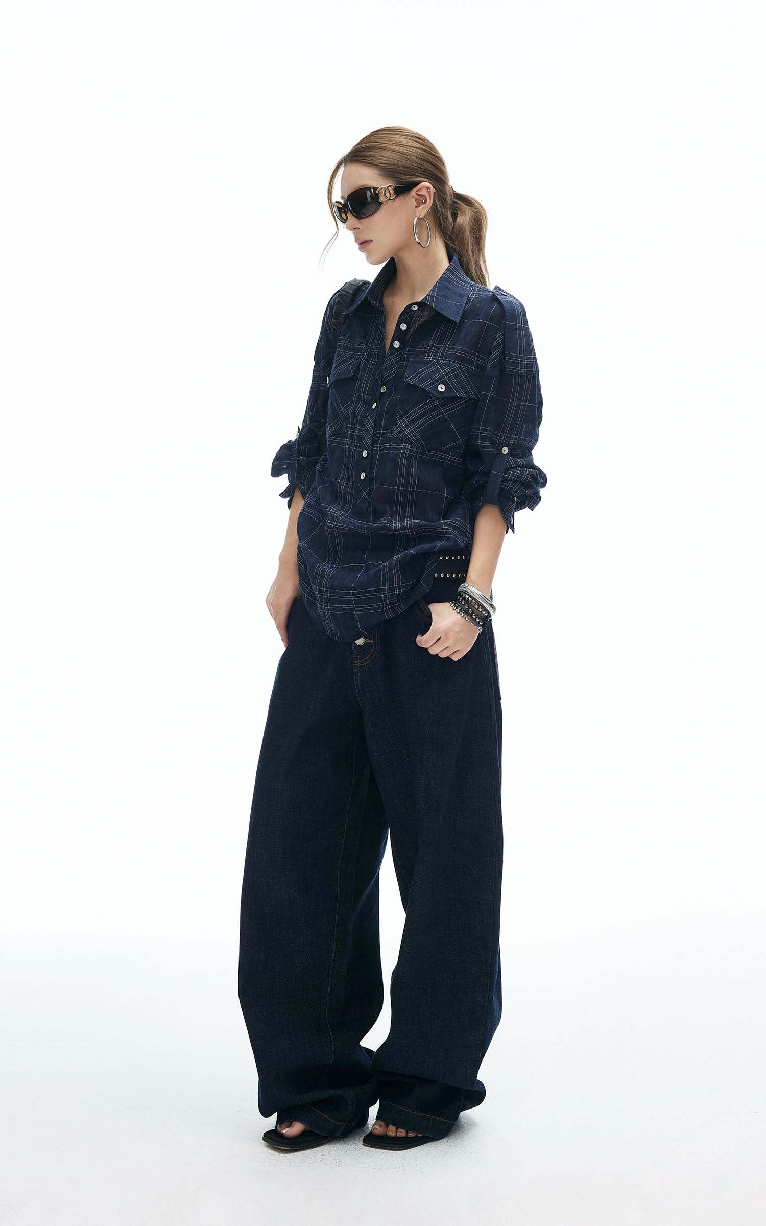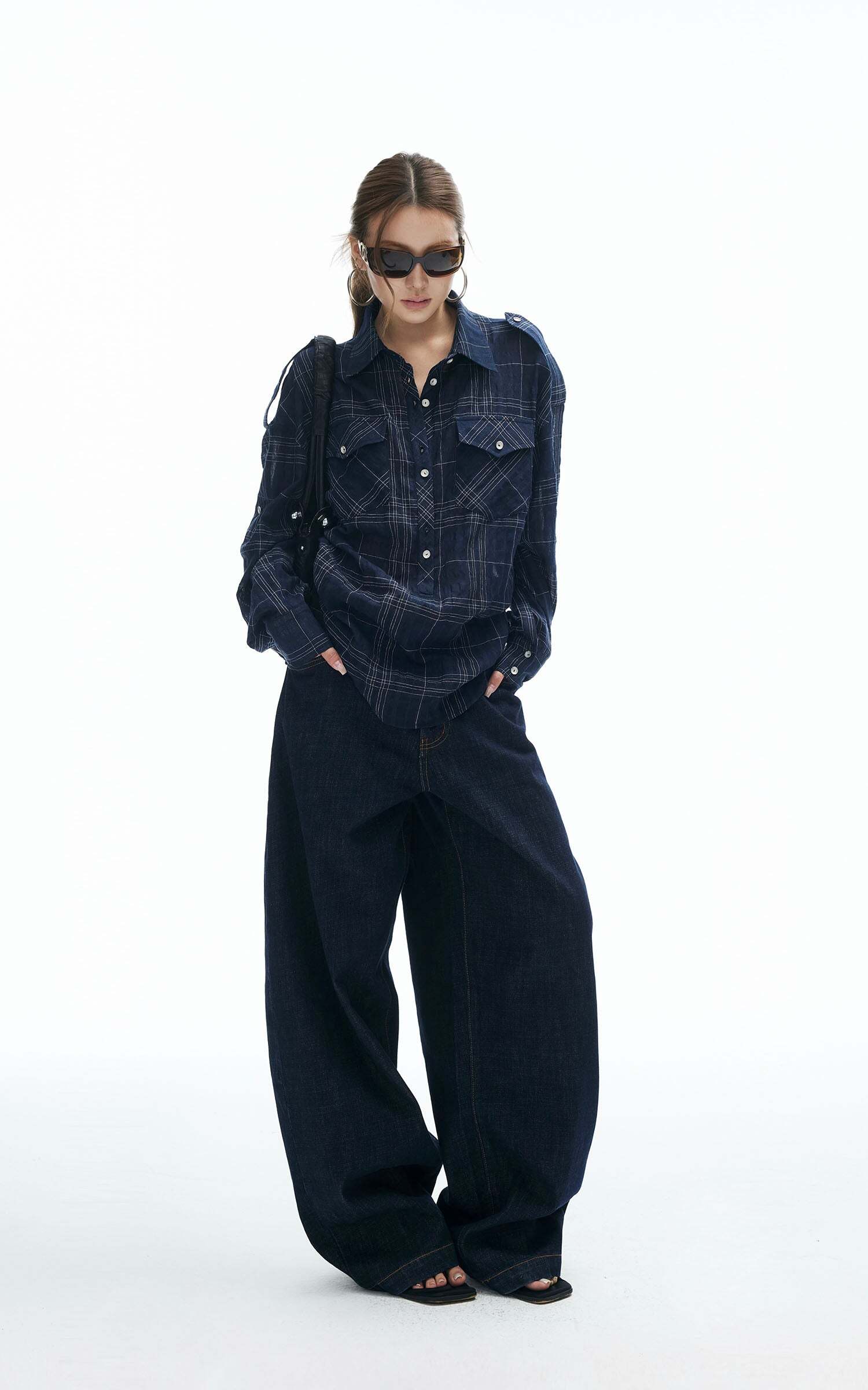 A relaxed plaid shirt reimagined with edge. Featuring a button-down front, dual chest pockets, and adjustable sleeve tabs, this piece is designed for both comfort and attitude. The tie-back detail adds a subtle twist to the oversized silhouette, making it perfect for layering or wearing solo. Style it with wide-leg jeans or mini skirts for an effortlessly cool street look.
