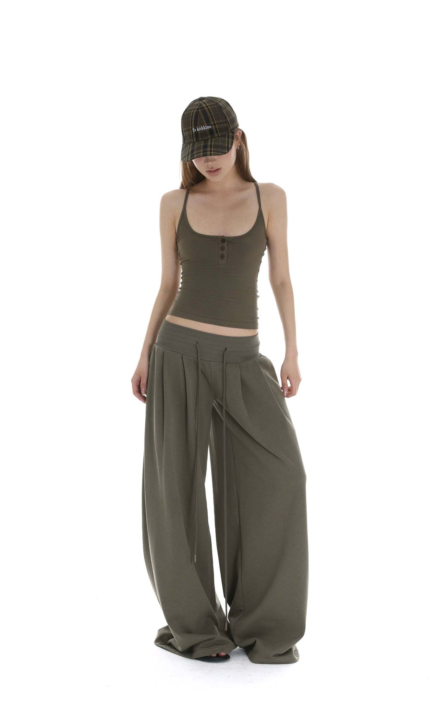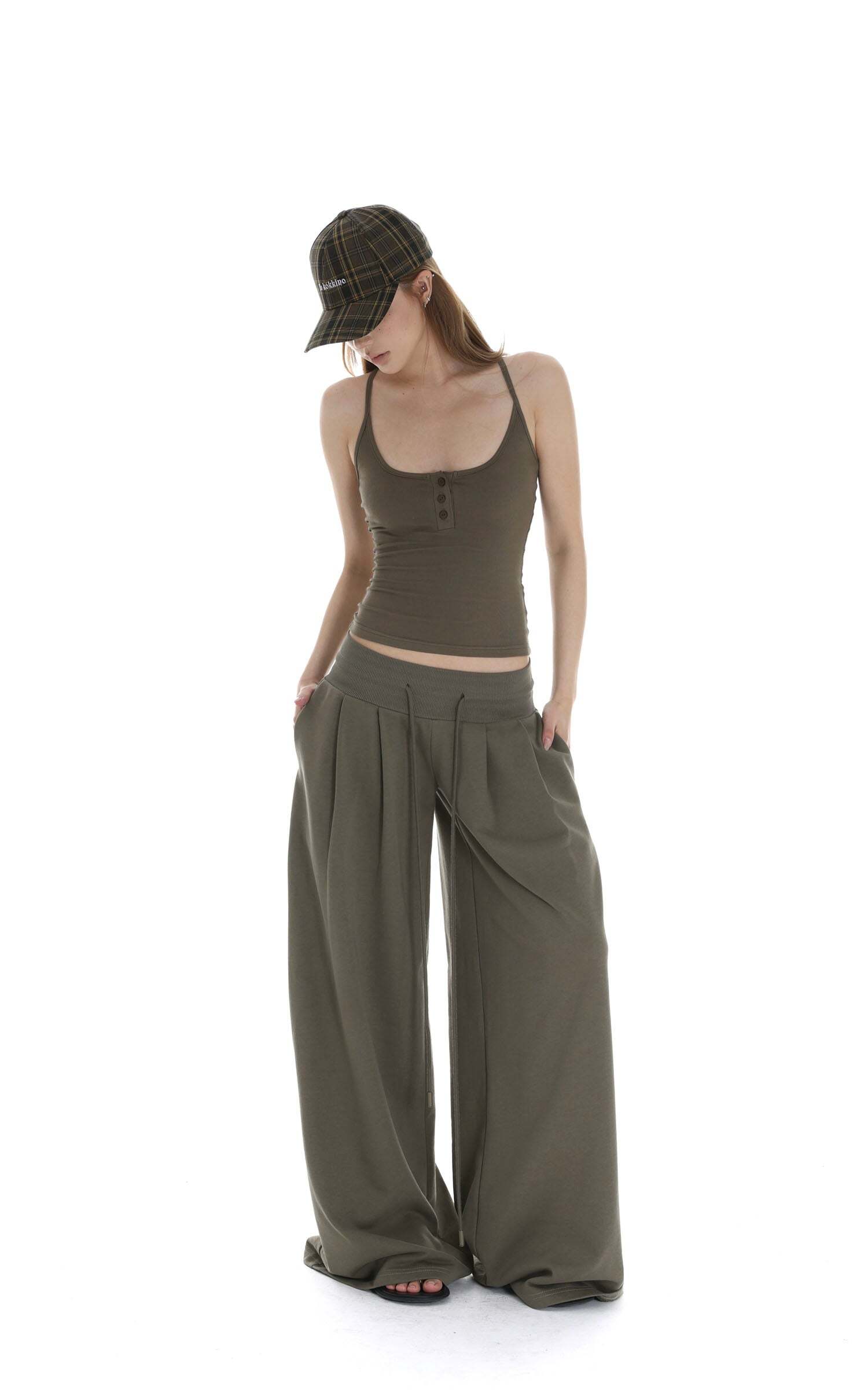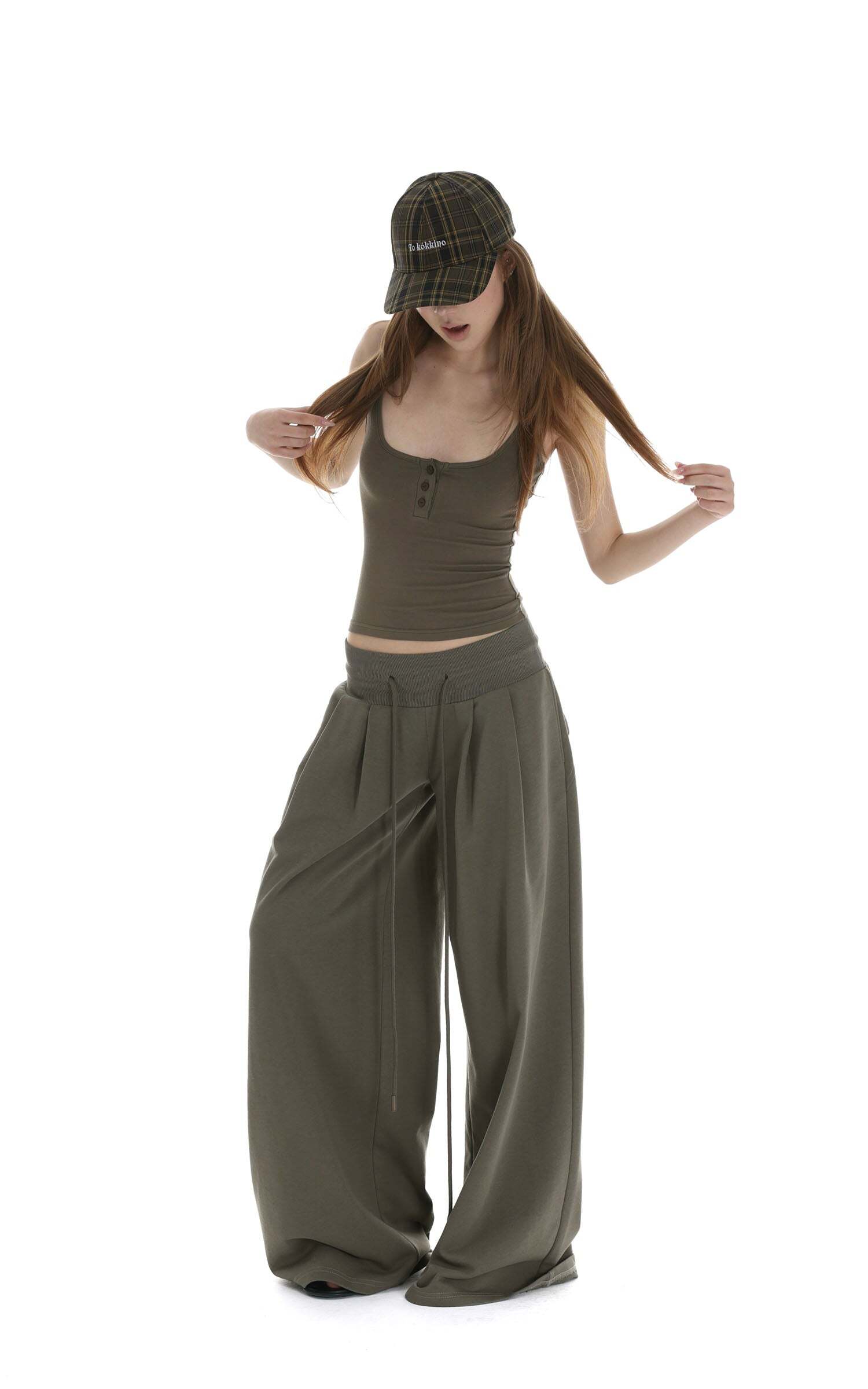 Ribbed Button Tank and Wide Leg Drawstring Pants: Chic Outfit Inspo for Your Wardrobe