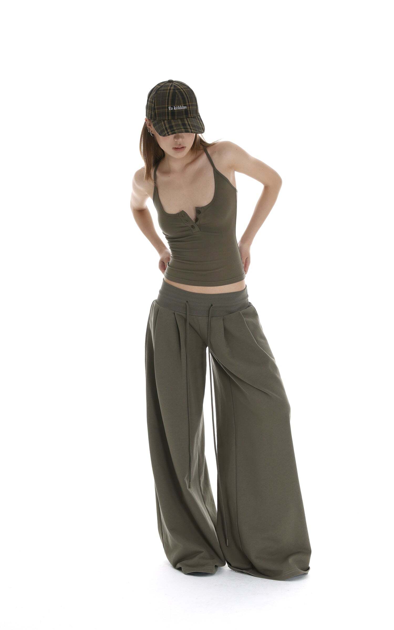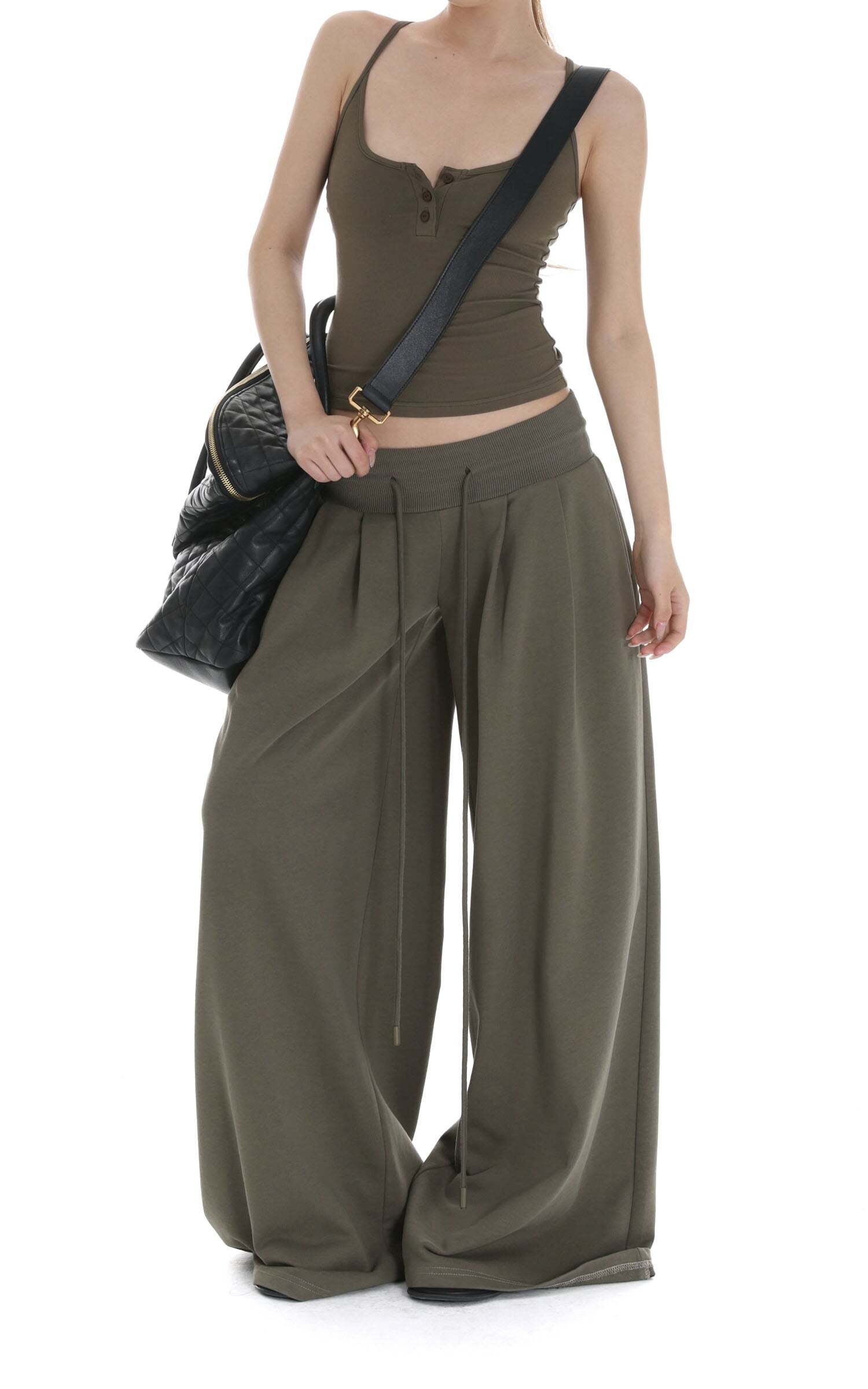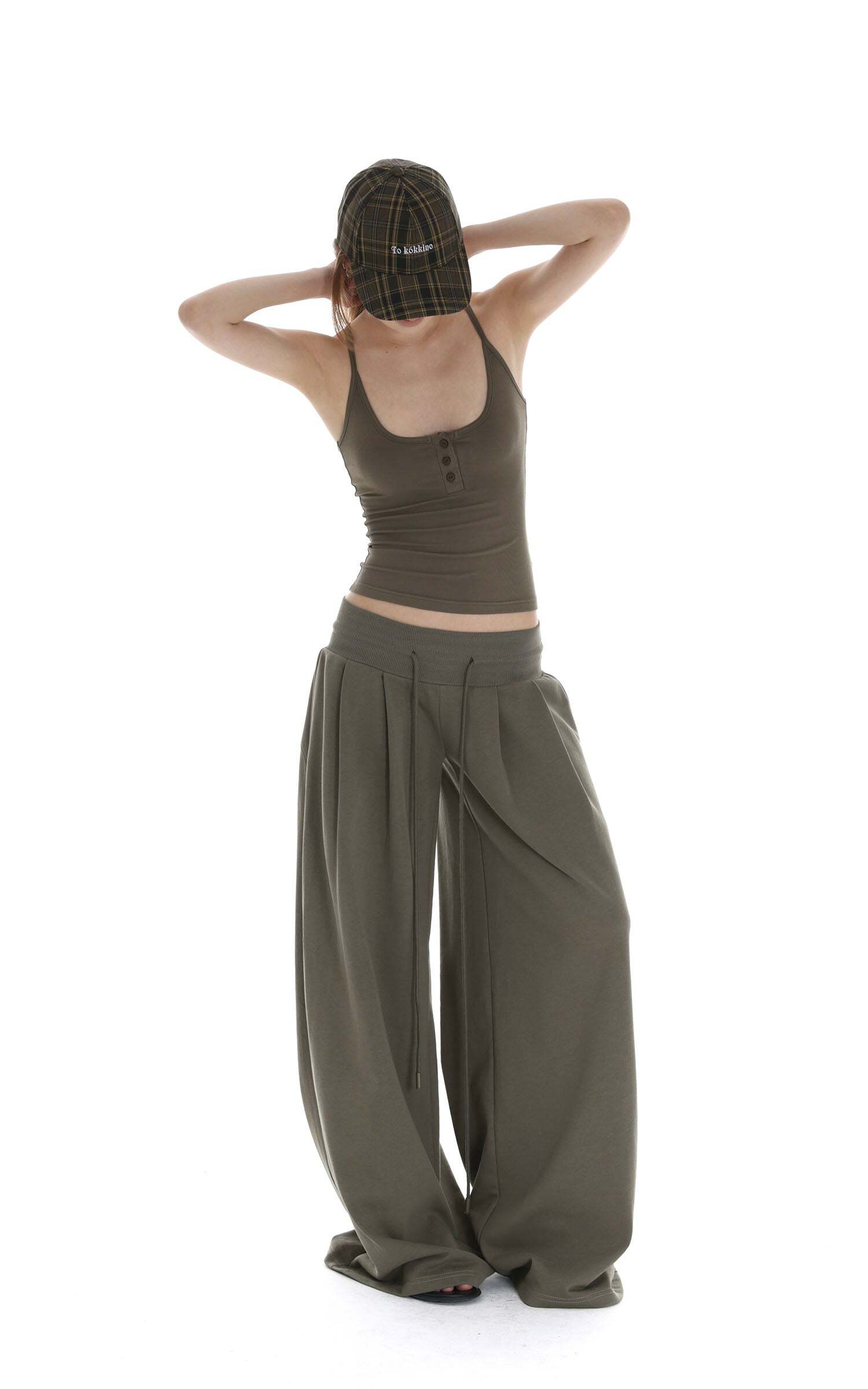 Ribbed Button Tank and Wide Leg Drawstring Pants: Chic Outfit Inspo for Your Wardrobe