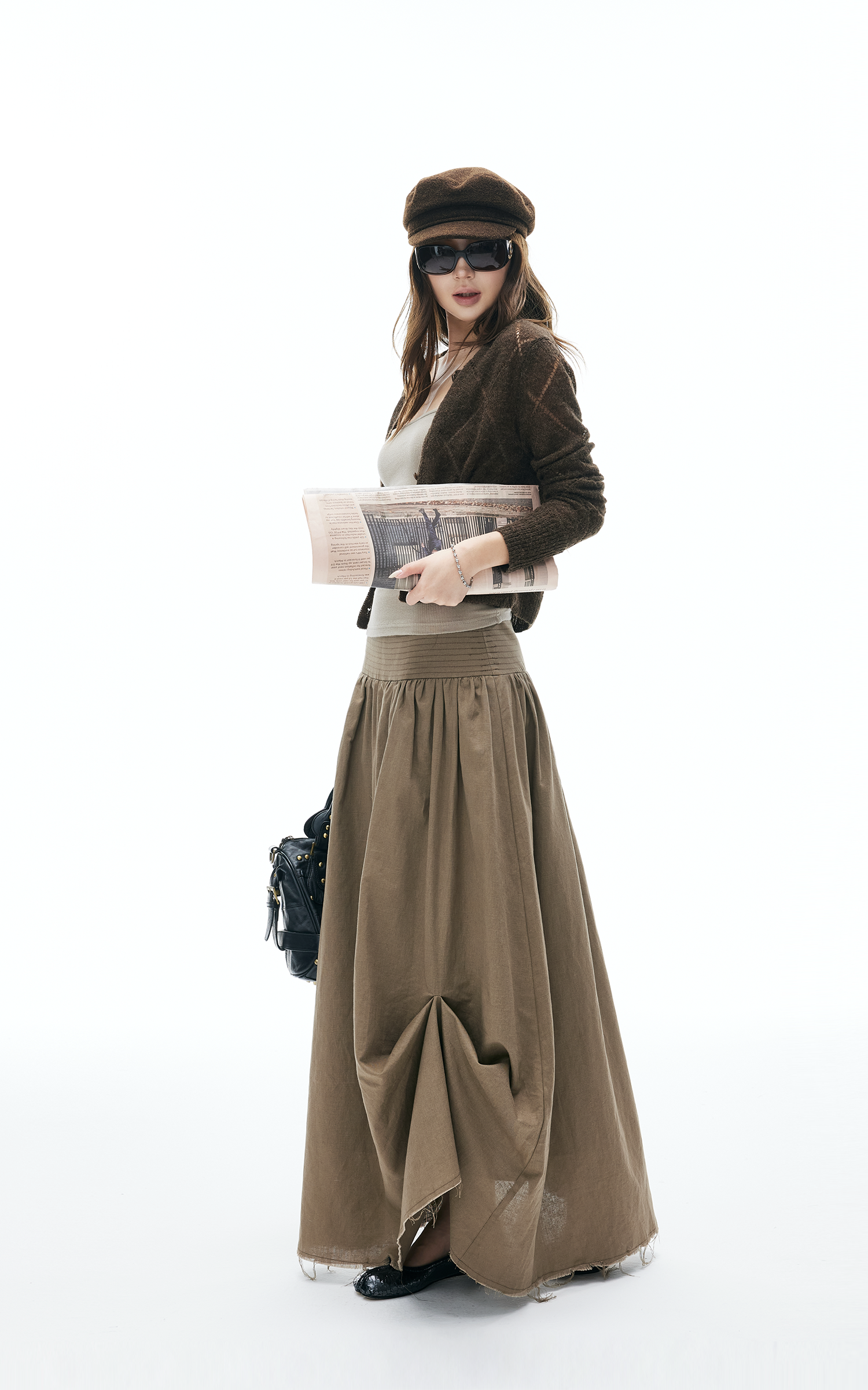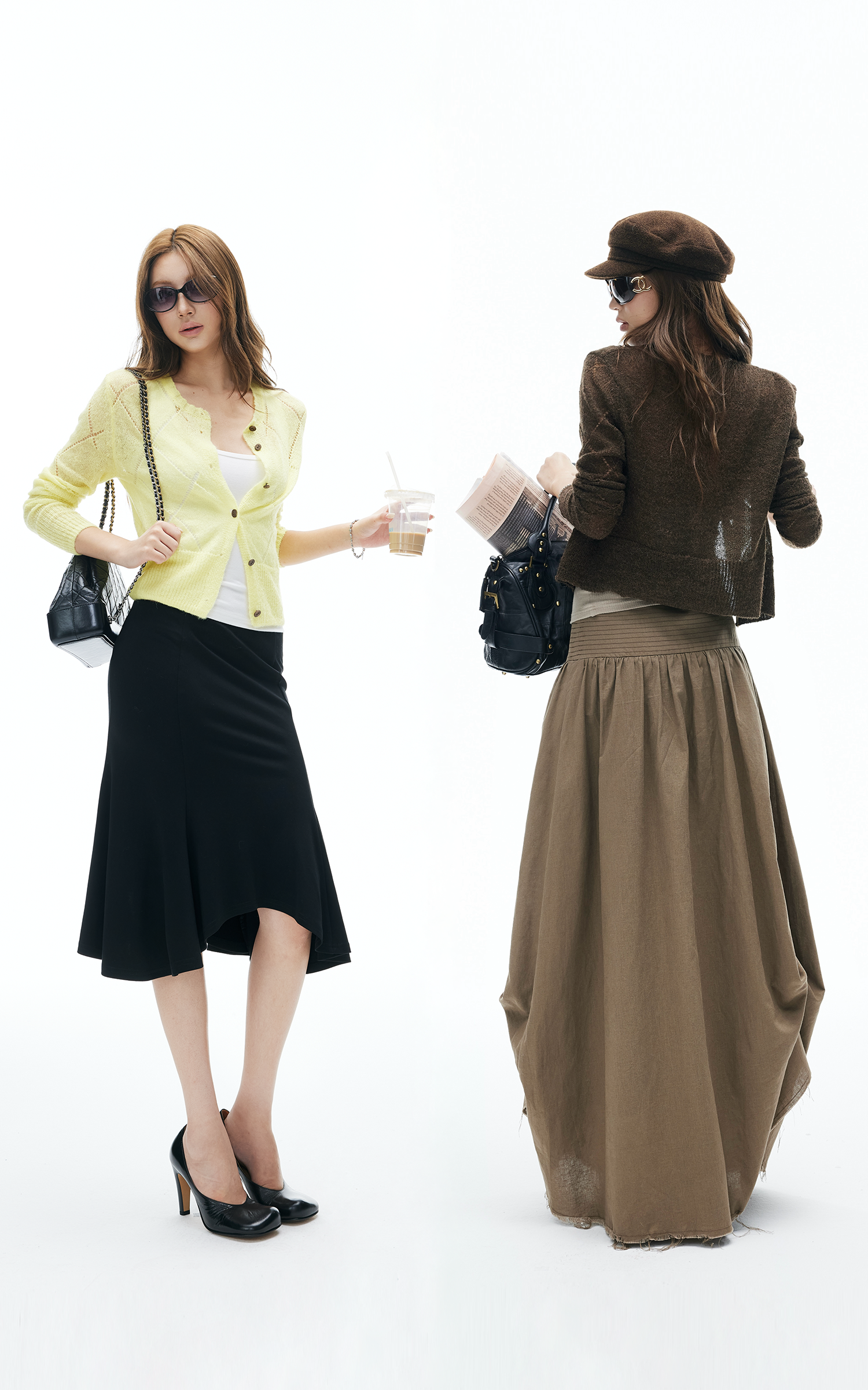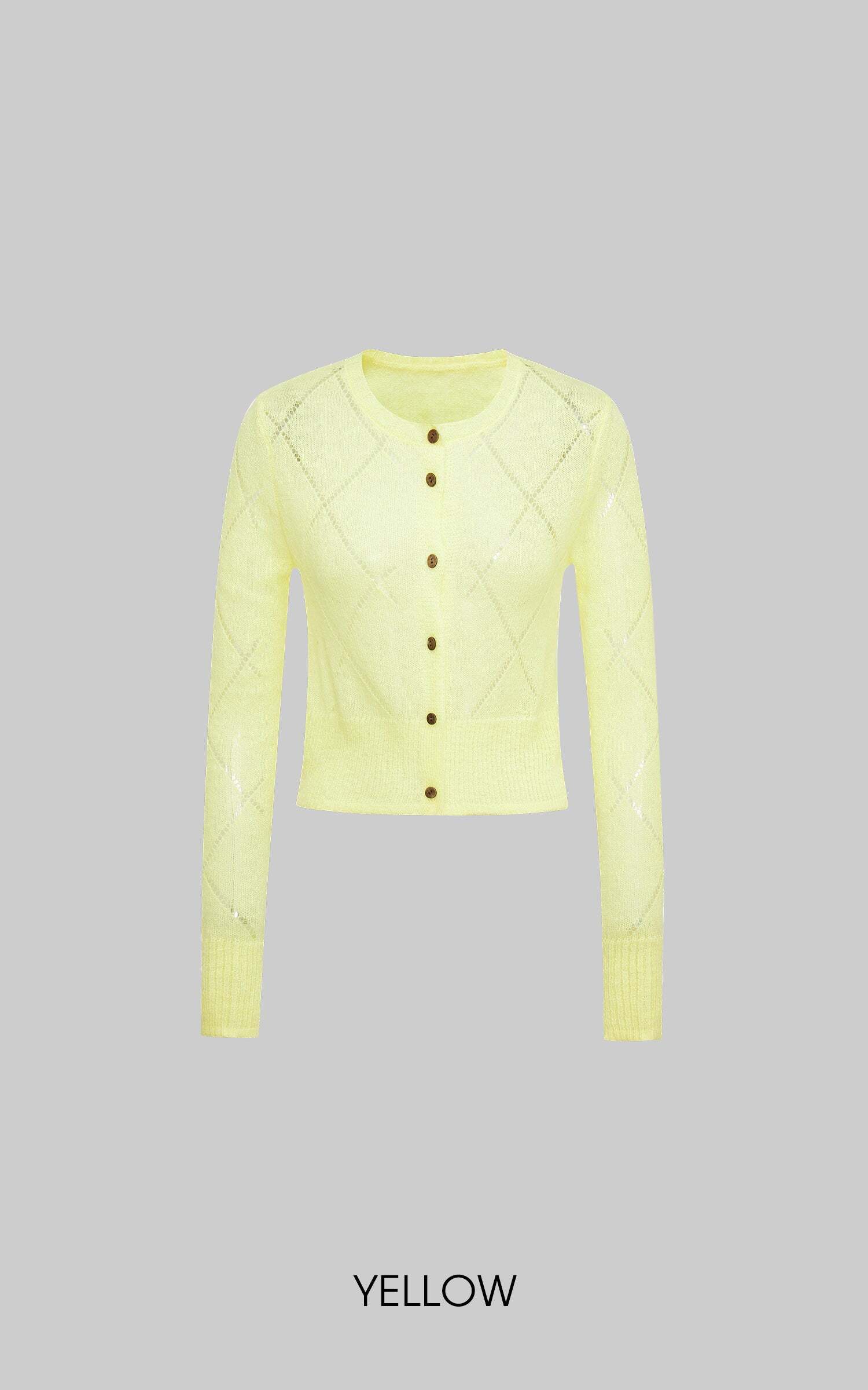 A lightweight knit cardigan with a semi-sheer finish and delicate diamond pattern. The cropped cut and button-up front make it perfect for layering over tanks or dresses. Style it with a maxi skirt for a laid-back vibe or throw it over a cami for a playful, street-ready look.