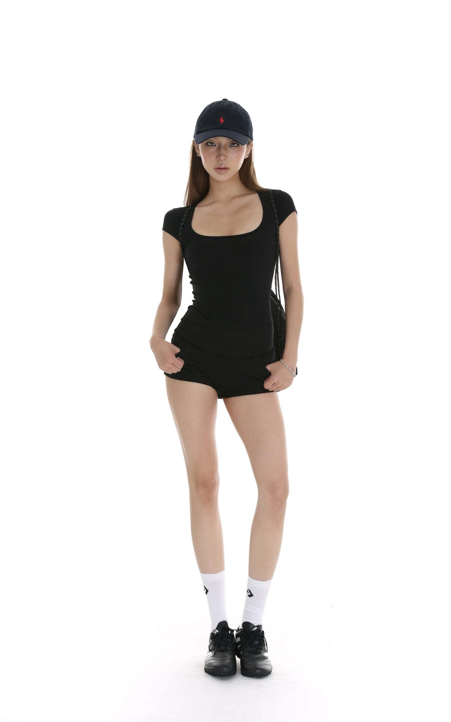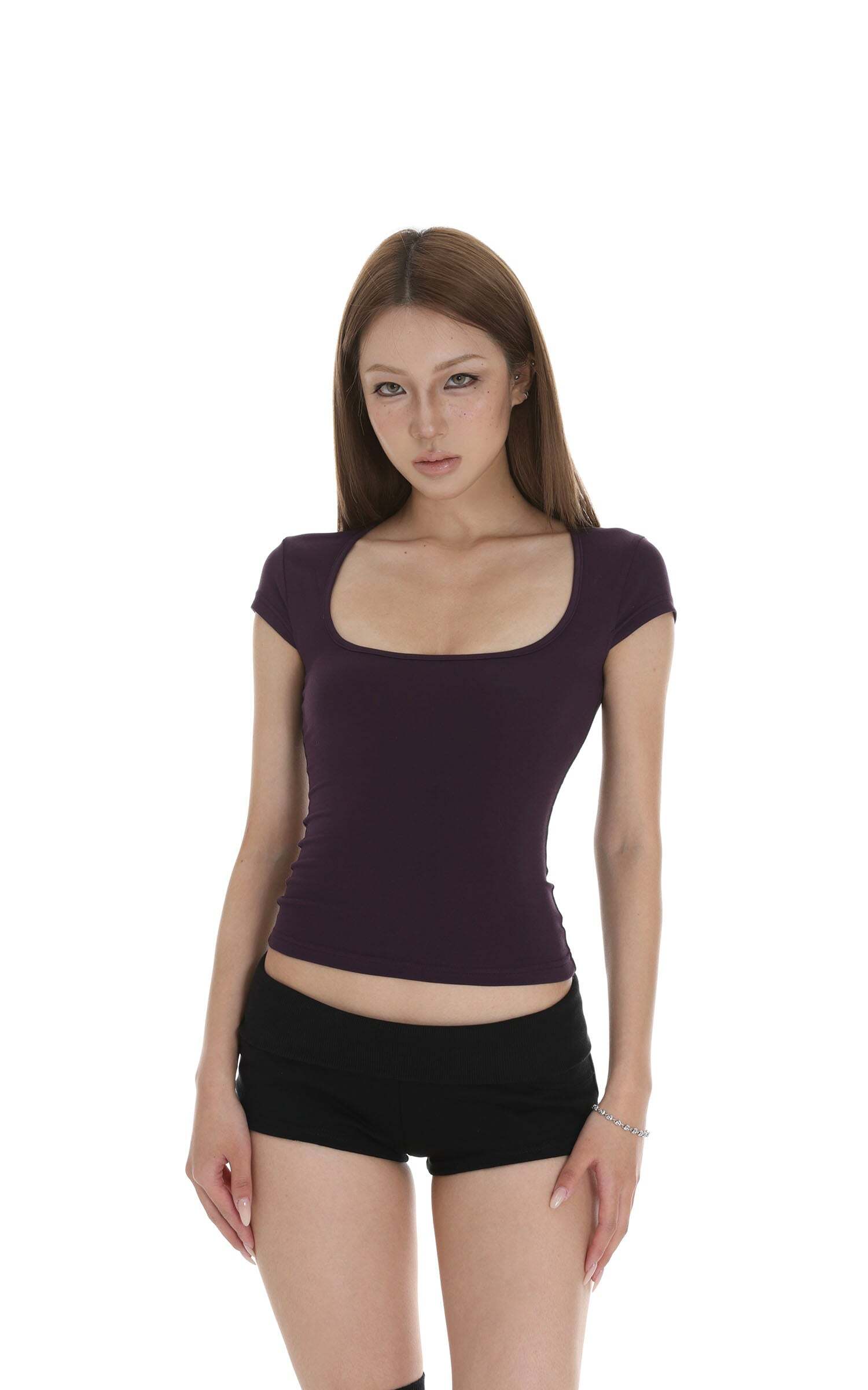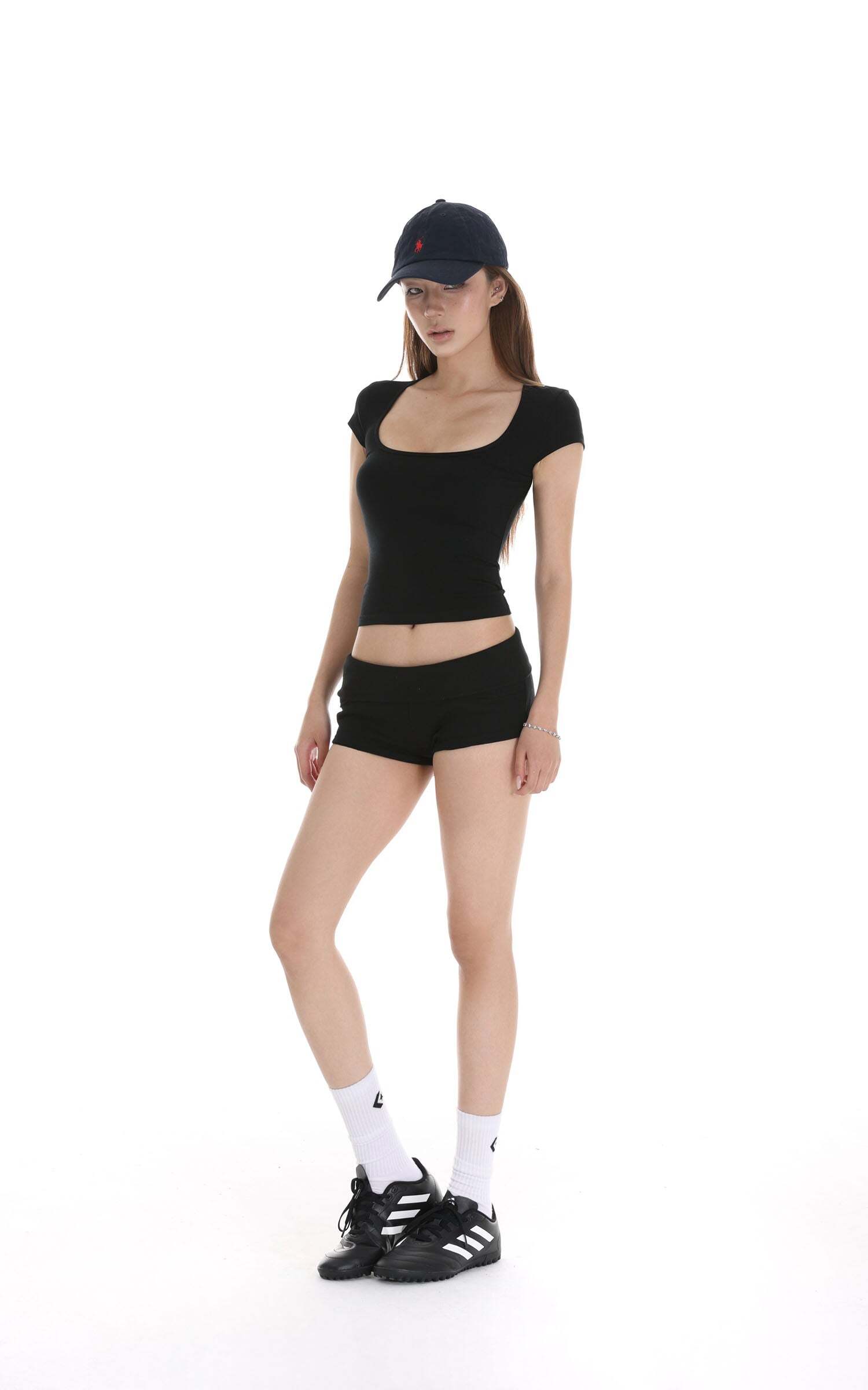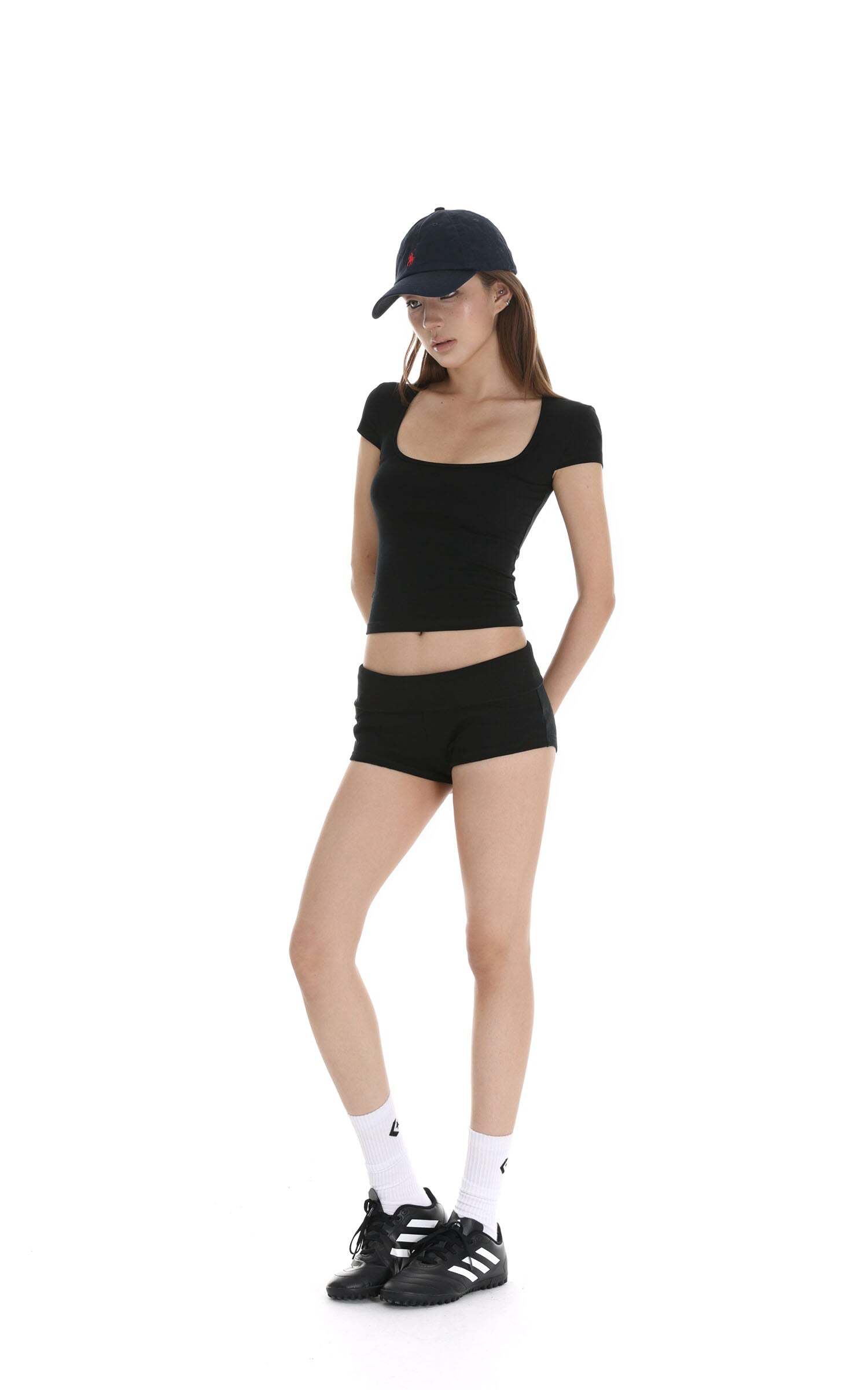 A sleek square-neck T-shirt with a body-hugging fit and cropped cut. Crafted from soft stretch fabric for comfort and shape, it’s the perfect everyday piece with a Y2K twist. Pair it with baggy jeans, pleated skirts, or sporty shorts for versatile styling that goes from casual streetwear to night-out looks.