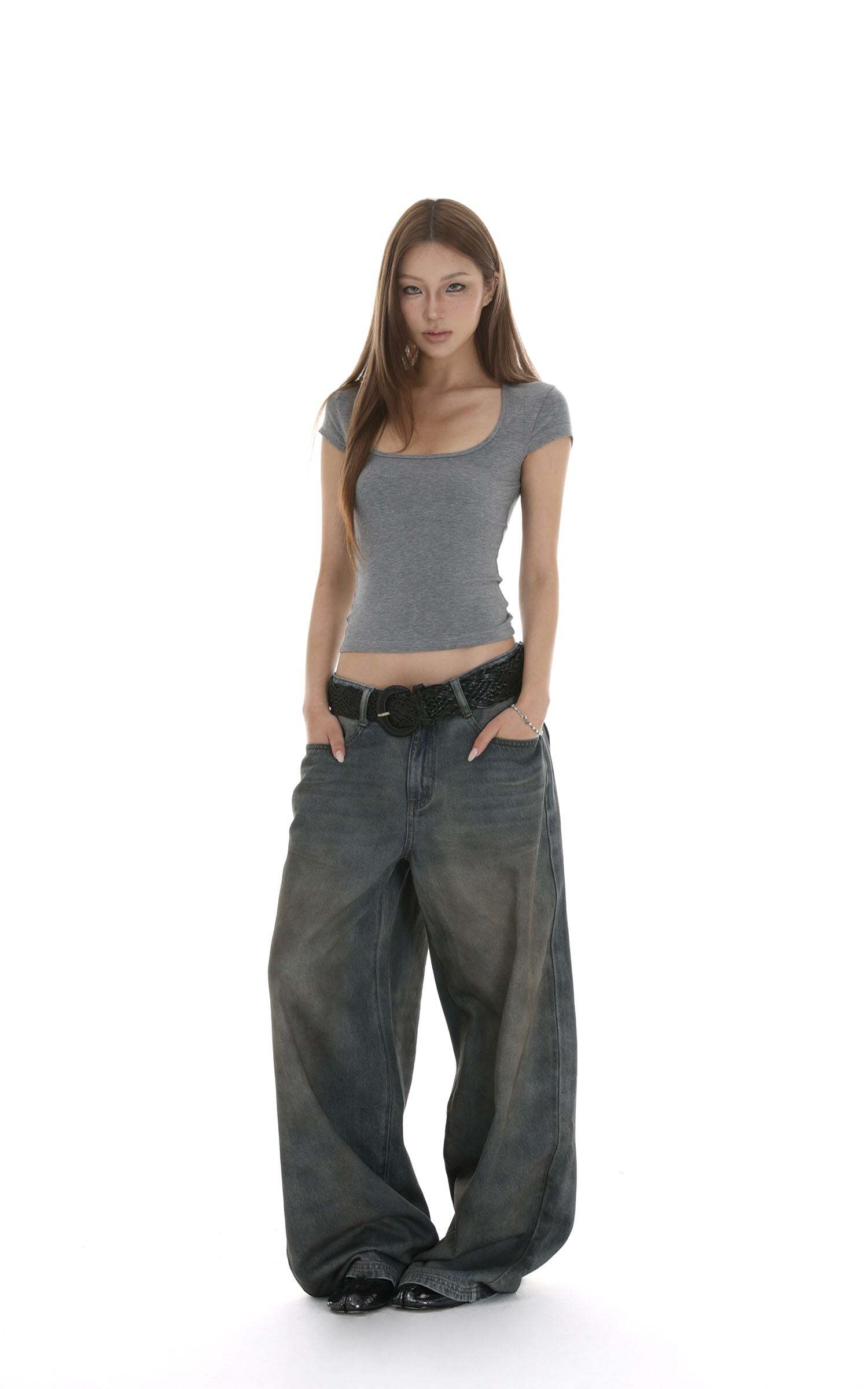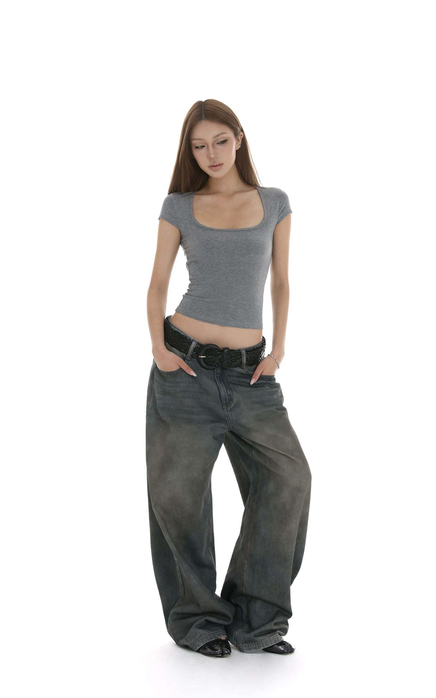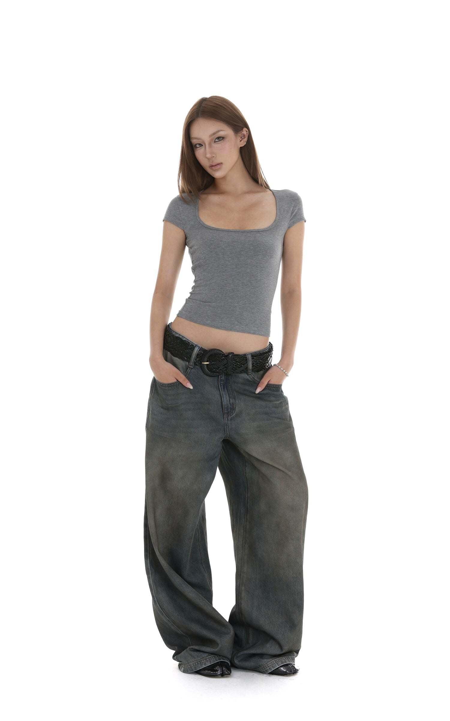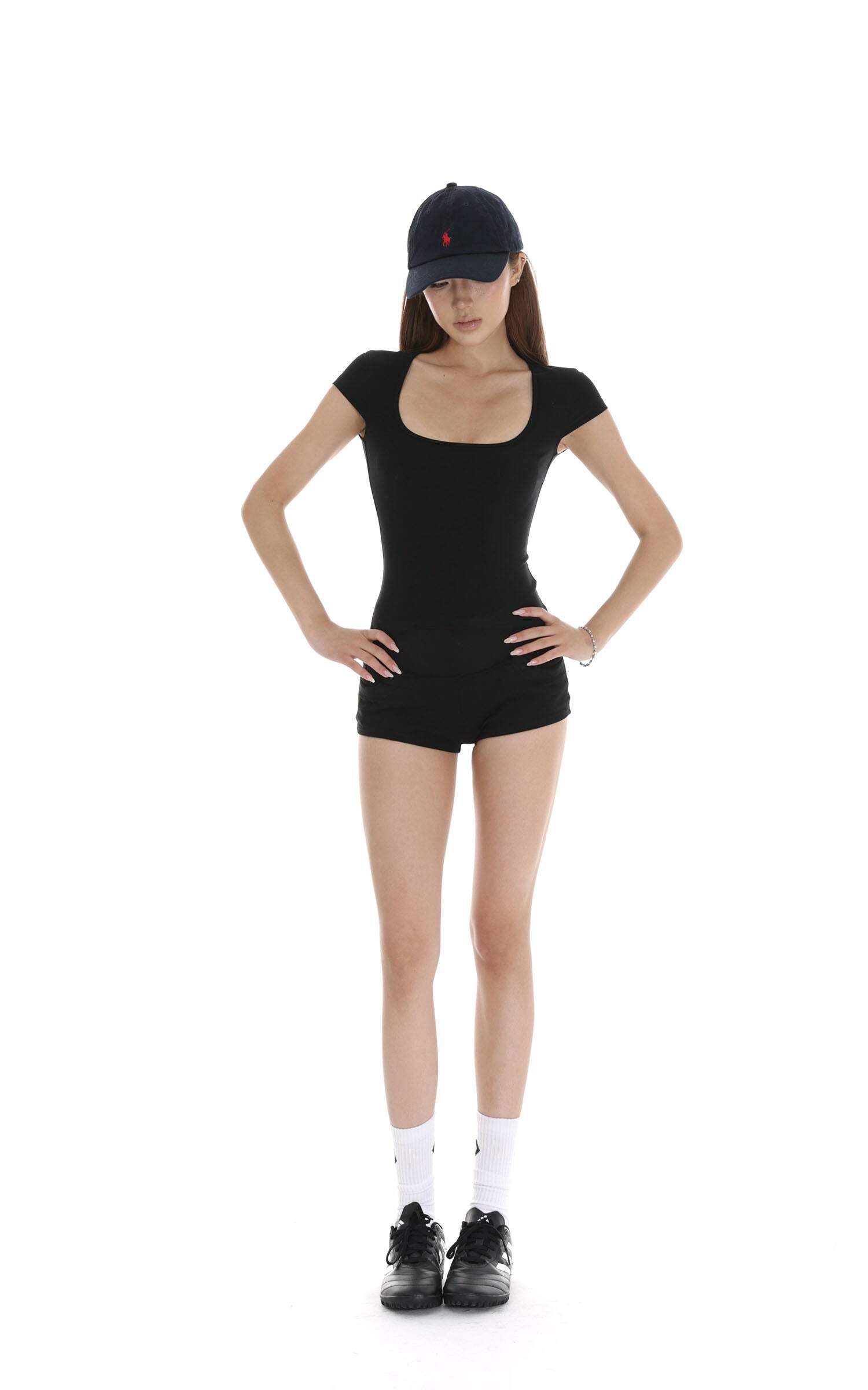 A sleek square-neck T-shirt with a body-hugging fit and cropped cut. Crafted from soft stretch fabric for comfort and shape, it’s the perfect everyday piece with a Y2K twist. Pair it with baggy jeans, pleated skirts, or sporty shorts for versatile styling that goes from casual streetwear to night-out looks.
