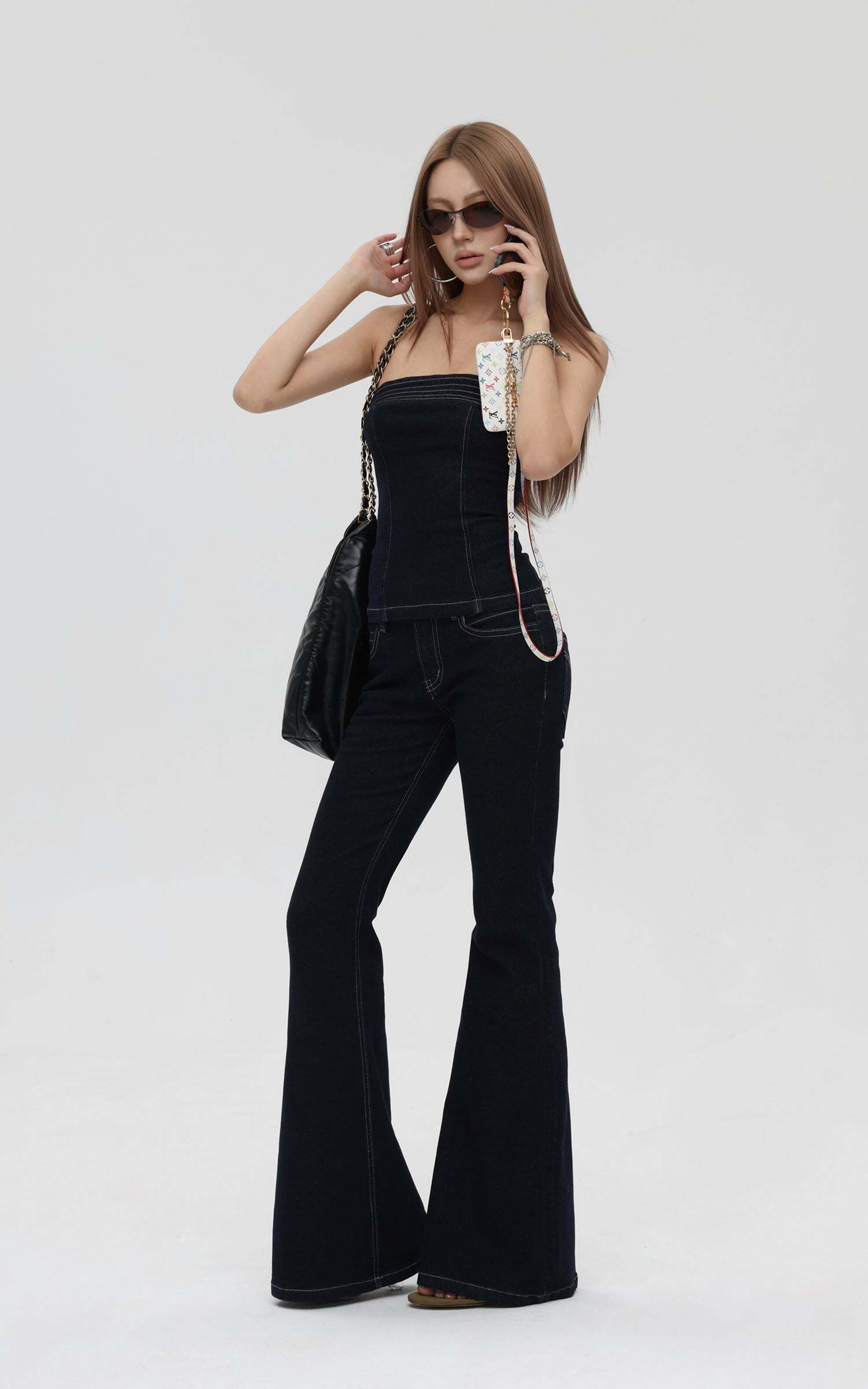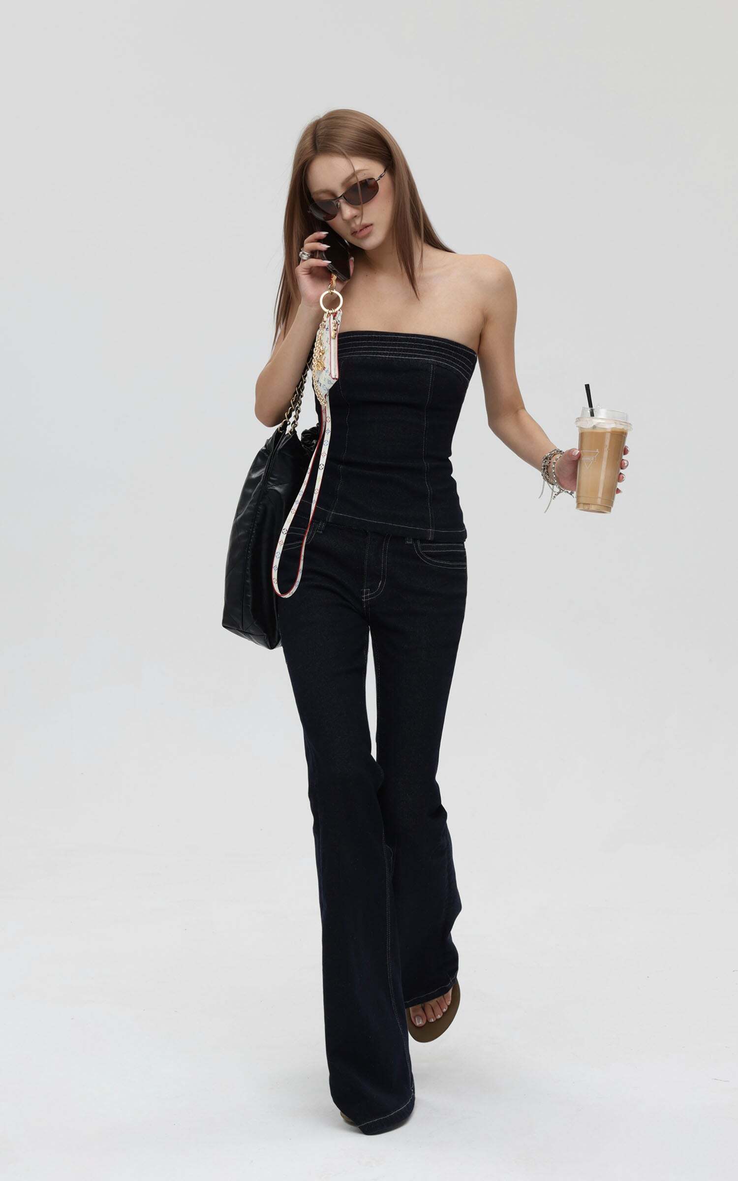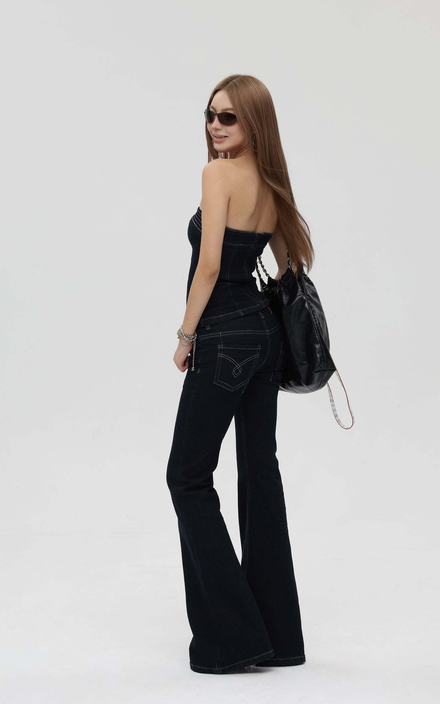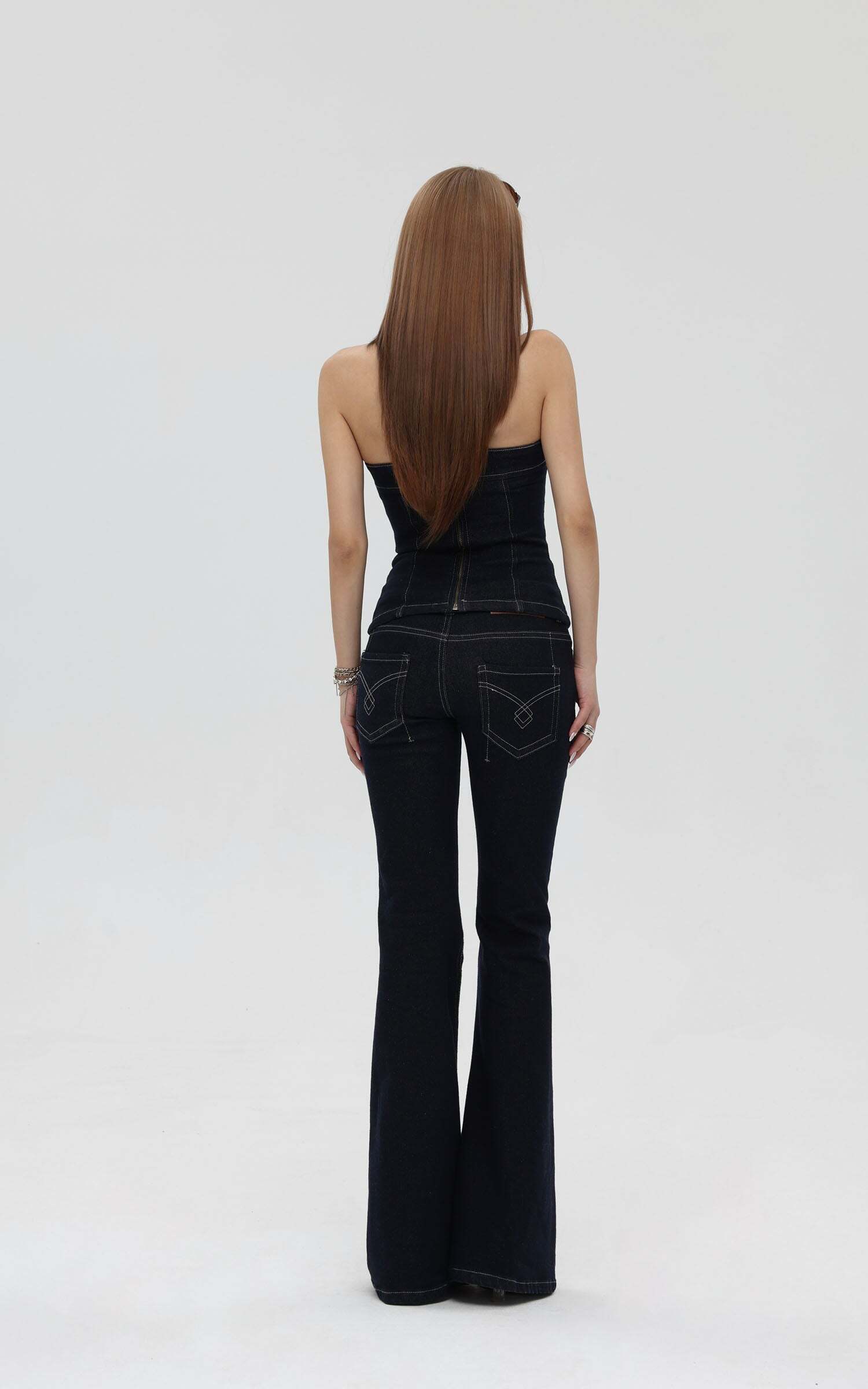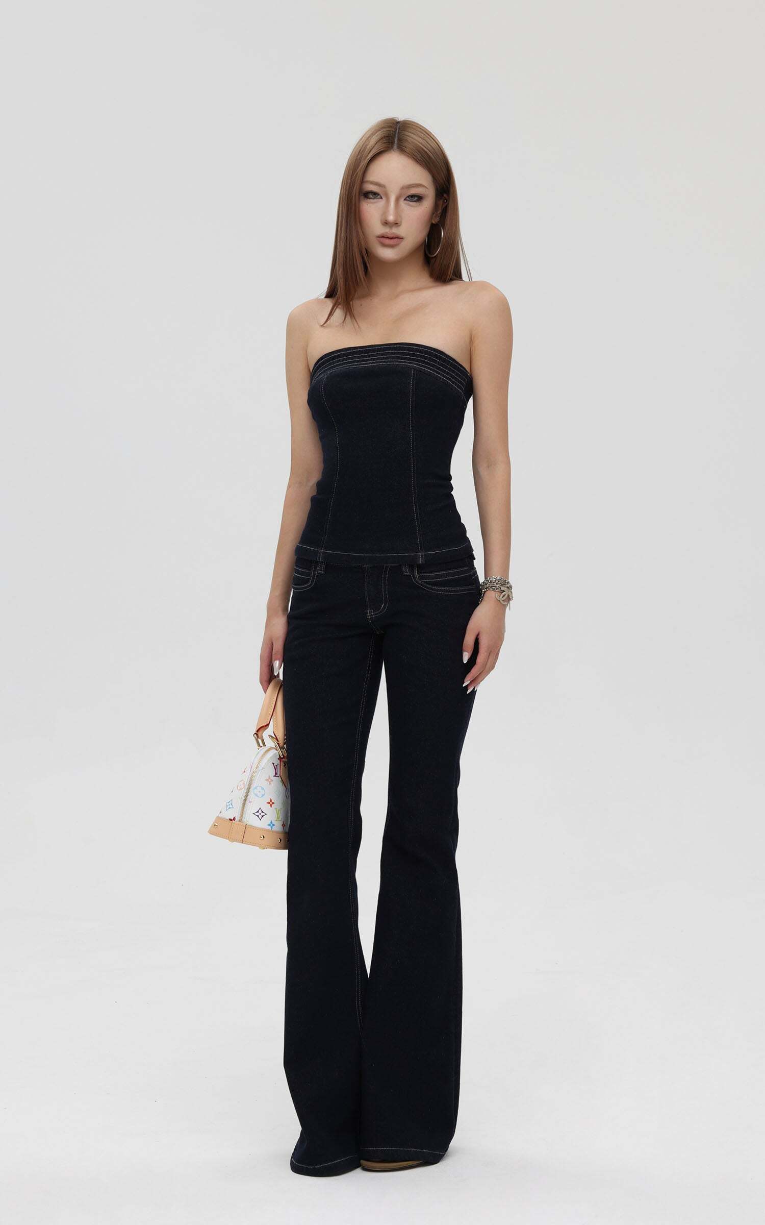 Strapless Denim Top and Flared Pants Set: Your Ultimate Outfit Inspo