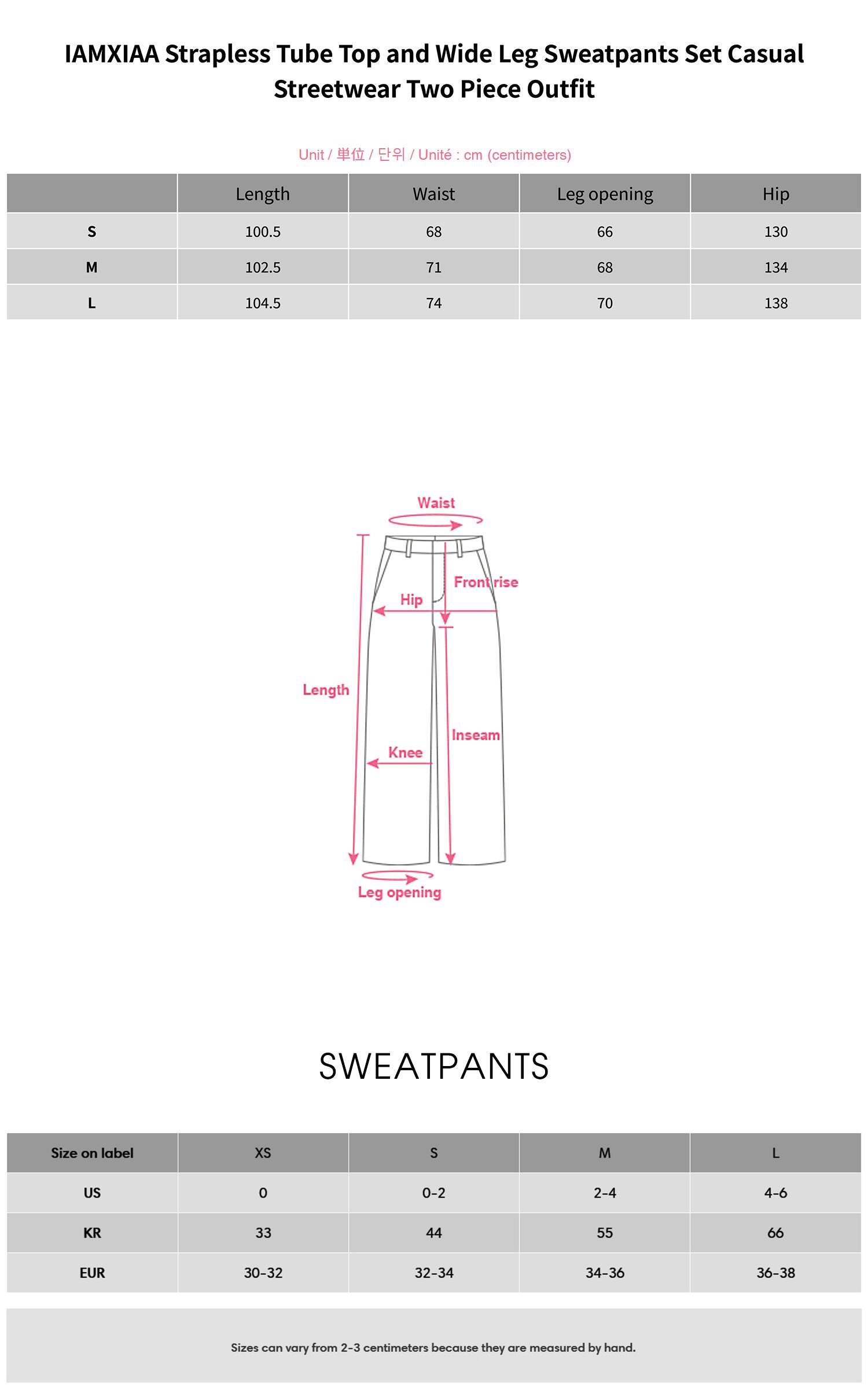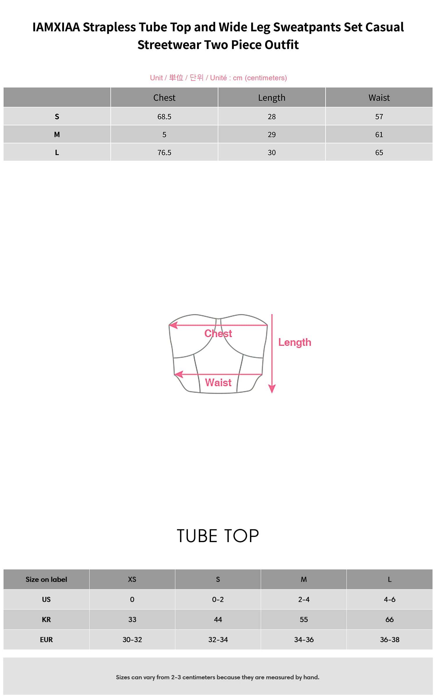 - Model is wearing size S for the Tube Top and size S for the Sweatpants.