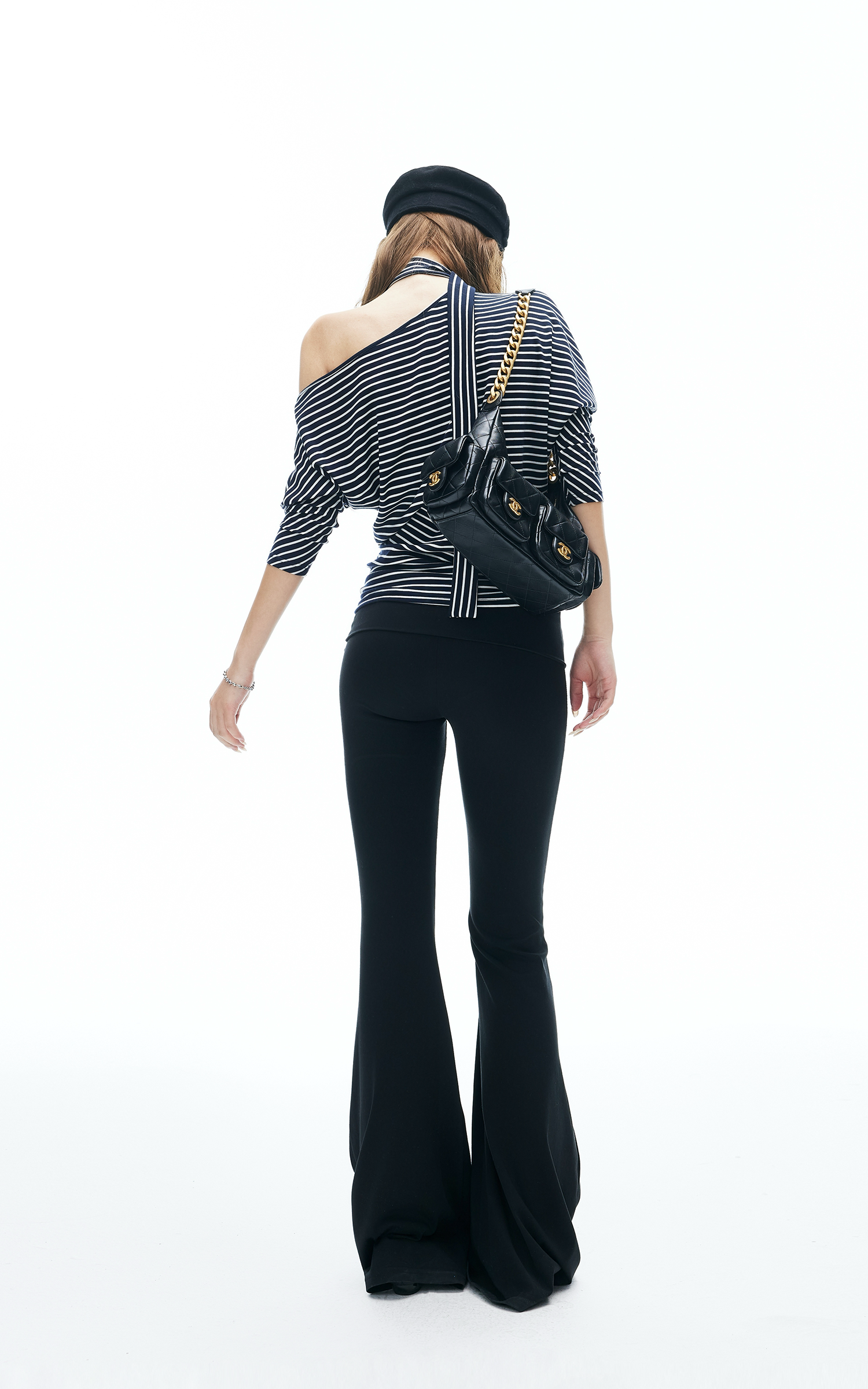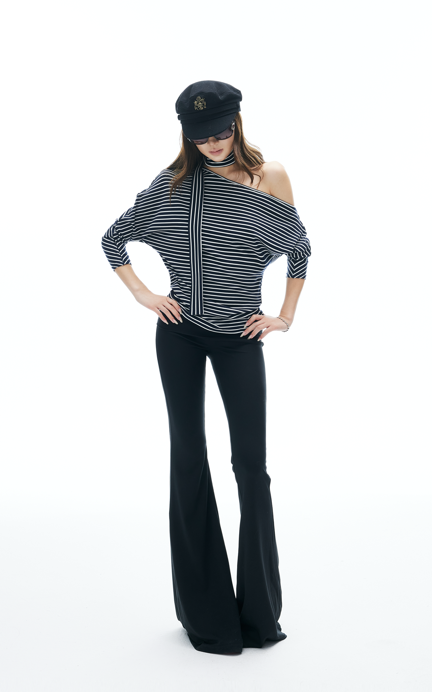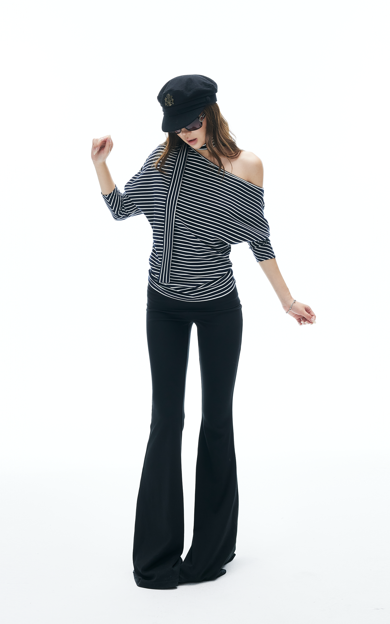 This striped one shoulder T-shirt is a playful twist on a wardrobe classic. Featuring bold horizontal lines with an asymmetric neckline and detachable scarf detail, it’s the ultimate statement top for days when you want to stand out. The relaxed silhouette balances comfort with edge, making it perfect for styling with high-waist skirts, tailored pants, or casual denim. Versatile and bold, it’s a piece that transforms simple outfits into head-turning looks.