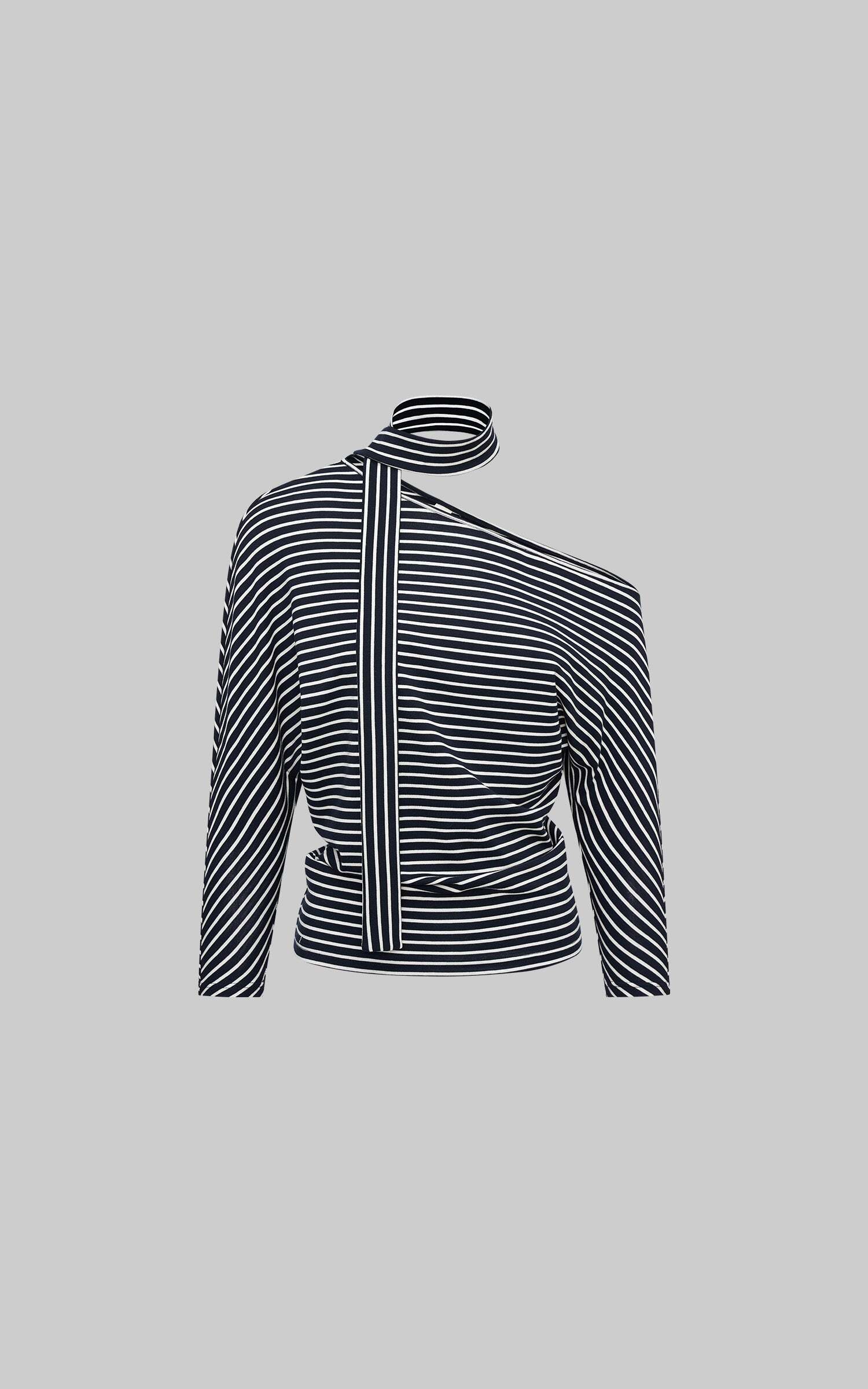Striped One Shoulder T-Shirt with Scarf Detail High-quality product featuring outfit inspo, winter outfit, holiday party outfit and more. Modern design that fits the latest trends. Premium materials ensure durability and comfort. Order now for special offers! Product designed with attention to every detail. Suitable for all occasions and personal styles.
