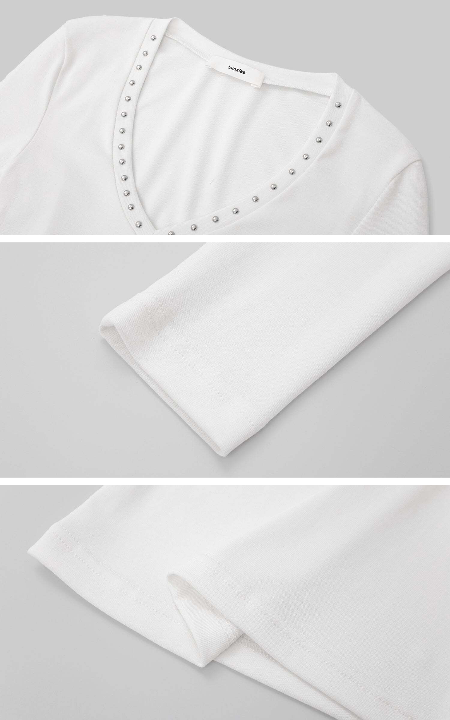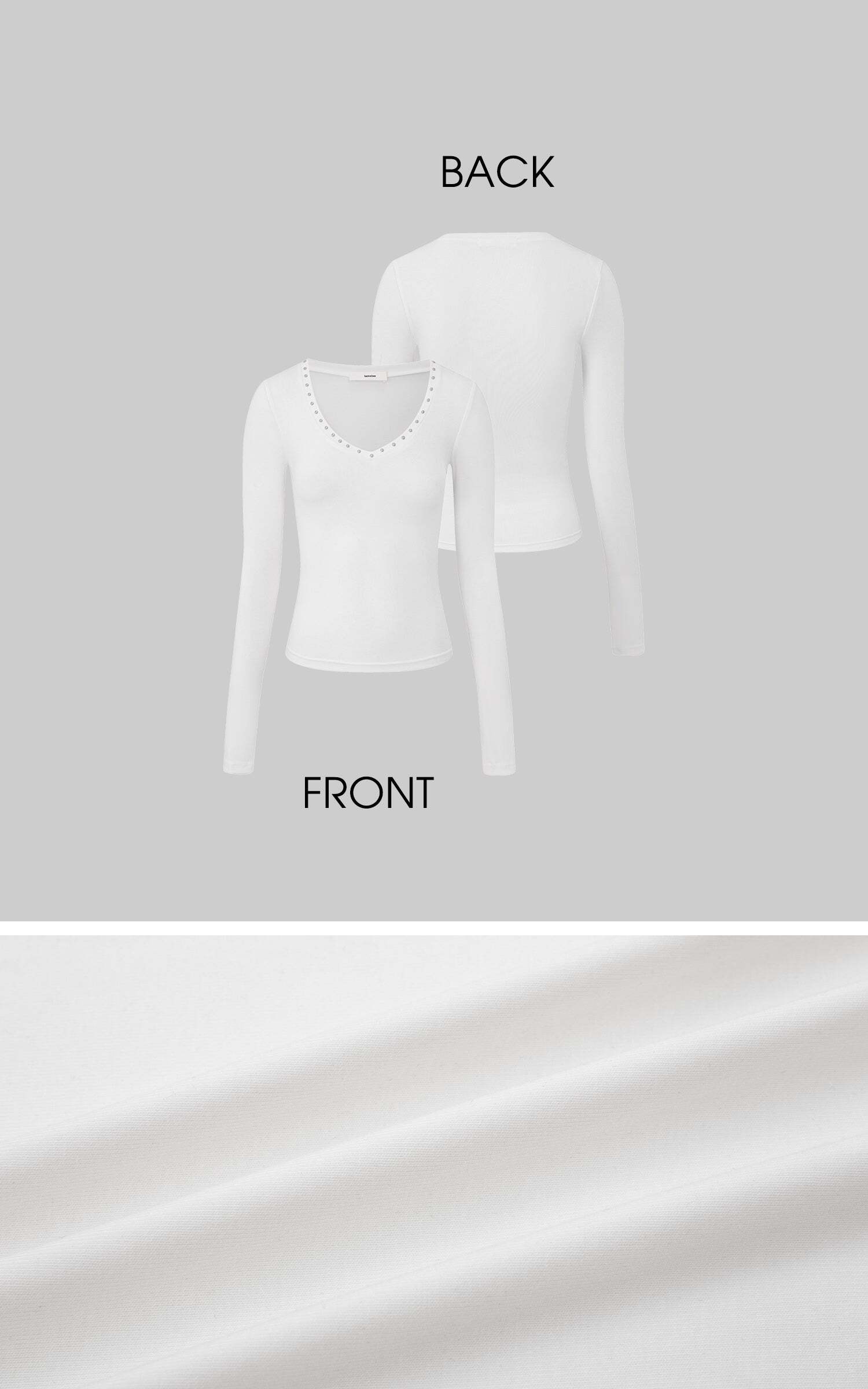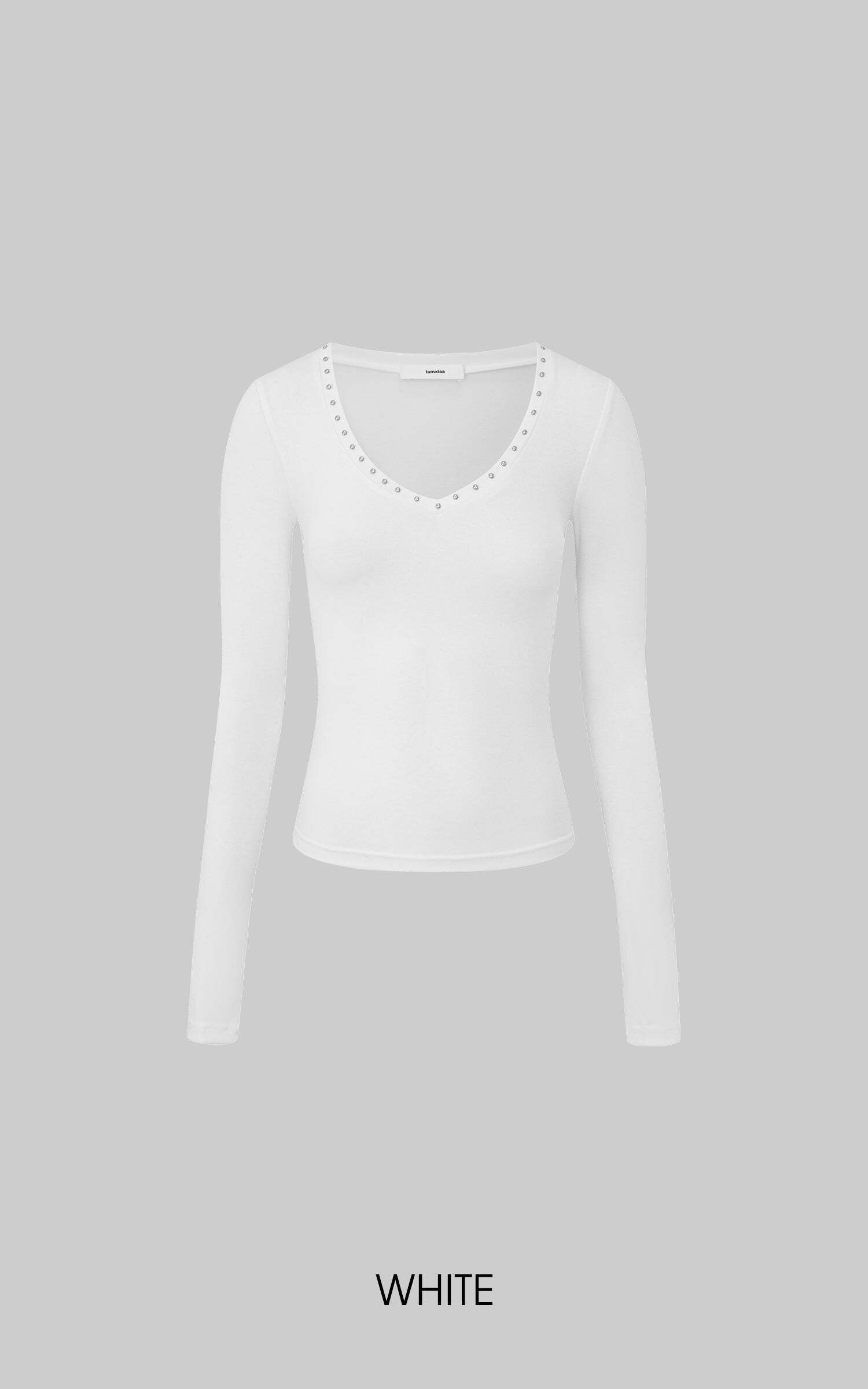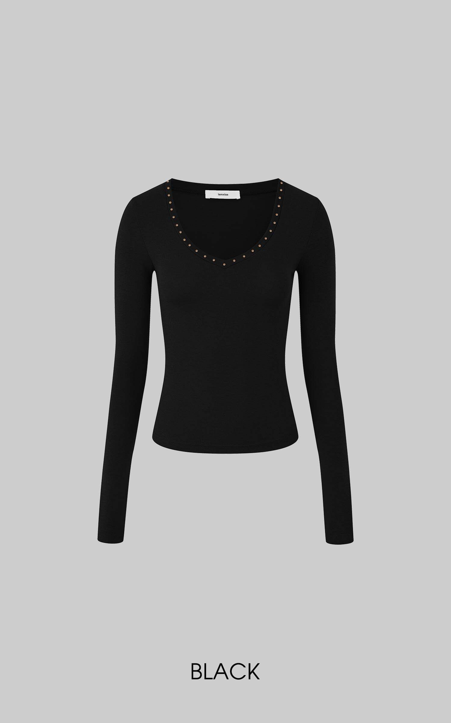 IAMXIAA Studded V-Neck Long Sleeve Tee