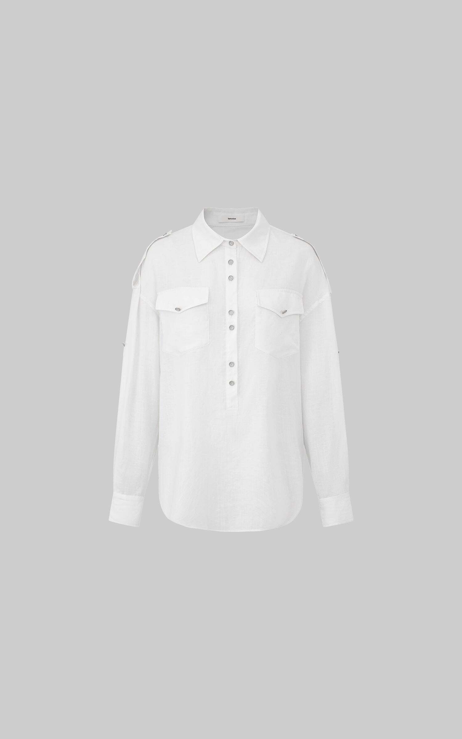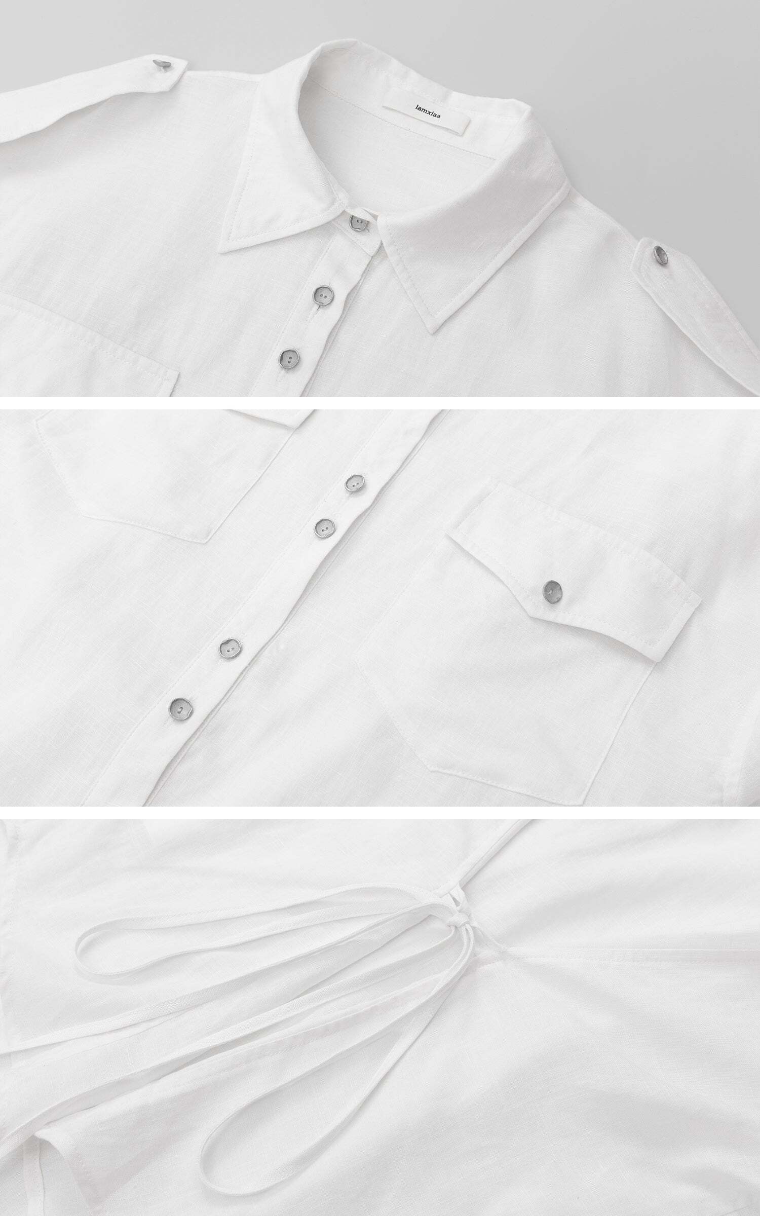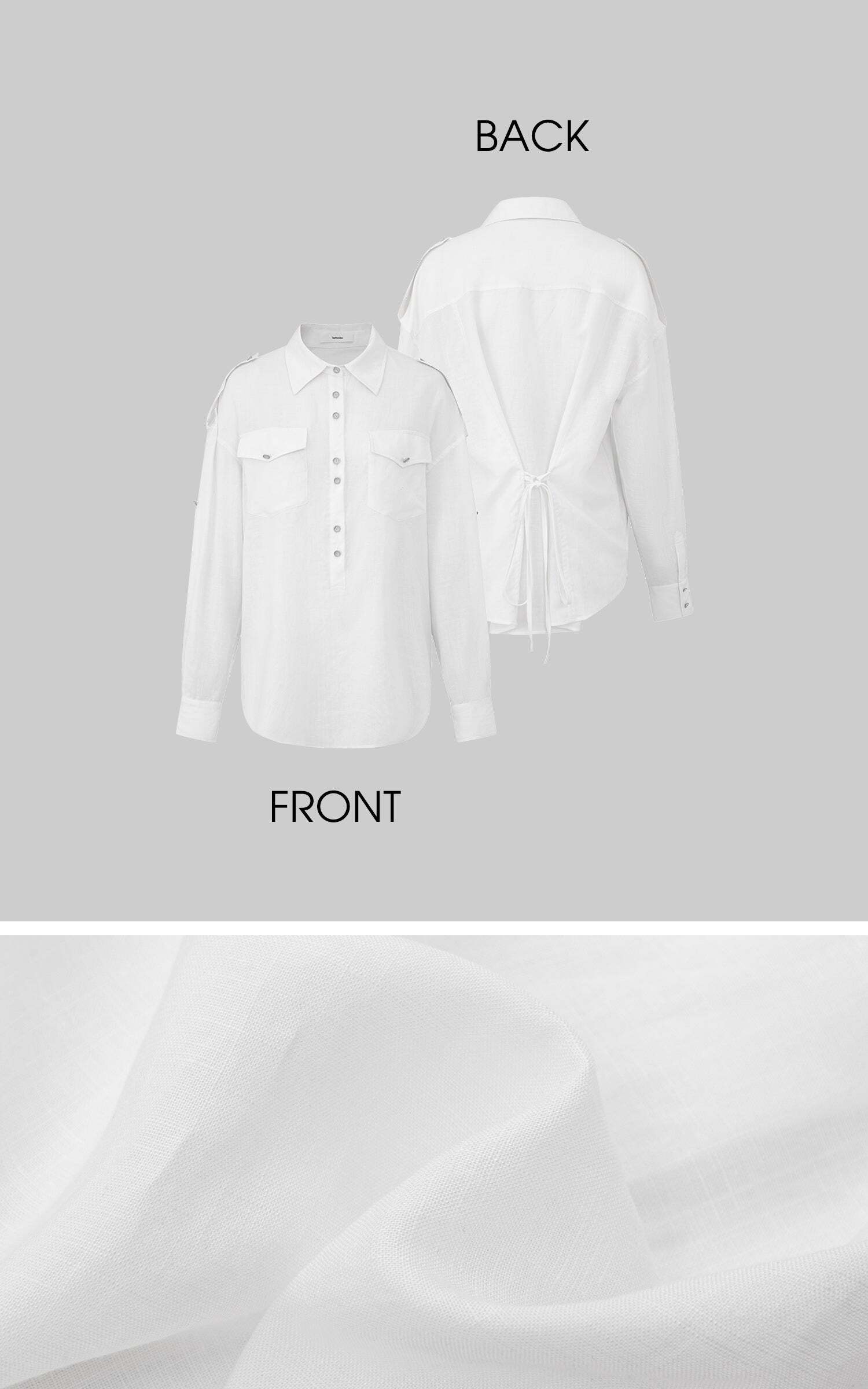 Effortless cool with a utility twist. This oversized shirt features front flap pockets, shoulder tabs, and a button-down design for a structured yet relaxed vibe. The lightweight fabric flows with movement, while the tie-back detail adds a cinched silhouette when desired. Wear it loose over a mini skirt for a street-smart edge, or tighten the back ties for a more refined, fitted look.