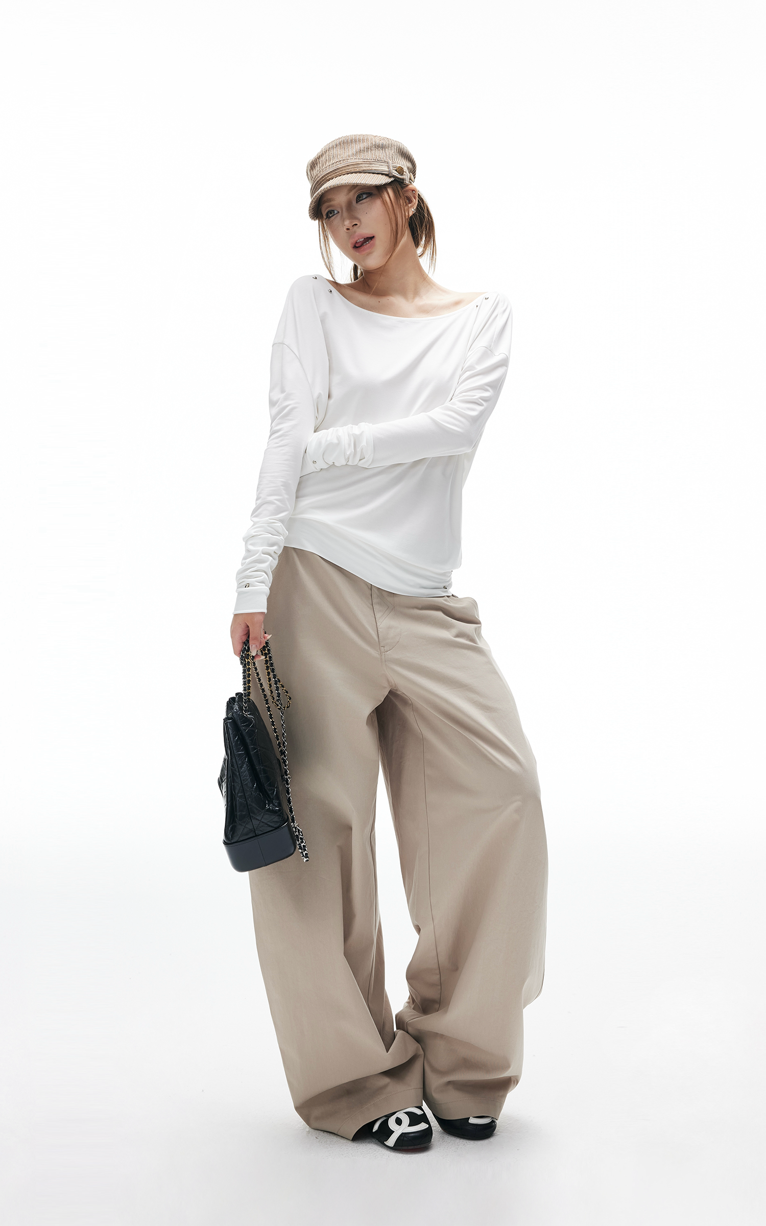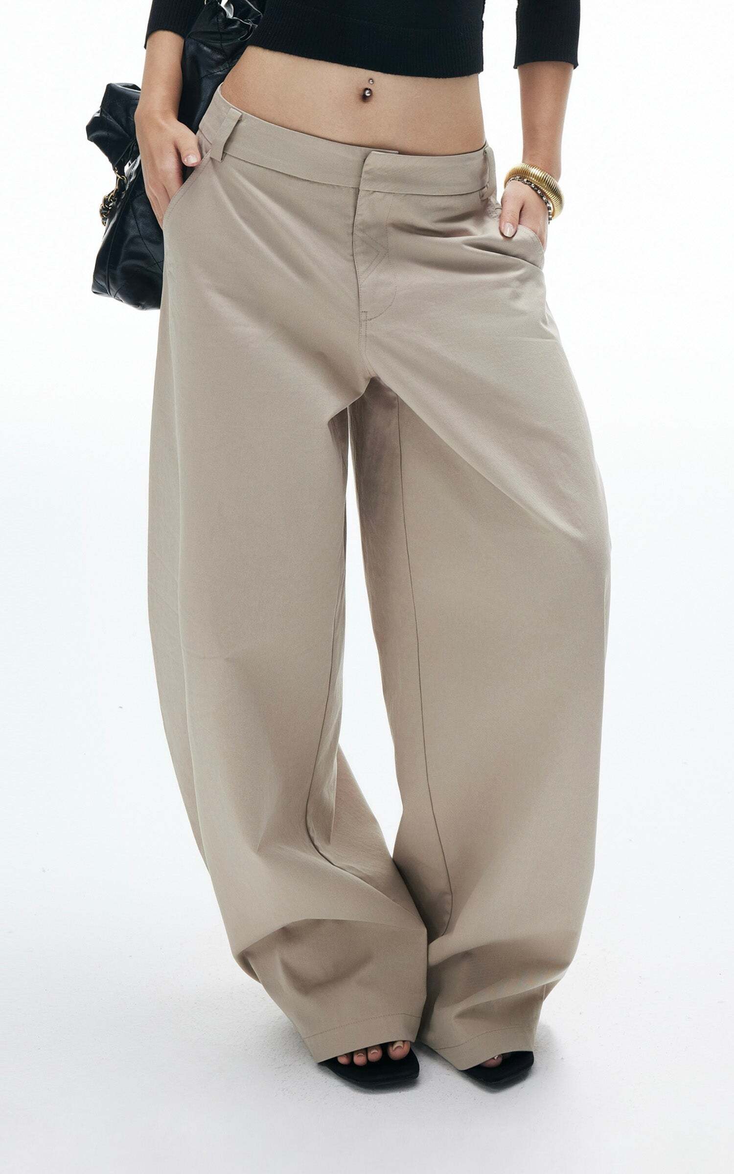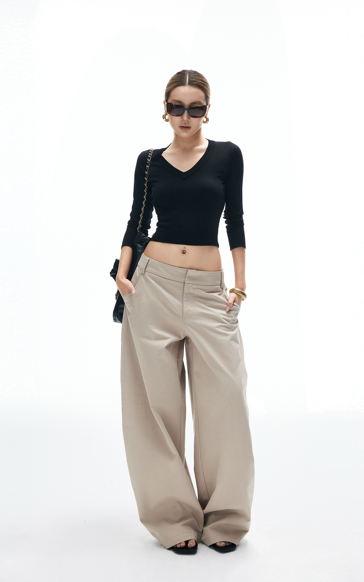 A pair of wide-leg tailored pants made for effortless street-luxe styling. Designed with a clean front, structured waistband, and practical side pockets, they deliver sharp minimalism with a relaxed flow. The straight drape elongates the silhouette while keeping movement easy and casual. Perfect with crop tops, oversized knits, or sleek tanks—these pants bring a refined yet laid-back vibe to your daily wardrobe.