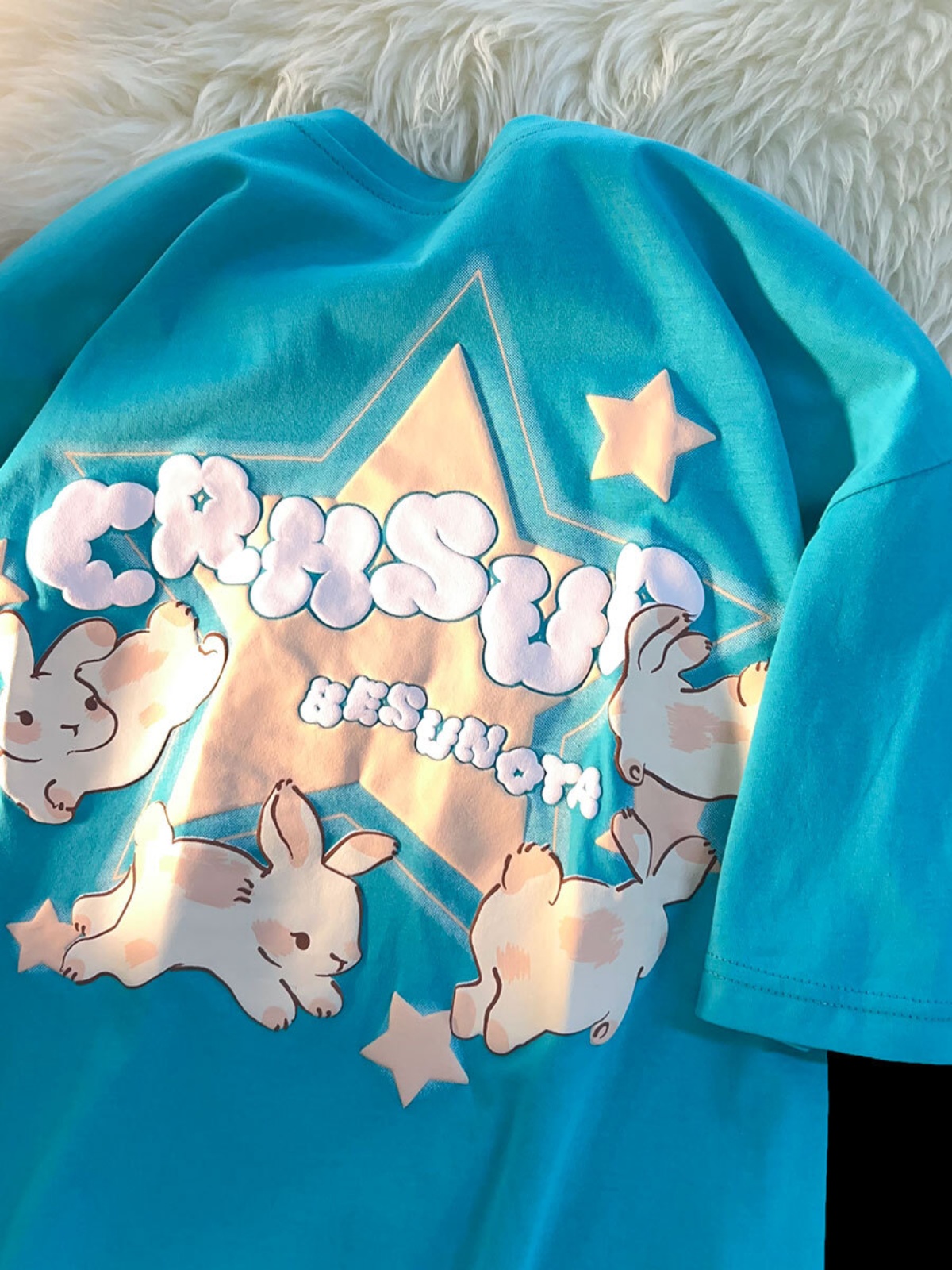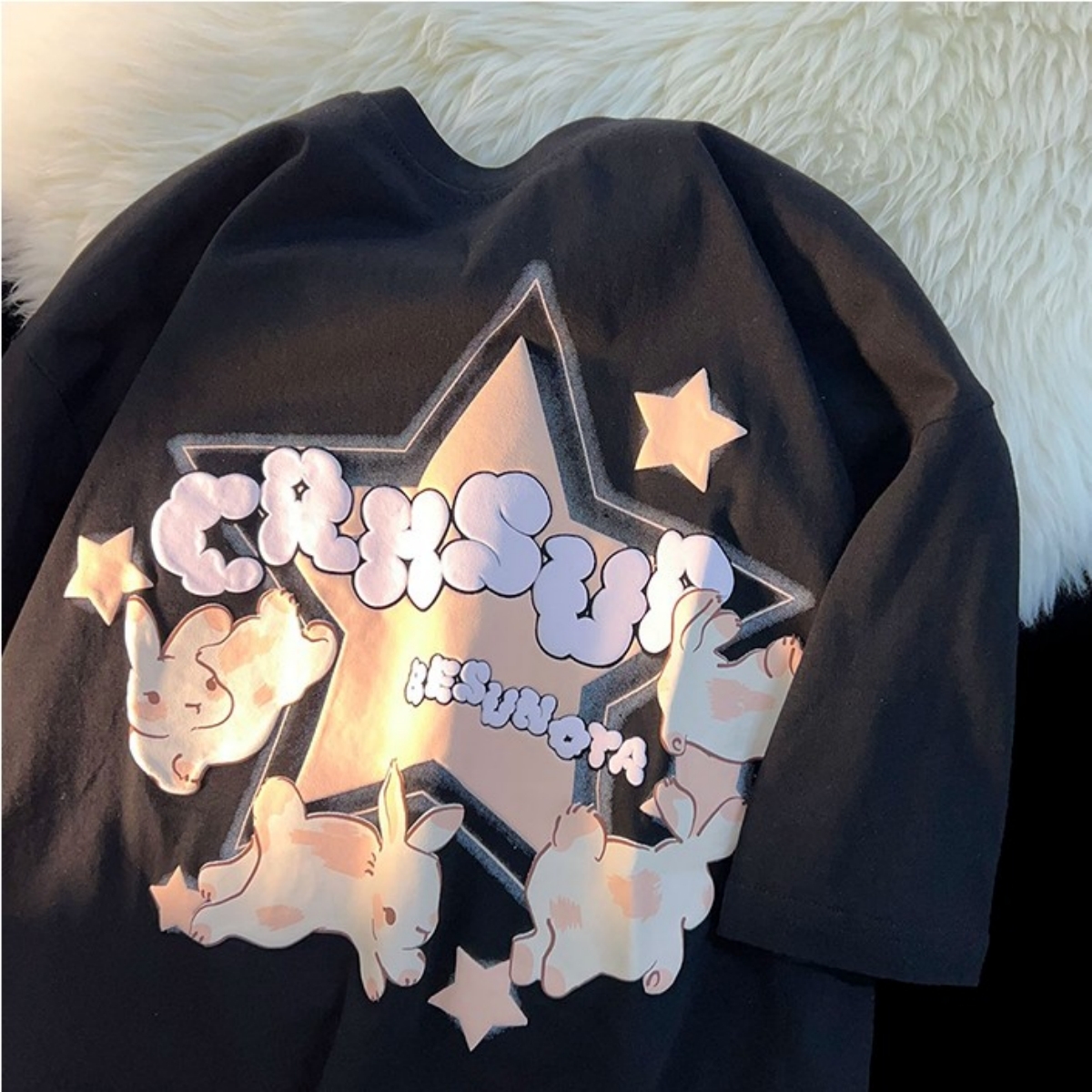 Discover the whimsical charm of our Japanese-Style Retro Cartoon Rabbit Print Short Sleeve T-Shirt, designed for both men and women. This plus-size, loose fit tee is crafted from pure cotton for ultimate comfort, making it the perfect choice for casual outings or cozy days at home. With its unique design and relaxed silhouette, you can effortlessly express your playful side while enjoying all-day wear. Don’t miss out on this stylish essential add it to your cart today!