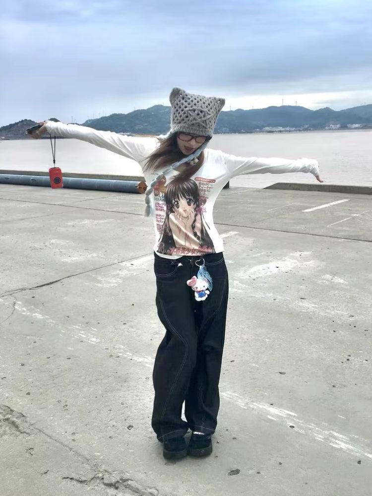 The Kawaii Anime Girl Top is a statement piece for manga and anime lovers. Featuring a vibrant anime girl print with Japanese text, this long-sleeve shirt blends Y2K, Harajuku, and kawaii aesthetics. Perfect for casual streetwear with a nostalgic 2000s vibe.