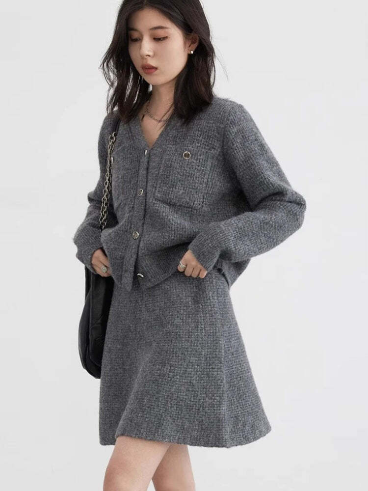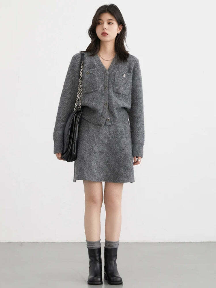 Knitted Button-Up Cardigan & Mini Skirt Two Piece Set High-quality product featuring outfit ideas, pretty outfits, cute winter outfits and more. Modern design that fits the latest trends. Premium materials ensure durability and comfort. Order now for special offers! Product designed with attention to every detail. Suitable for all occasions and personal styles.