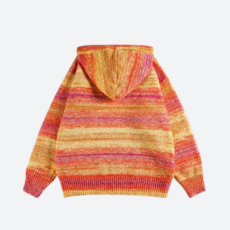 The Knitted Hoodie features warm hues and soft textured fabric for a cozy, bold look. With a relaxed fit, ribbed cuffs, and hem, it’s perfect for layering on chilly days, whether you’re out or staying in.