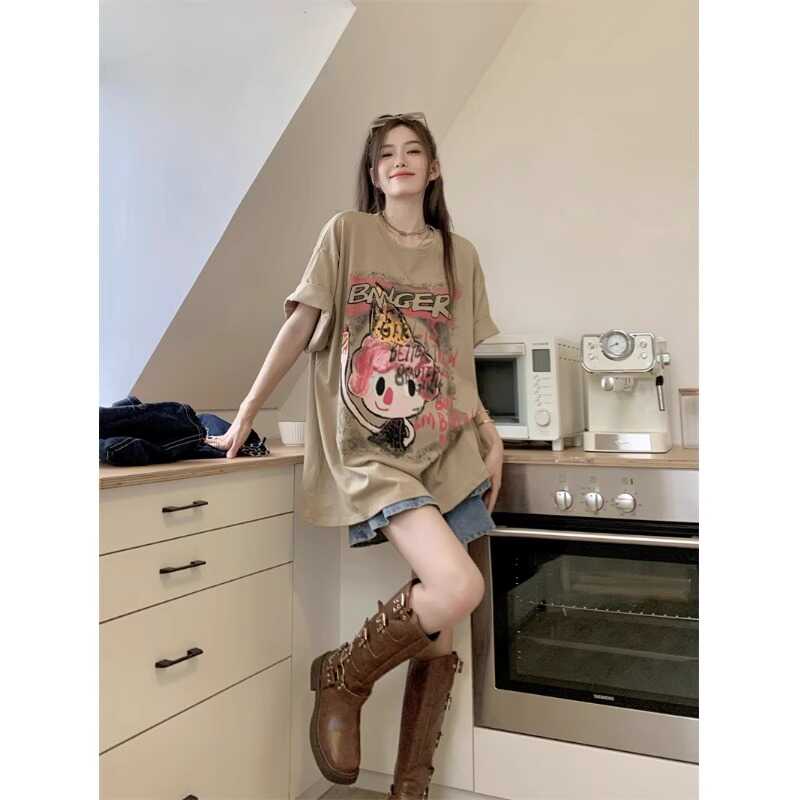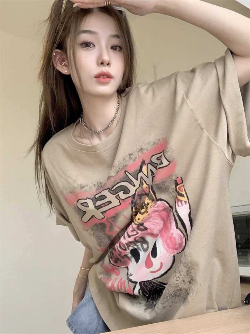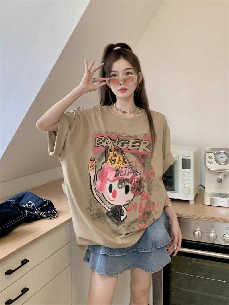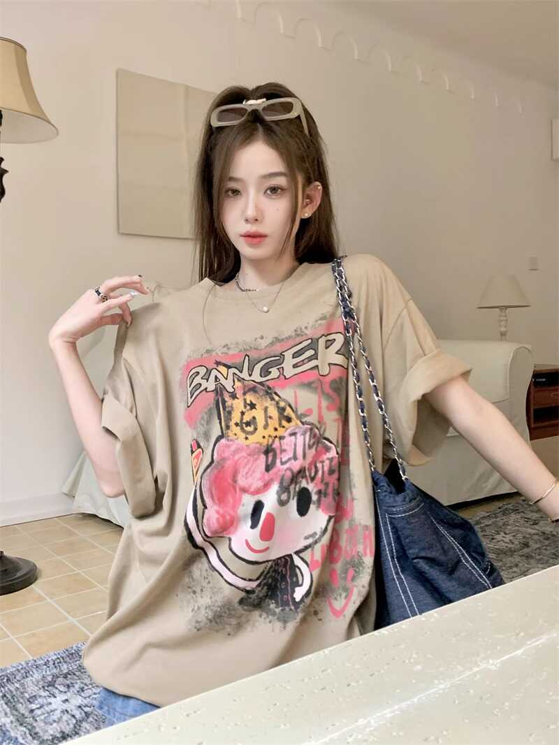 Korean Mid Length Cartoon Print Plus Size Cotton Short Sleeve Women Loose Fit Neck Top High-quality product featuring easy halloween costume, easy costumes women, simple halloween costume and more. Modern design that fits the latest trends. Premium materials ensure durability and comfort. Order now for special offers! Product designed with attention to every detail. Suitable for all occasions and personal styles.