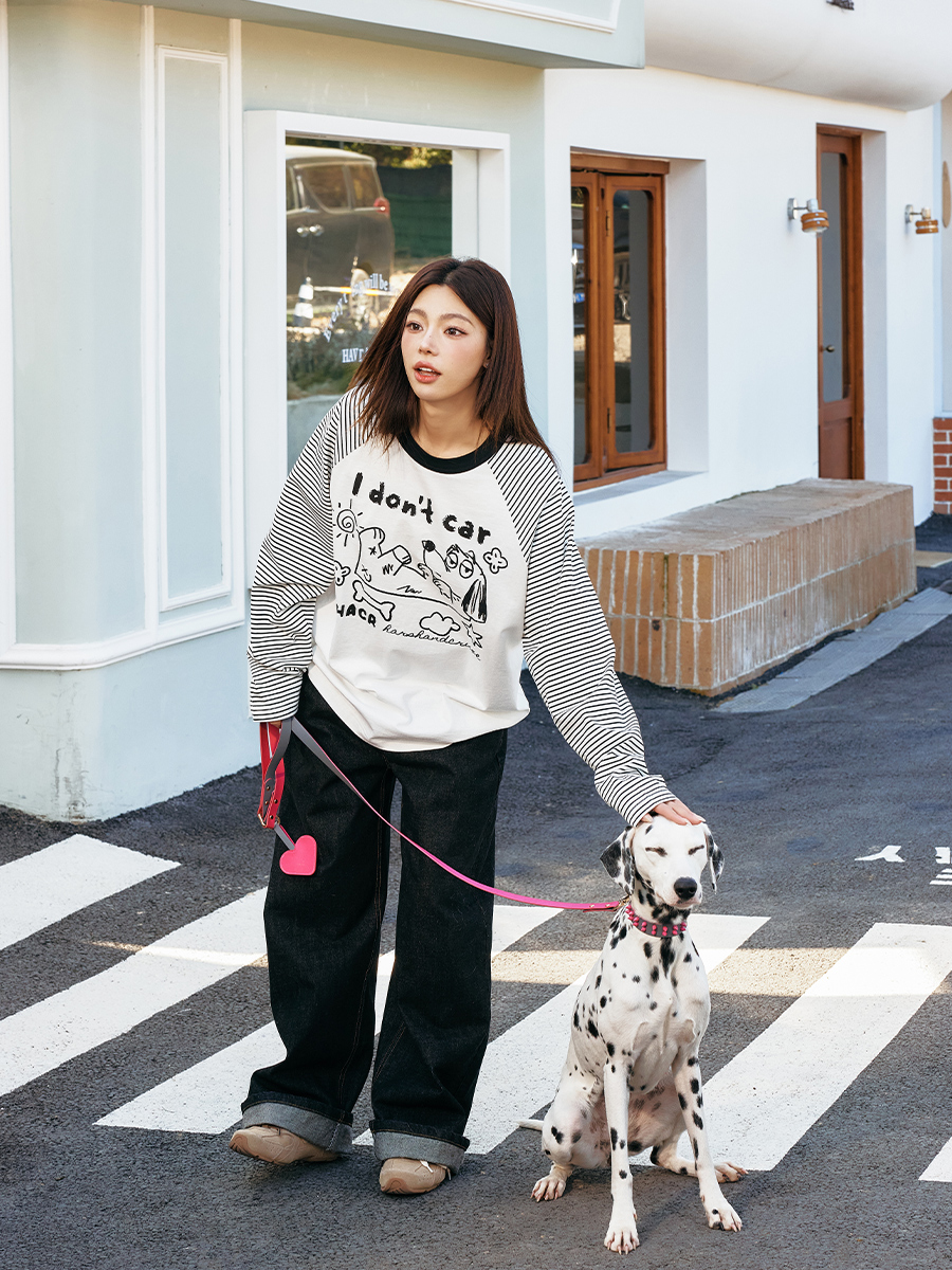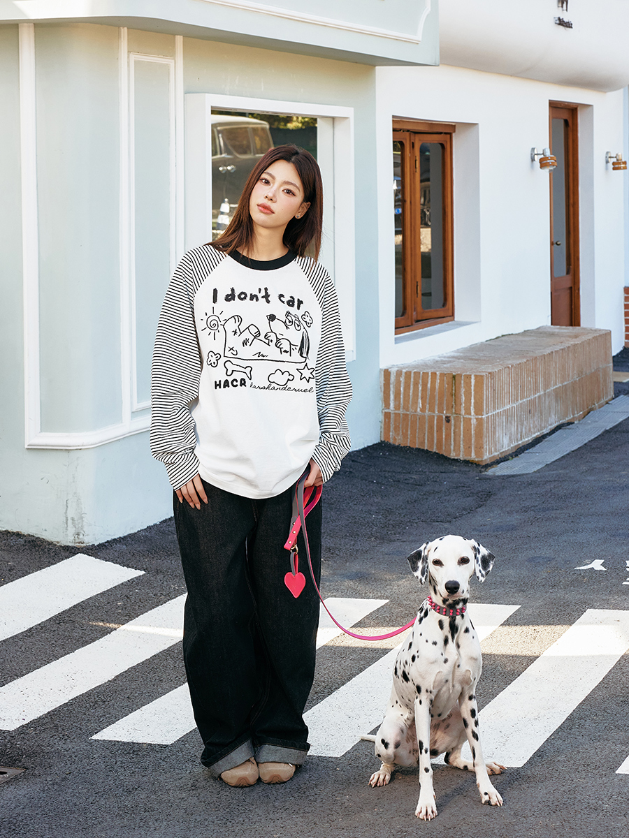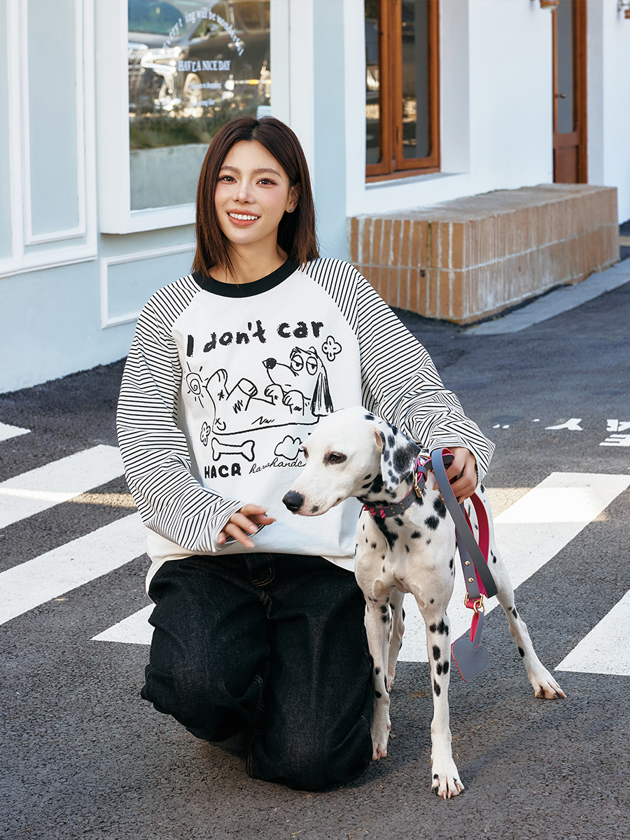 Korean Striped H Painted Loose Raglan Long Sleeve Coup – Dynamic Duo Costumes Couples