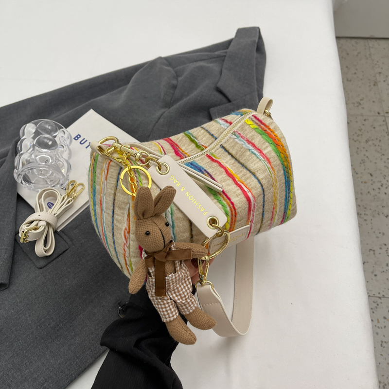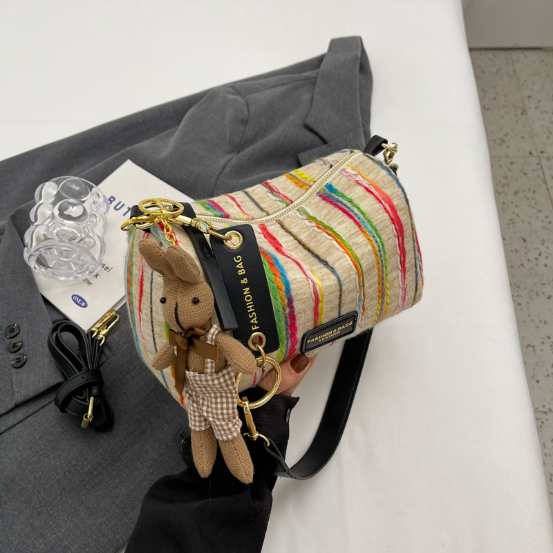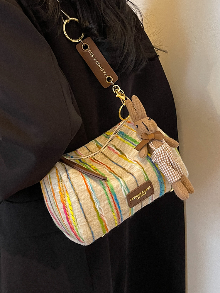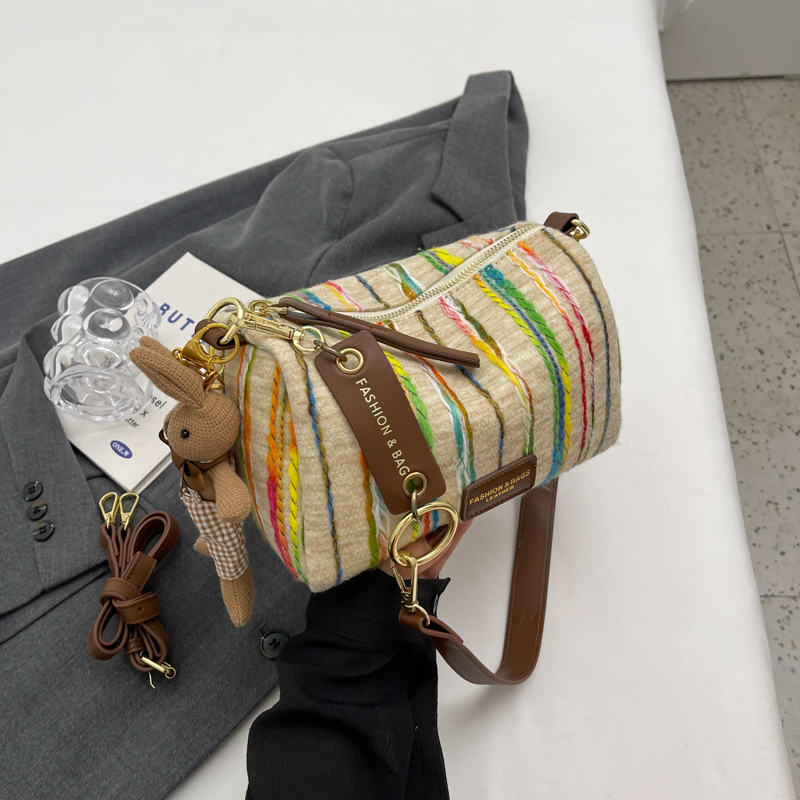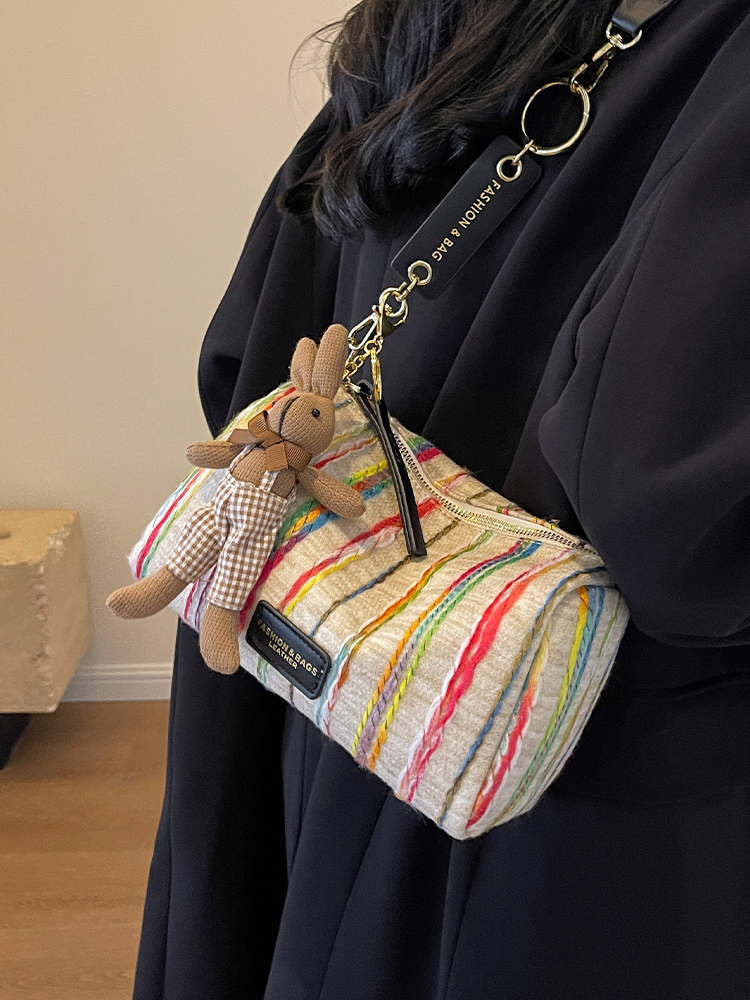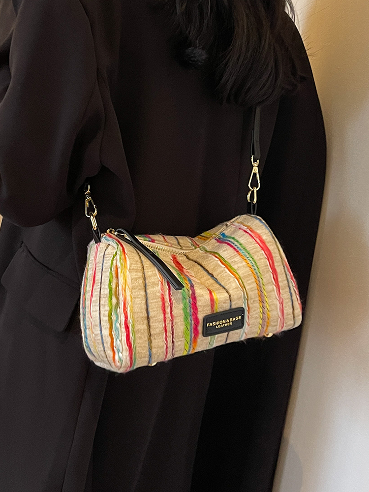 Korean Women Rainbow Woven Boston Bag Autumn/winter Shoulder Bag – Fall Outfits Women