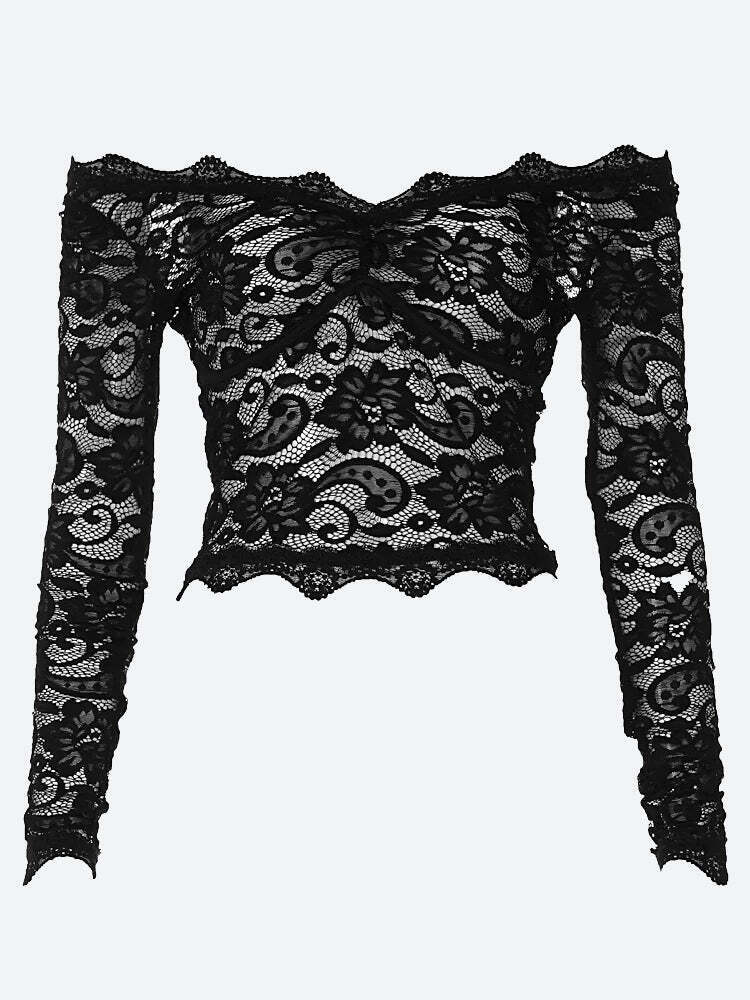 Channel your inner grunge style with this lace sheer off-shoulder top. The delicate lace fabric and off-shoulder design create a bold yet feminine look, perfect for nights out or casual outings. Pair it with high-waisted jeans or a skirt for an edgy, fashionable ensemble. The intricate lace pattern adds a unique touch, making it a standout piece in your wardrobe.