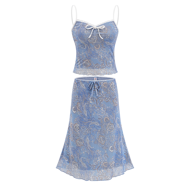Lace Trim Mesh Floral Camisole a Line Skirt Set Women, Y2k Lovers – Y2k Outfits