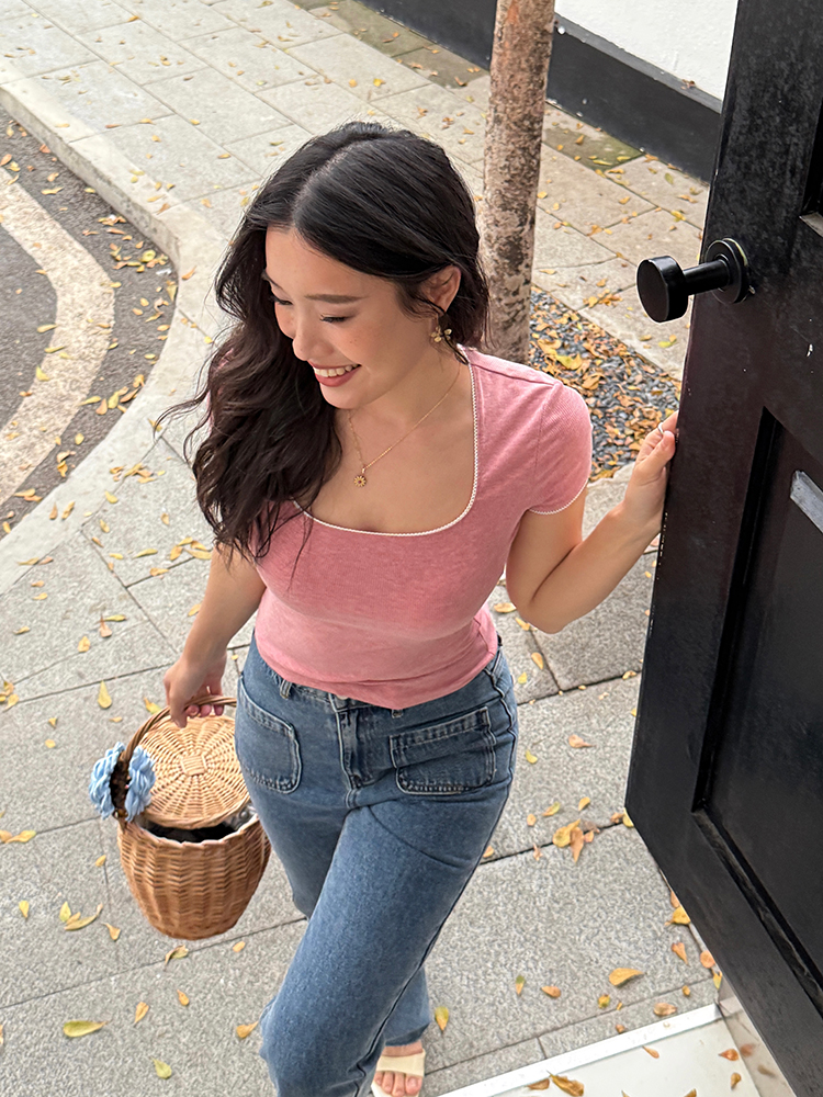 Lace Trim Square Collar Short Sleeve Women Slim Fit, Flattering, Crop – Dream Clothes