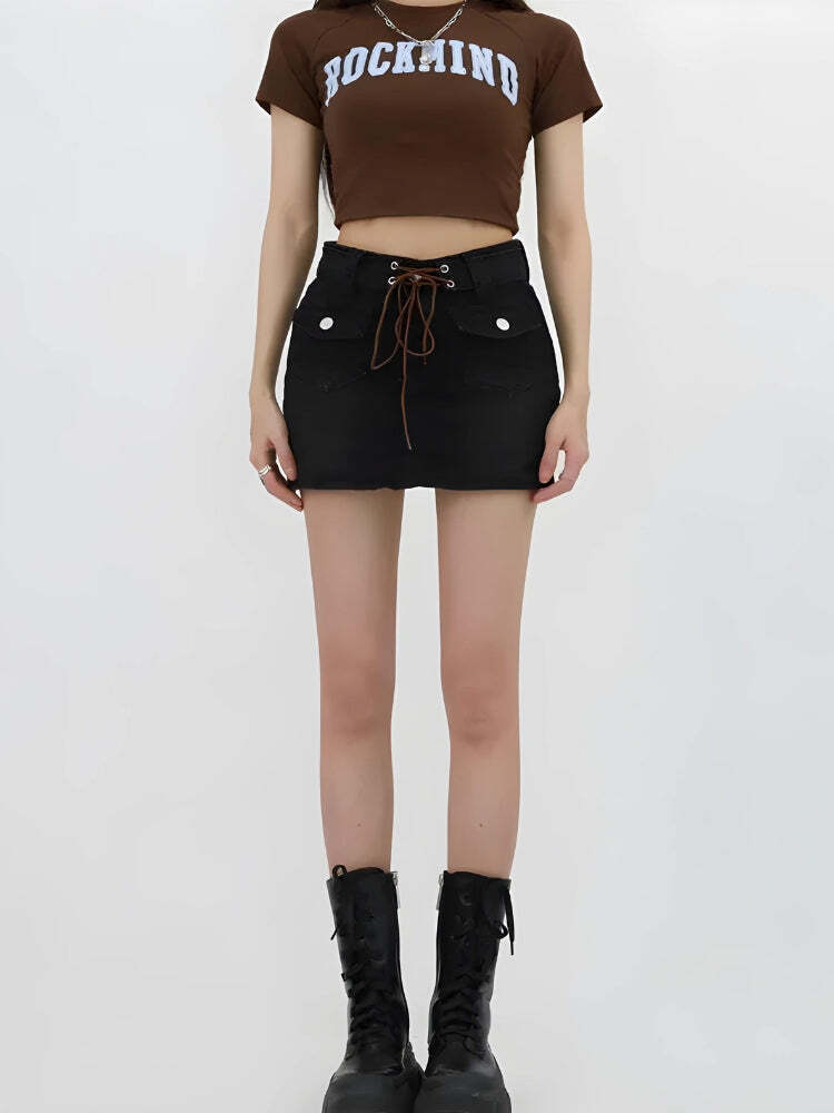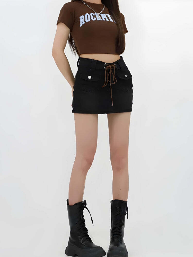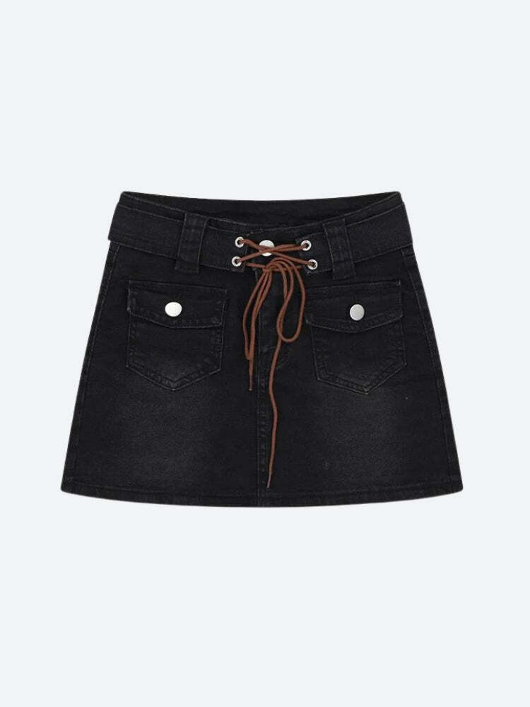 A fusion of rugged denim and delicate lace-up details, it offers both comfort and trendiness. Whether you’re gearing up for a concert or a casual day out, this skort ensures you stand out. Its versatile black hue pairs effortlessly with any top, making it a must-have for those who value both style and functionality. Perfect for adding a bit of boldness to any ensemble.