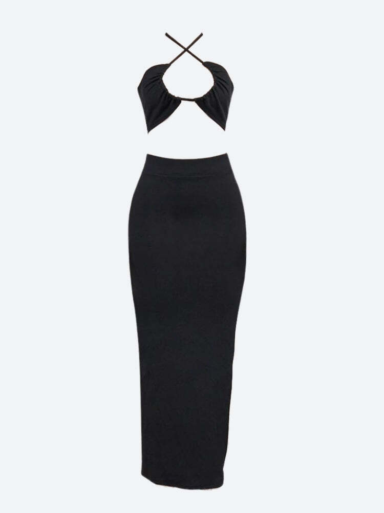 Lace up Crop Top & Slit Maxi Skirt Set – Perfect for Stylish Skirt Outfits