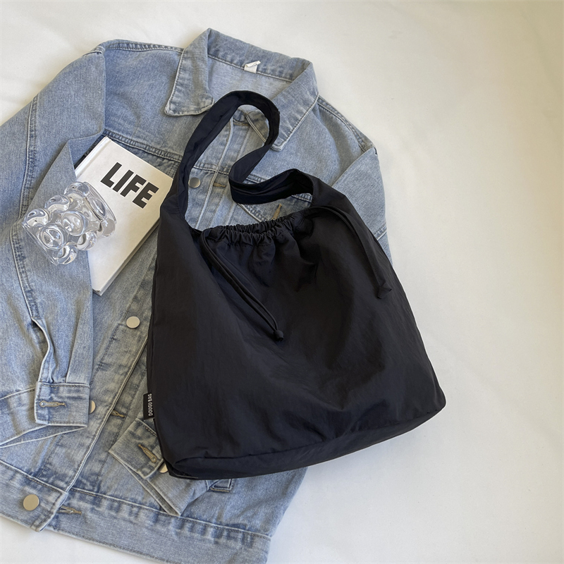 Large Capacity Women Drawstring Cloth Shoulder Bag Umme – Tailgate Outfit Black Women