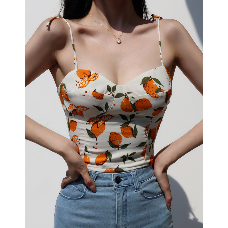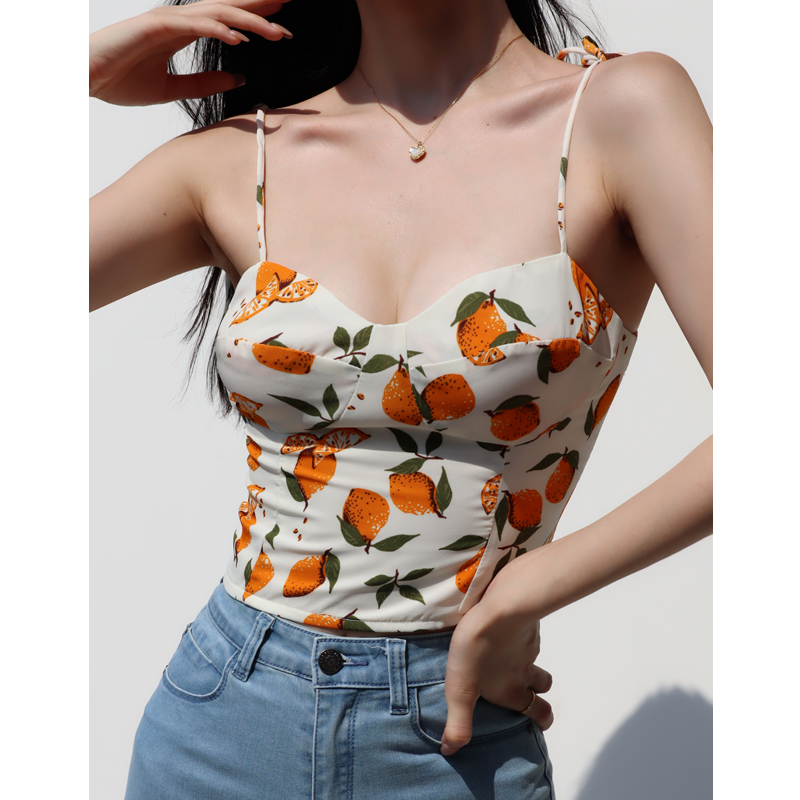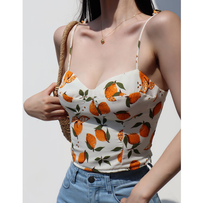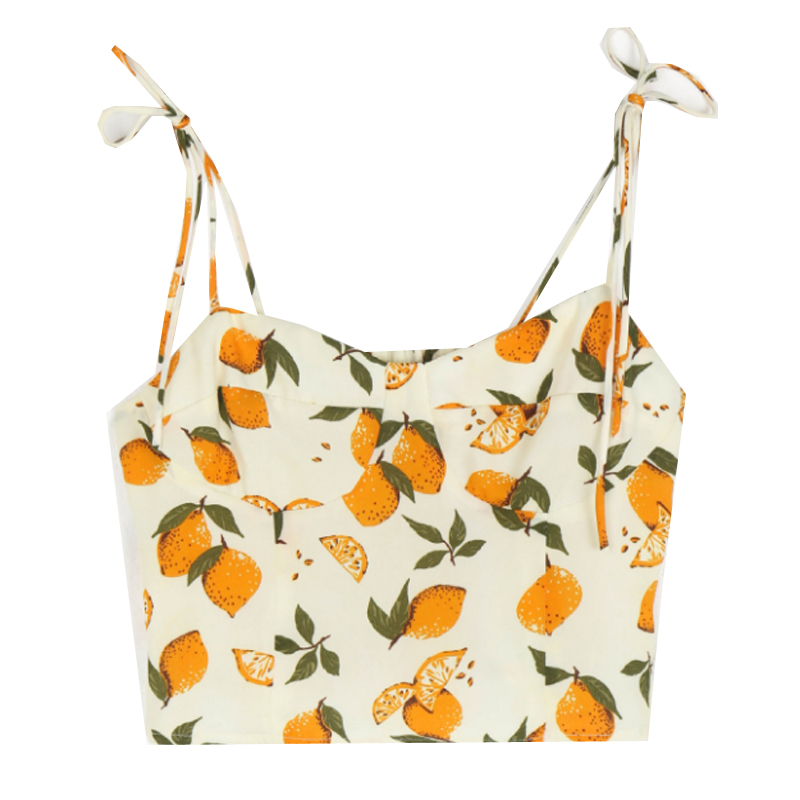 Lemon Print V- Neck Camisole Top Women Slim Fit, Flattering, Back Pleats Tie Straps, Countryside High-quality product featuring spring outfit, pretty outfits, summer fits and more. Modern design that fits the latest trends. Premium materials ensure durability and comfort. Order now for special offers! Product designed with attention to every detail. Suitable for all occasions and personal styles.