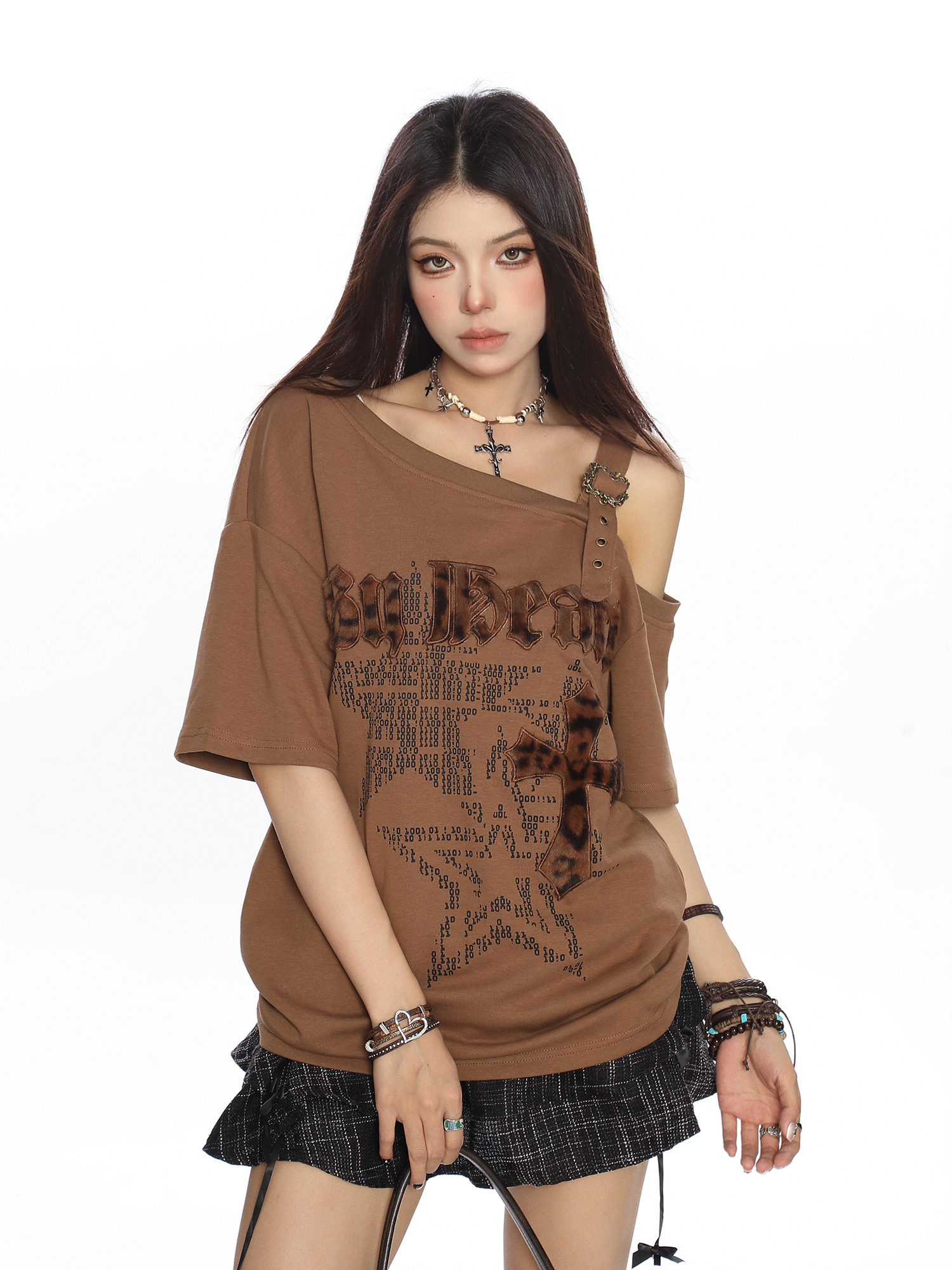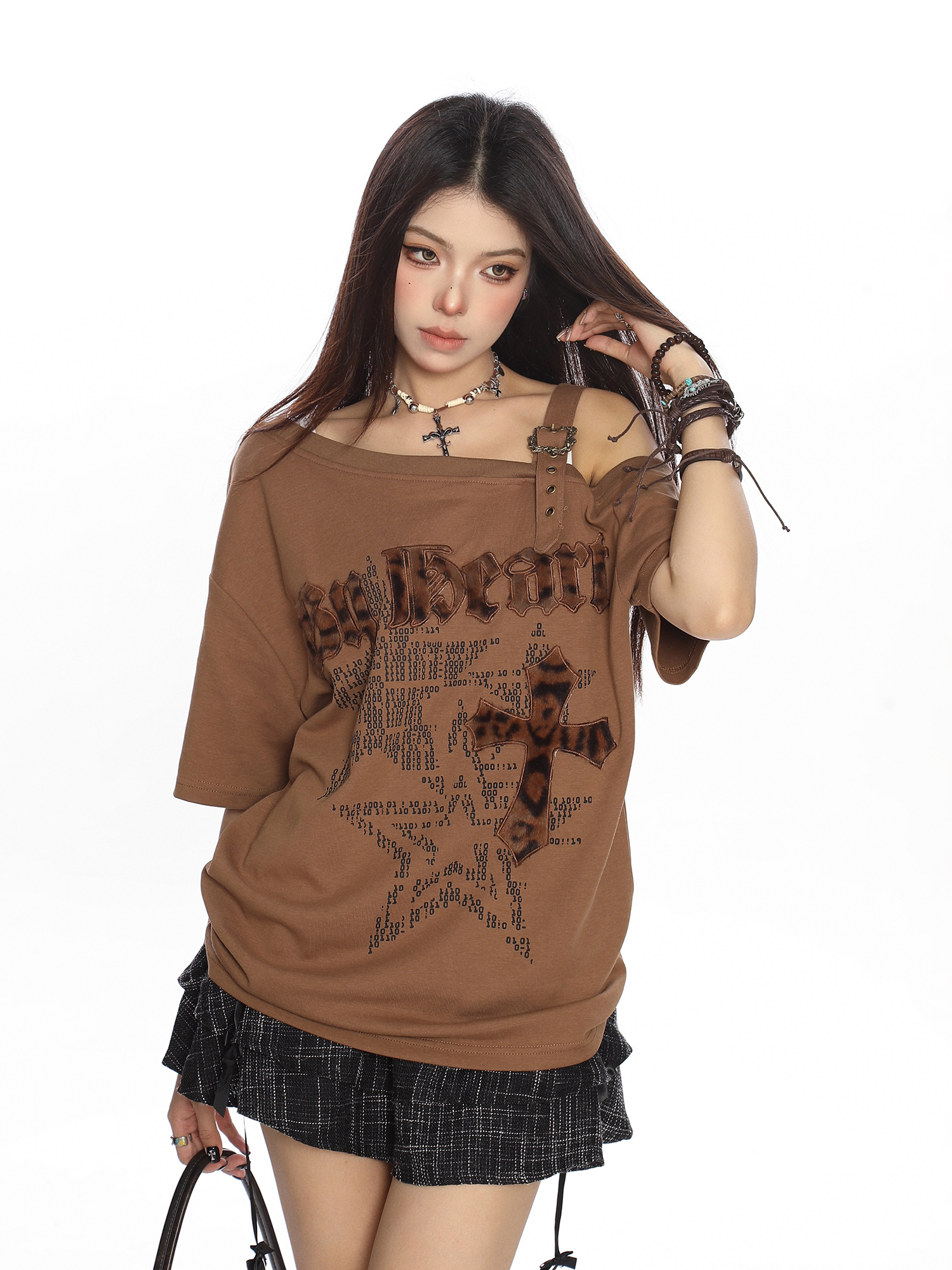 Leopard Print Off Shoulder Short Sleeve Women Vintage Summer Loose Fit – Summer Fits
