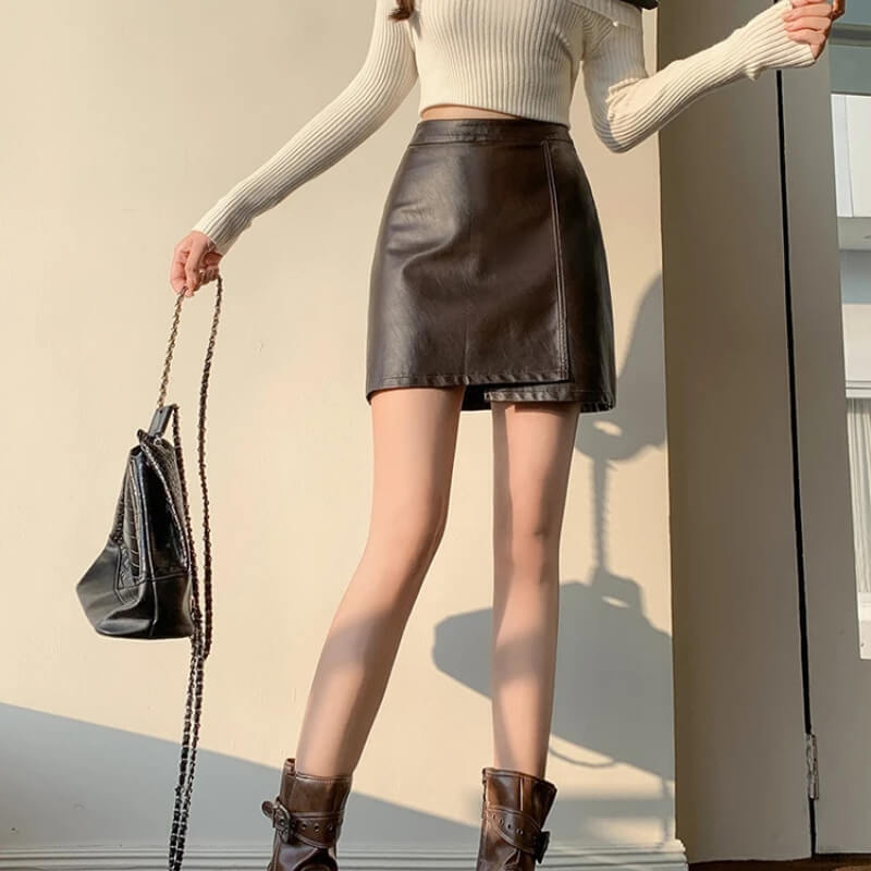 Light Academia Faux Leather Mini Skirt – Skirt Outfits